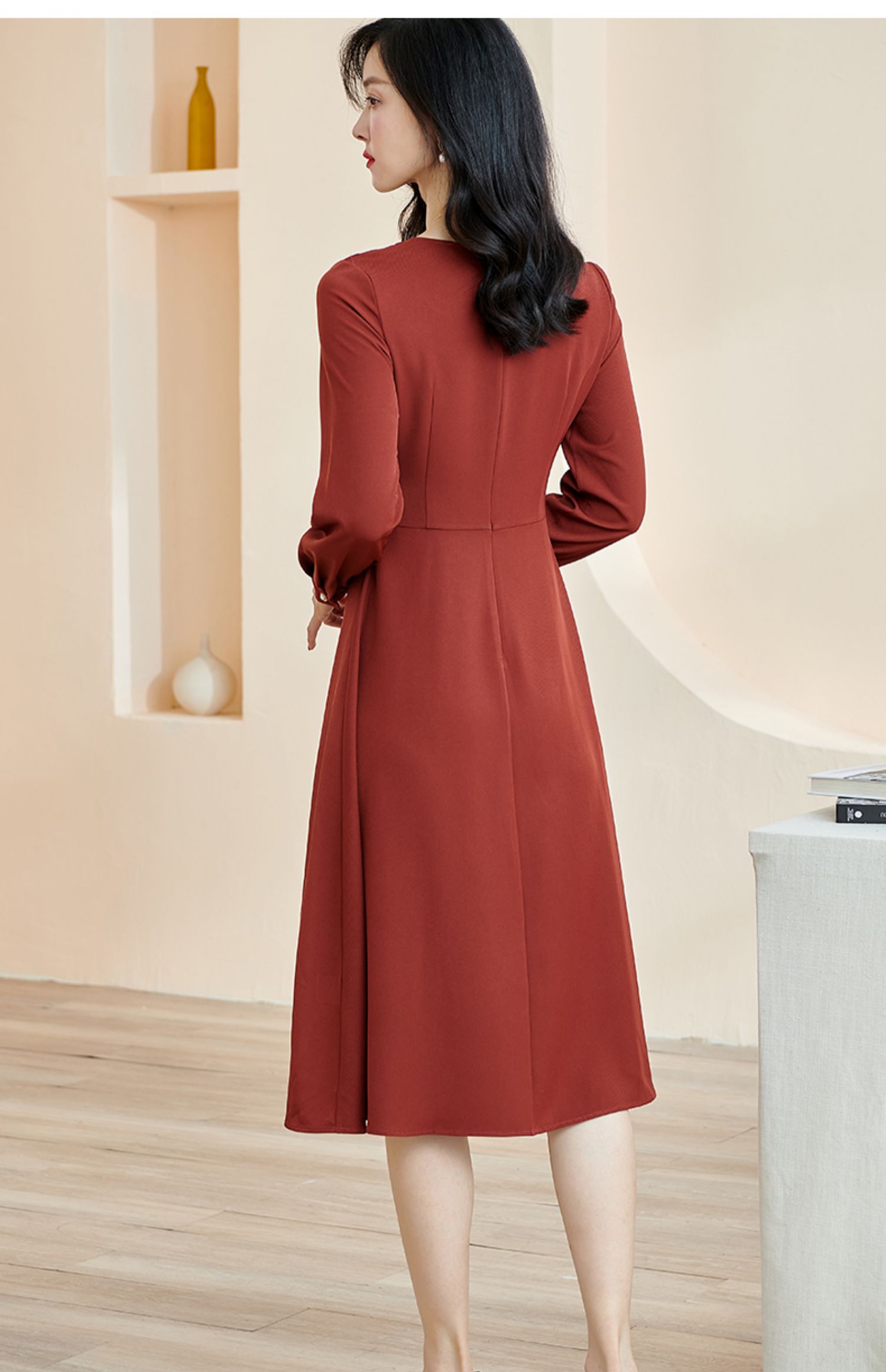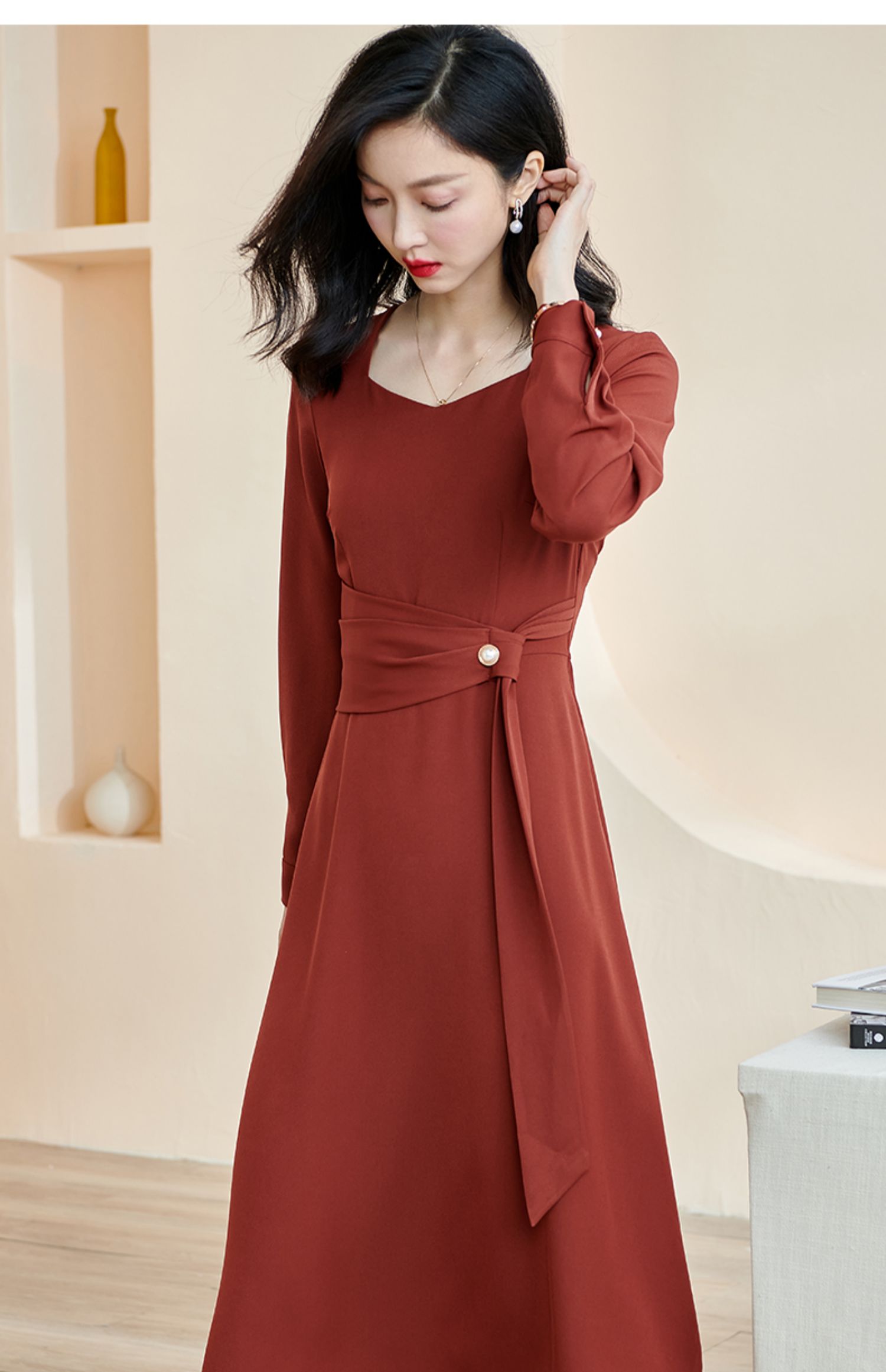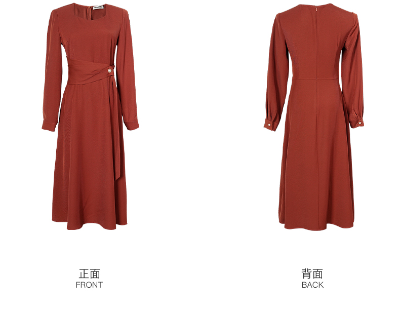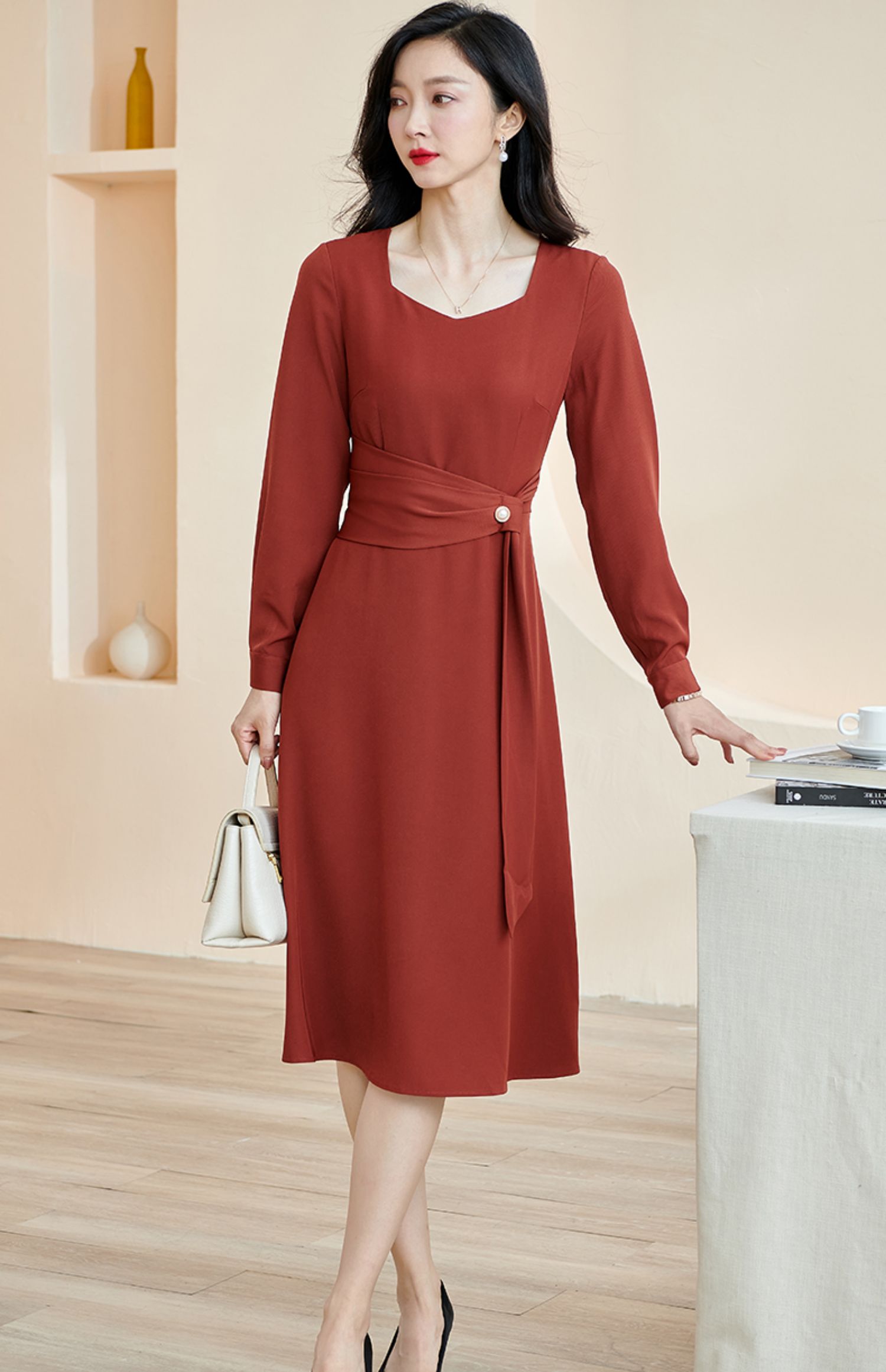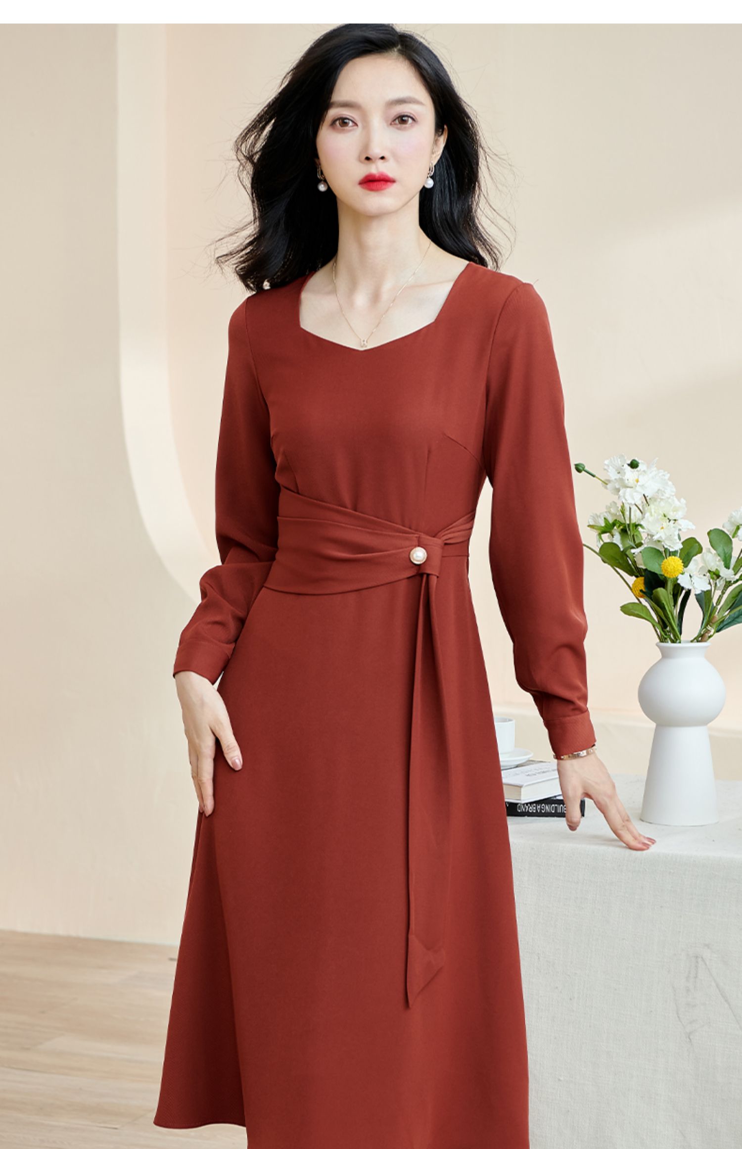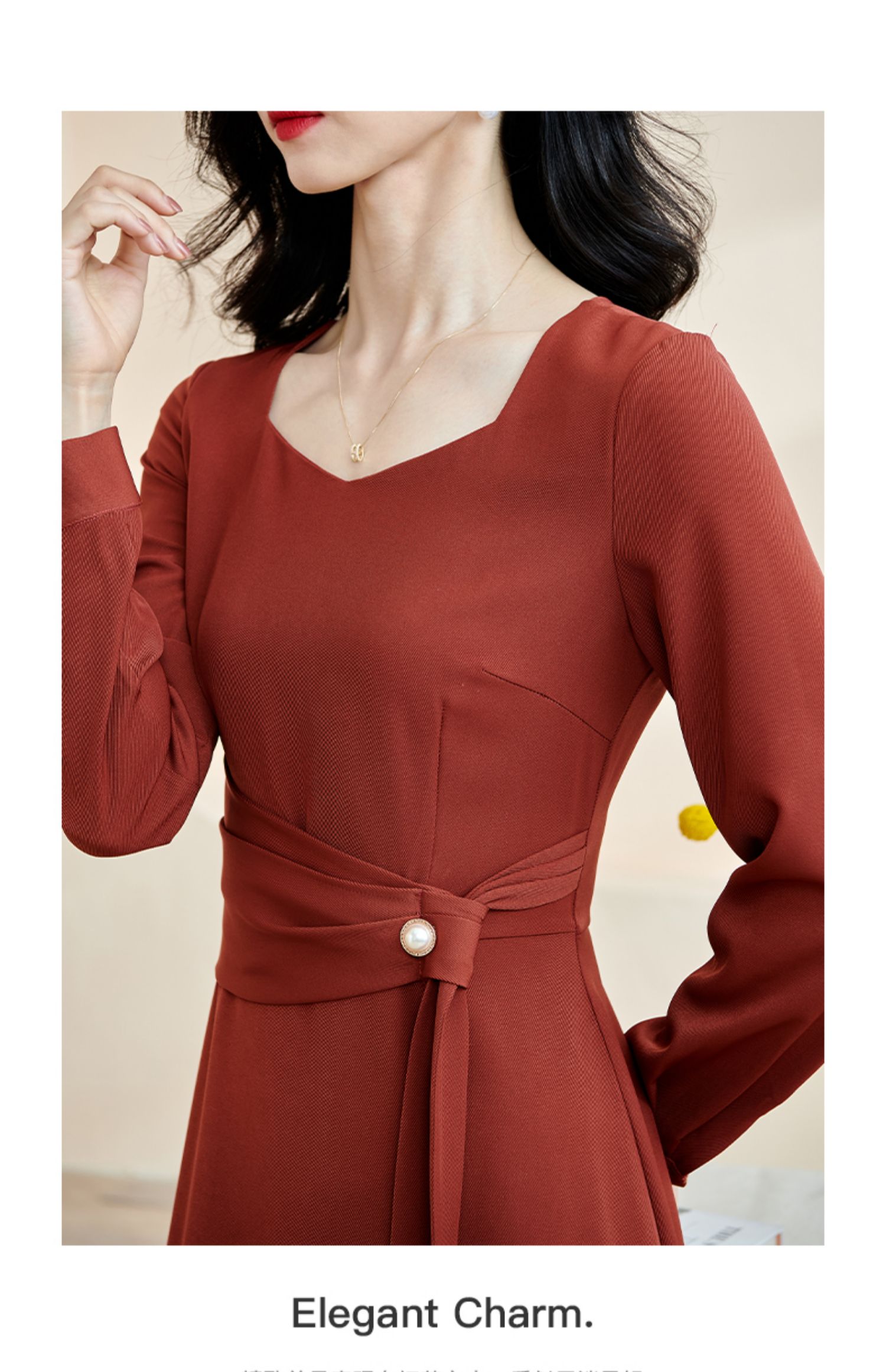 剩S/M 米思阳2026春季新款复古知性优雅方领连衣裙收腰显瘦中长裙2287
