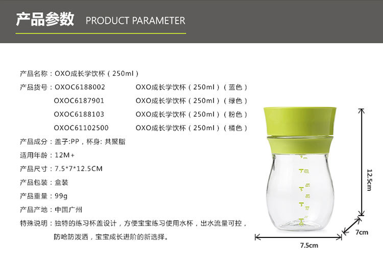 OXOtot奥秀成长学饮杯250ML(蓝色)OXOC6188002