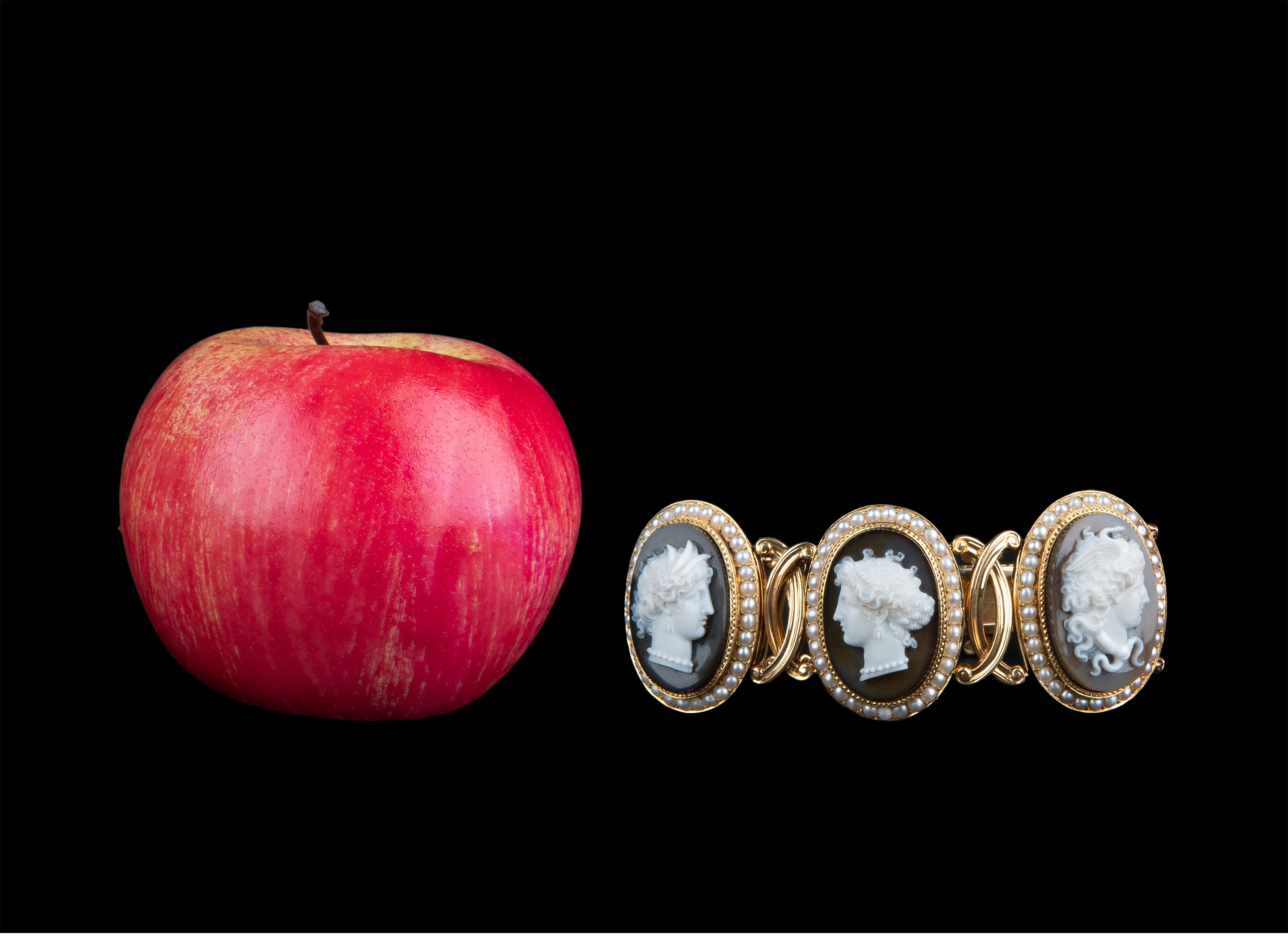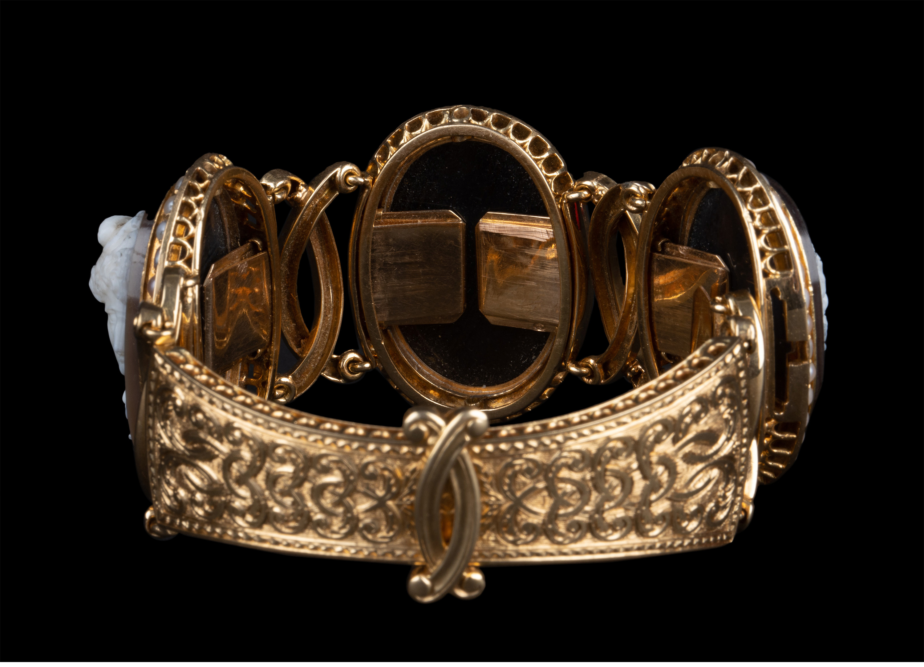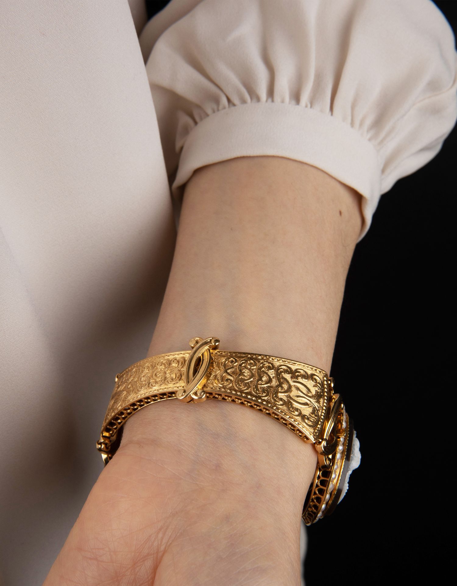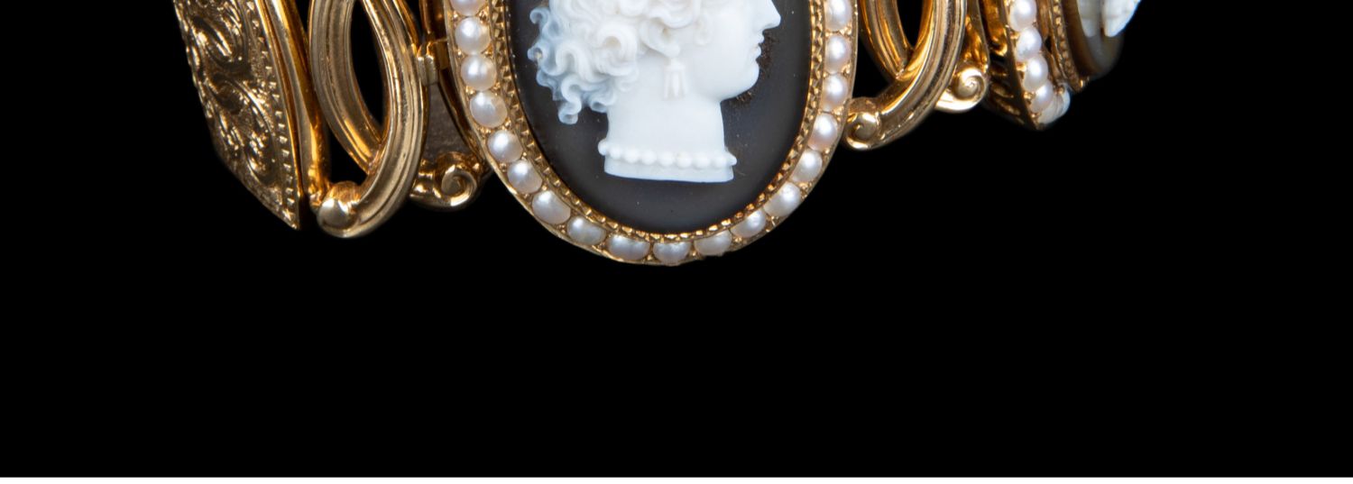 独角鹿西洋古董珠宝法国18K金镶珍珠玛瑙浮雕卡梅奥cameo手镯手链