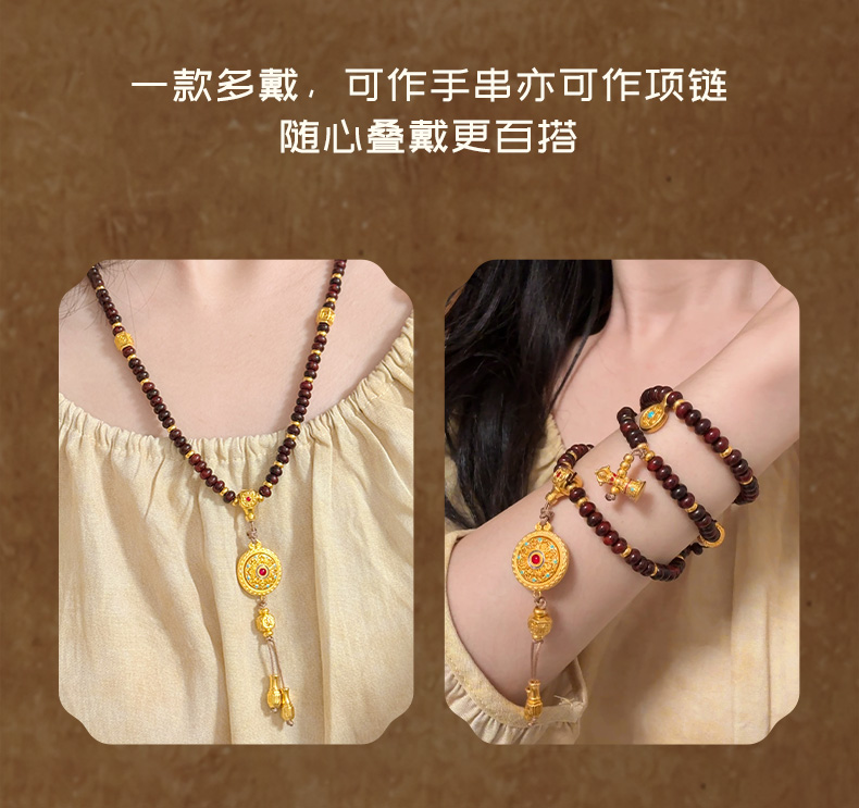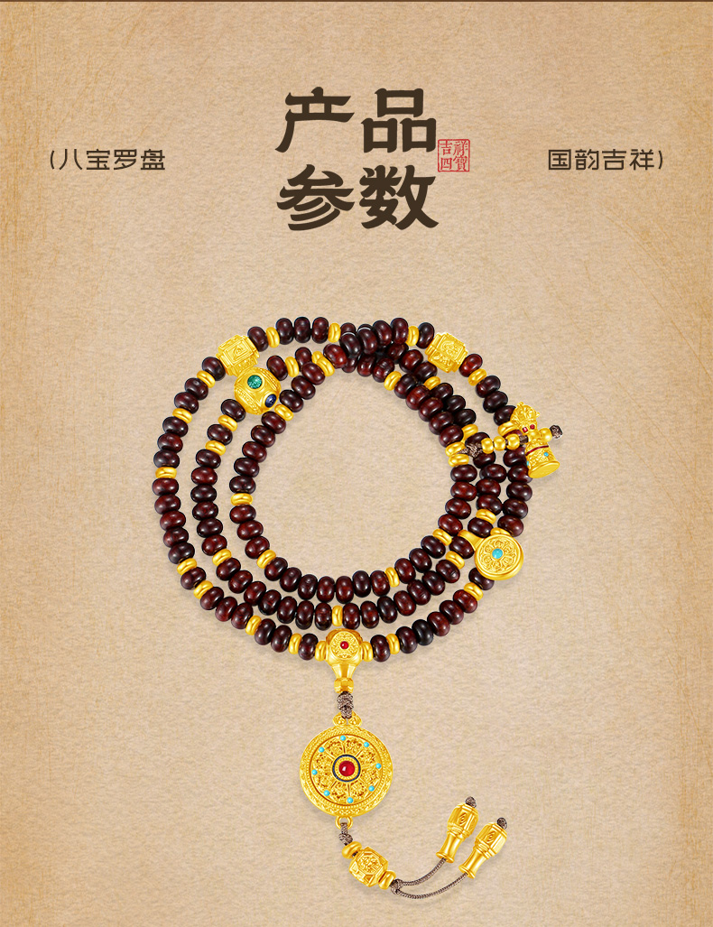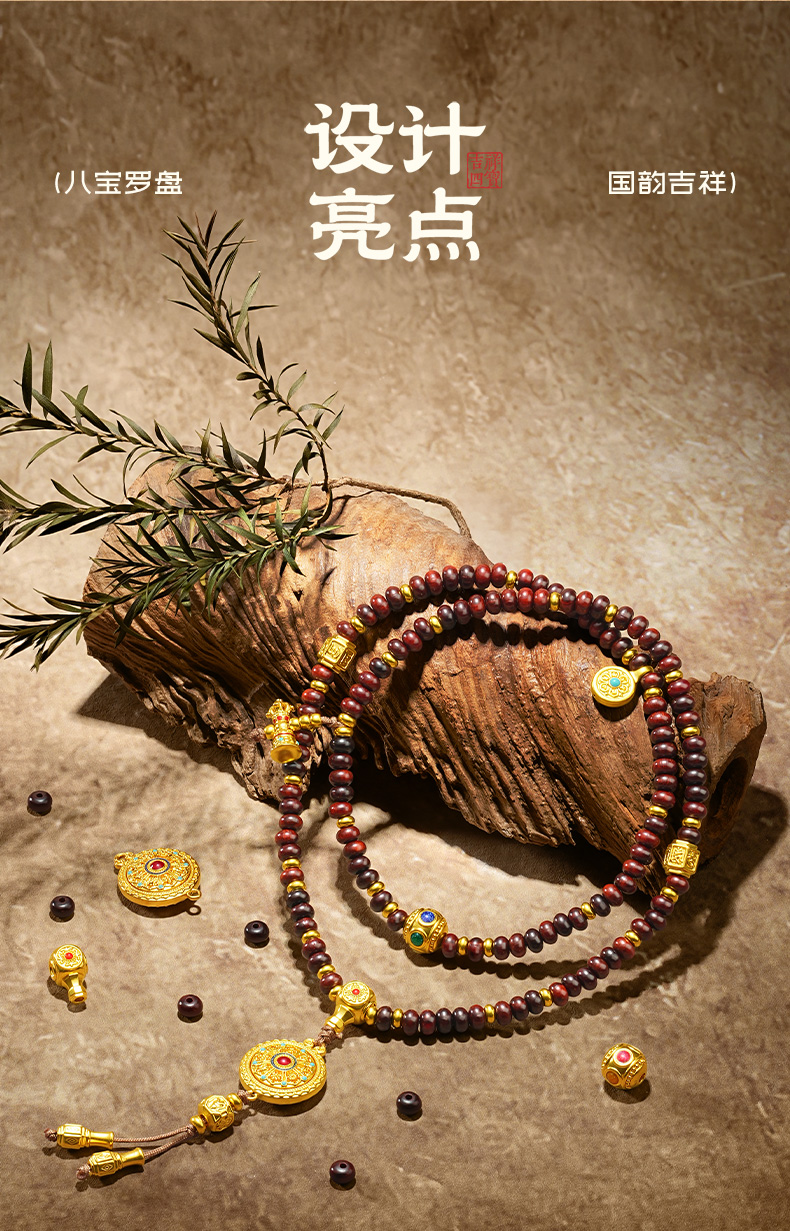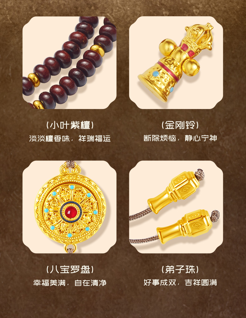 【无忧之夜同款】周大生IP联名足金八宝罗盘手串硬金福慧多吉小叶紫檀项链