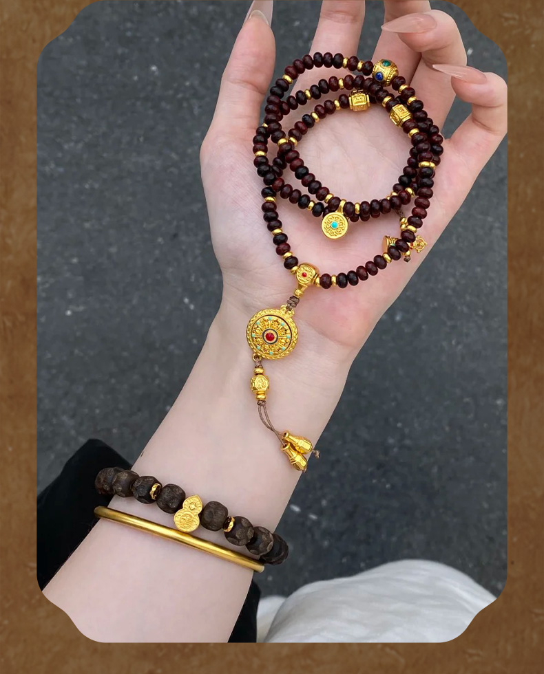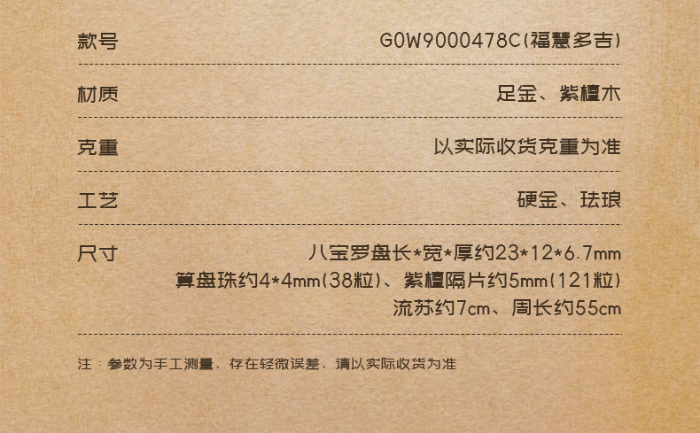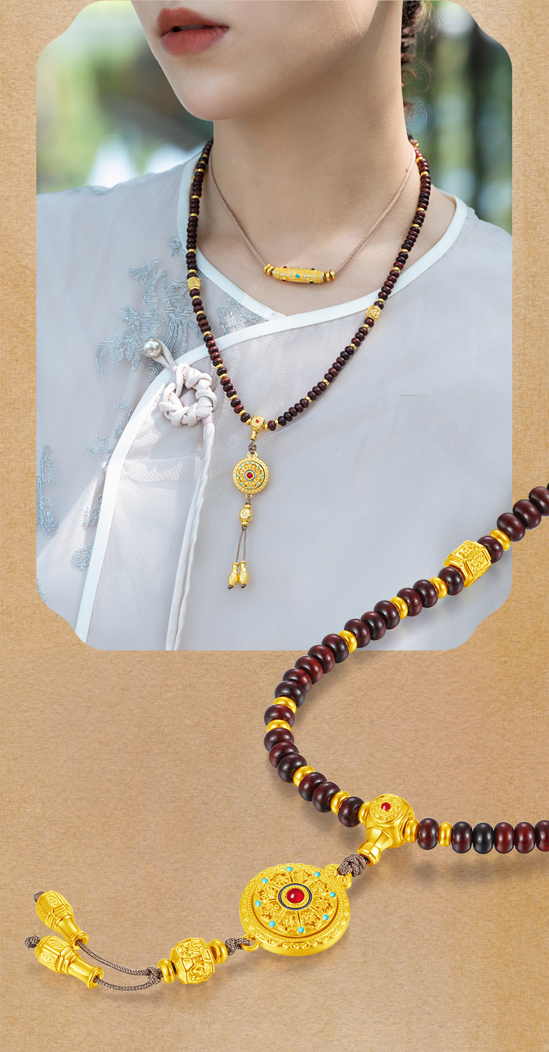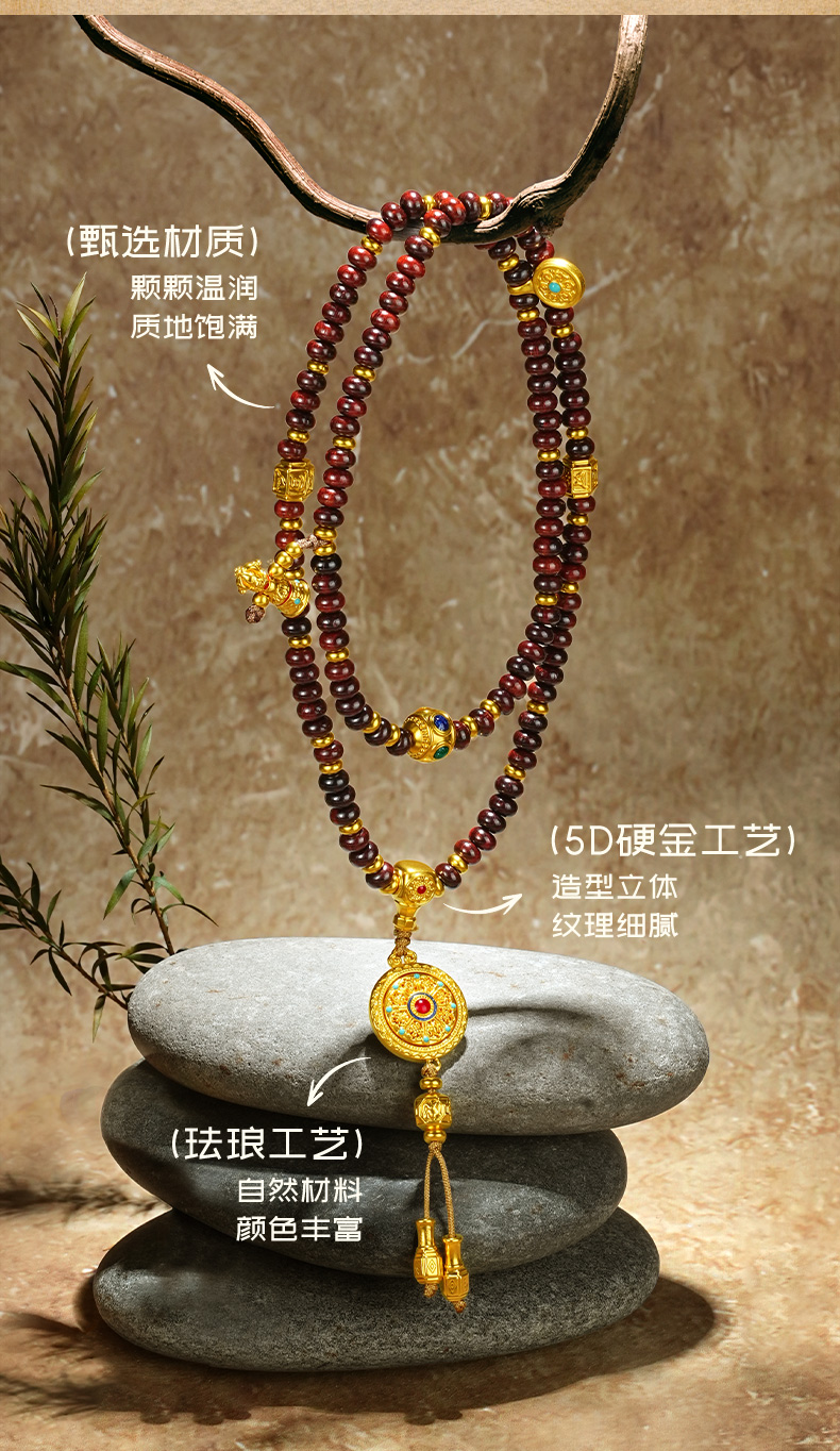 【无忧之夜同款】周大生IP联名足金八宝罗盘手串硬金福慧多吉小叶紫檀项链