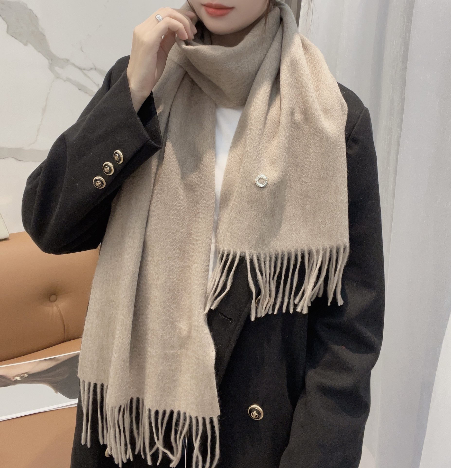 秋冬特惠💰460 诺悠翩雅围巾 经典“水波纹”素色羊绒围巾