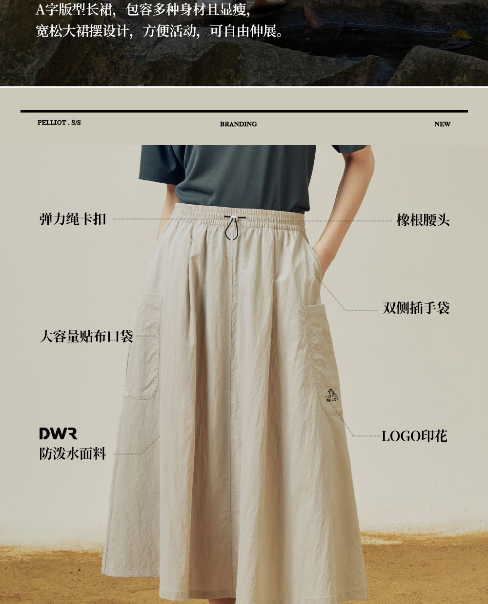 【山系】伯希和户外露营半身裙女25夏季新款轻盈透气休闲时尚长裙