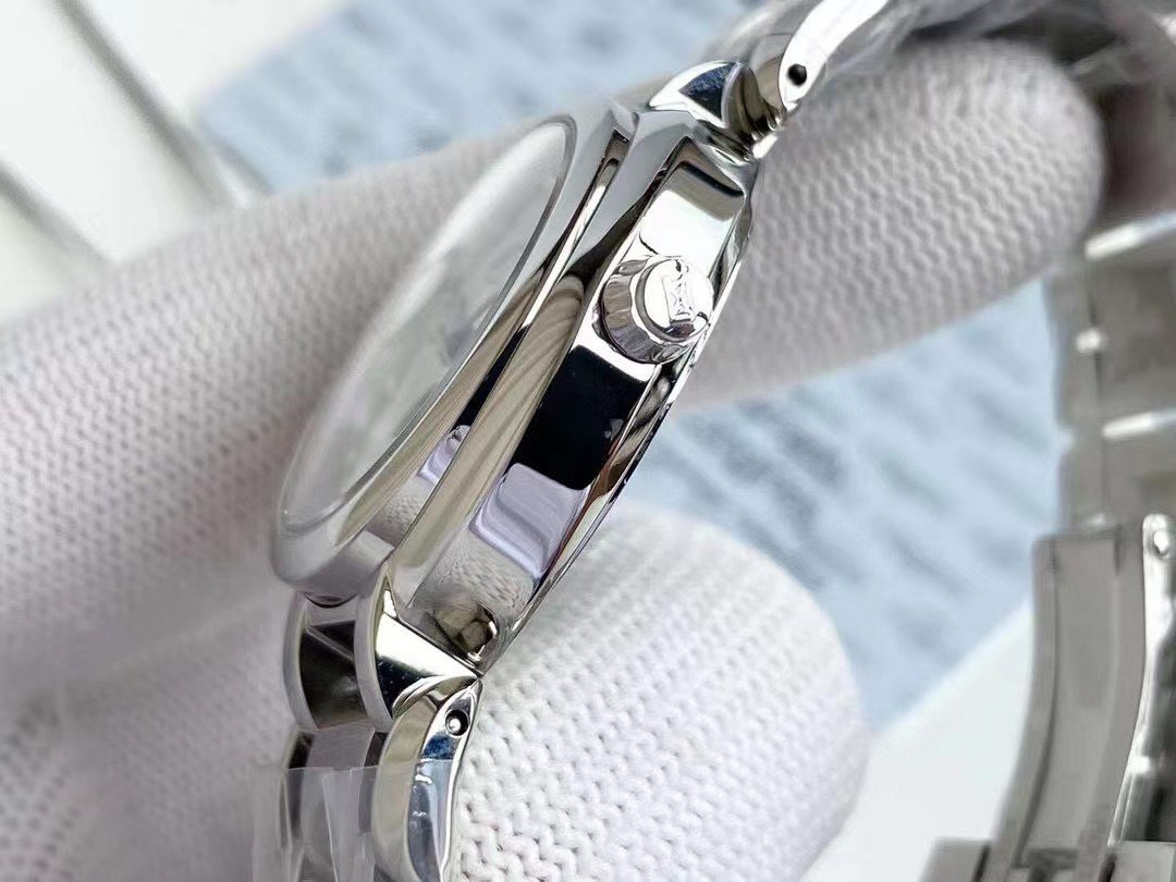 【表壳】腕表尺寸30.5mmX9.4mm。圆润的曲线式设计使得壳体别致精巧。举手投足之间,落落大方。每一件表壳均是GS的匠心精品。