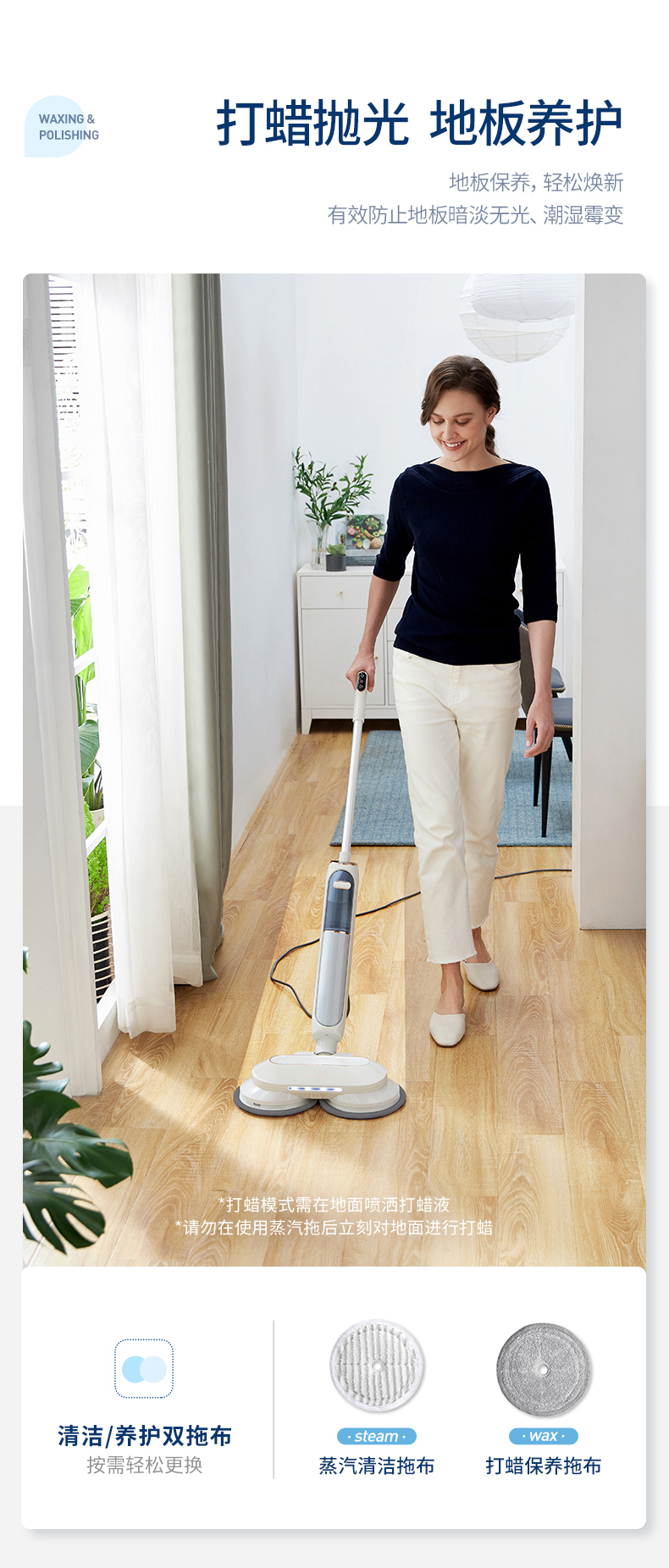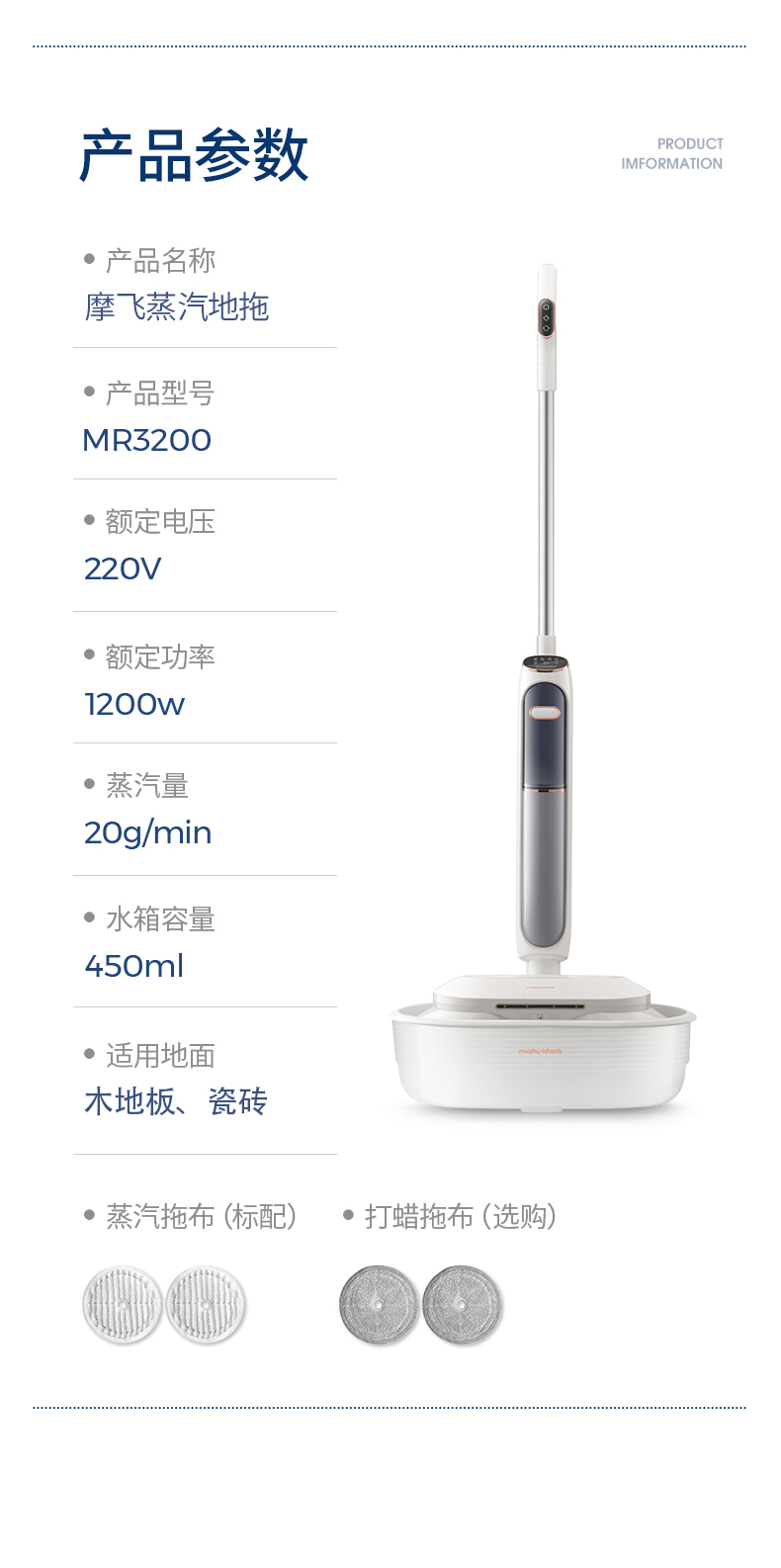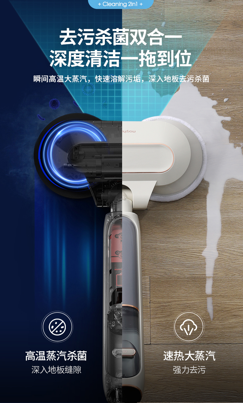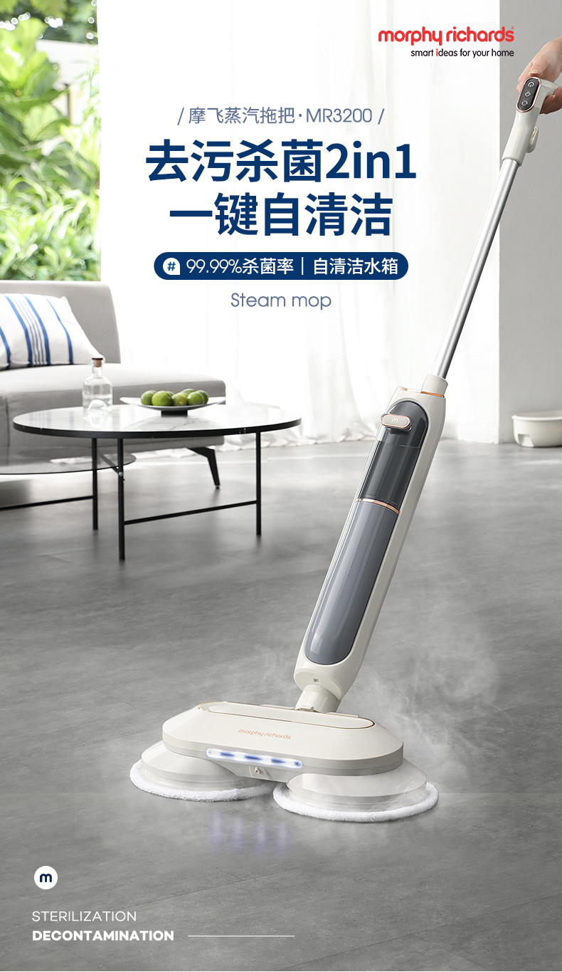 摩飞(Morphyrichards)蒸汽拖把家用擦地拖地清洗机高温蒸汽除菌MR3200