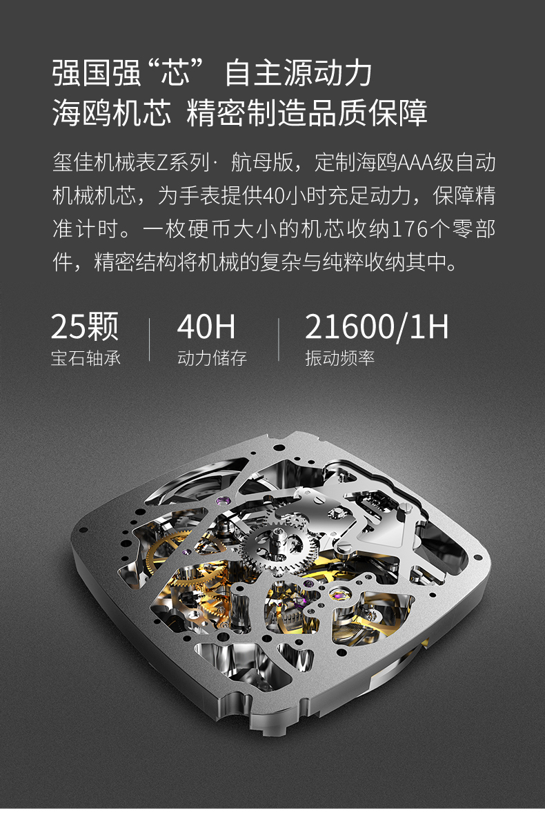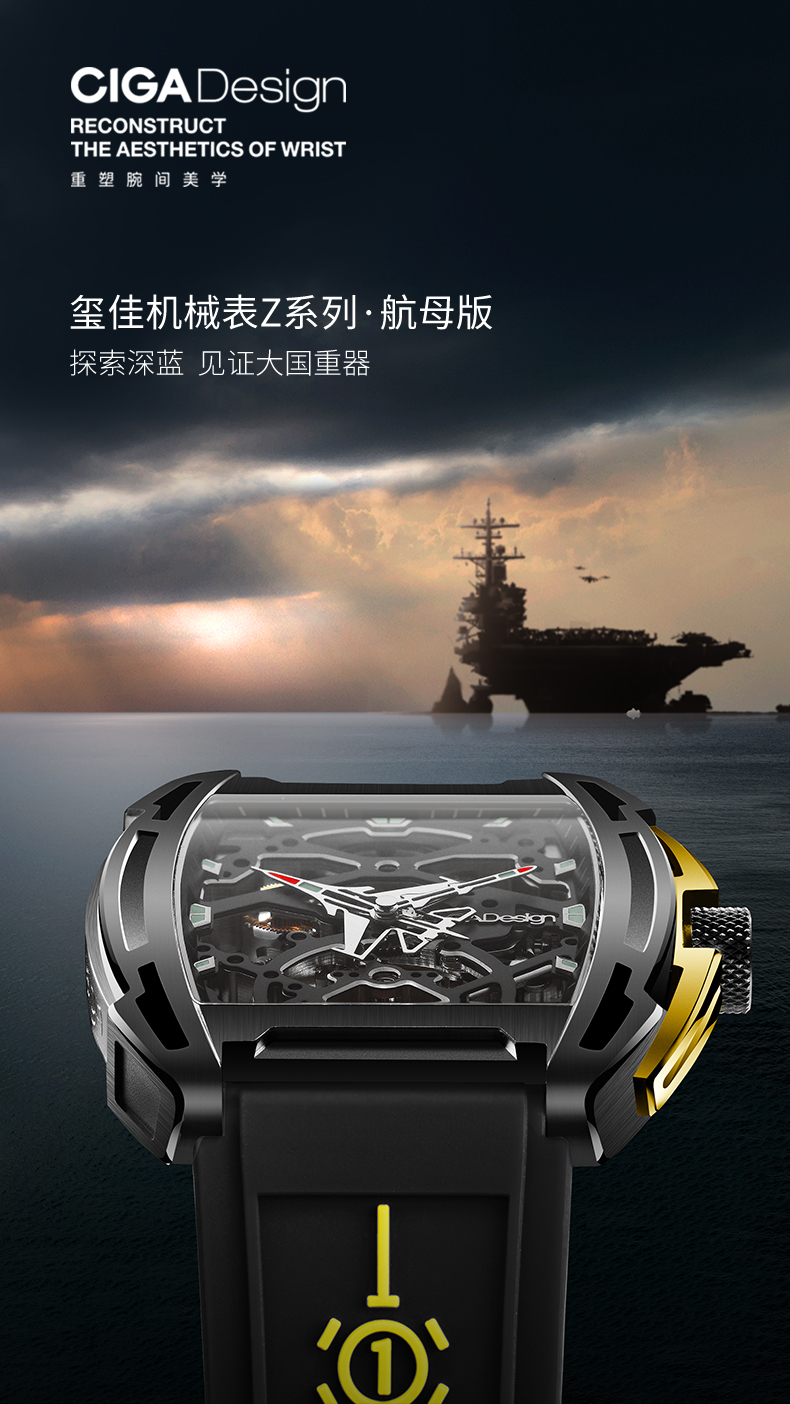 CIGA design玺佳机械表Z系列航母主题手表男士镂空经典酒桶型腕表