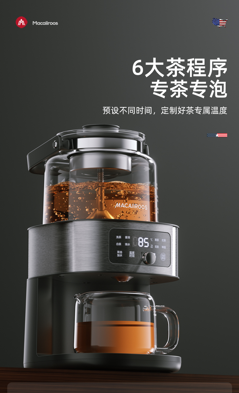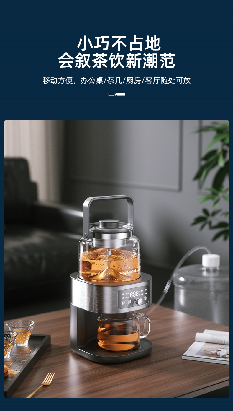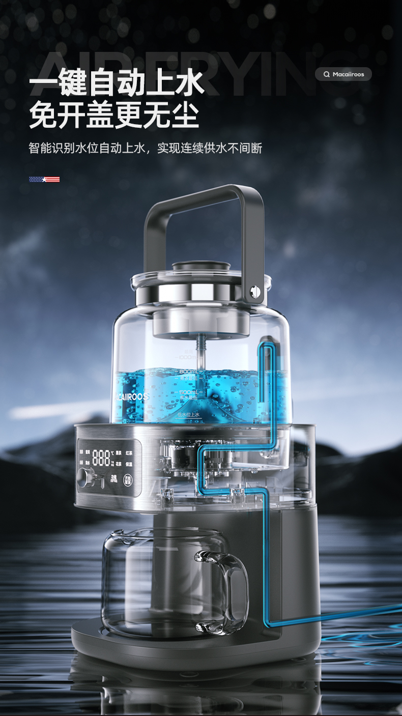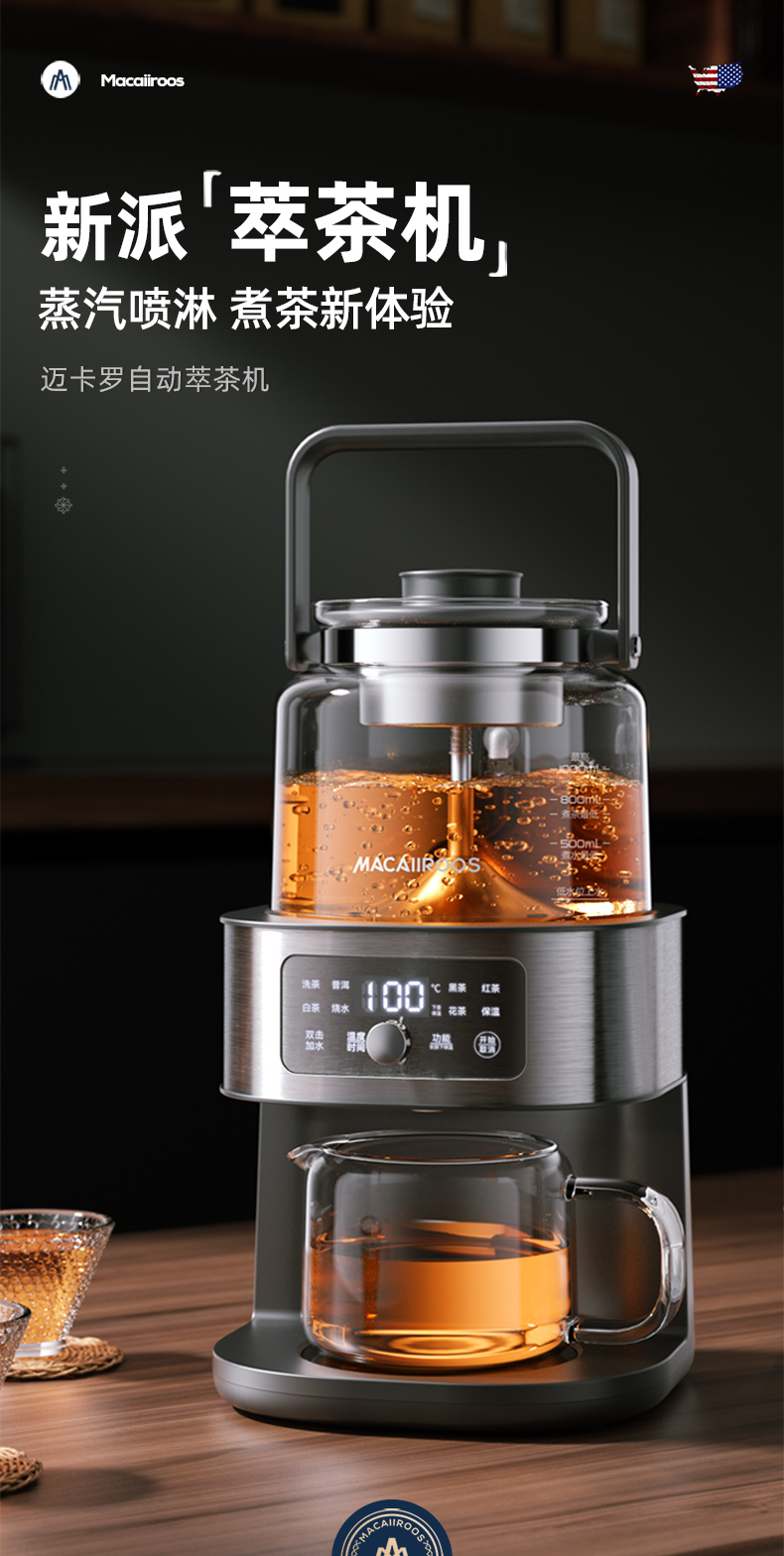 迈卡罗自动萃茶机煮茶器蒸茶煮茶一体壶养生壶全自动智能蒸汽煮茶器烧水壶自动上水 MC-ZC1109