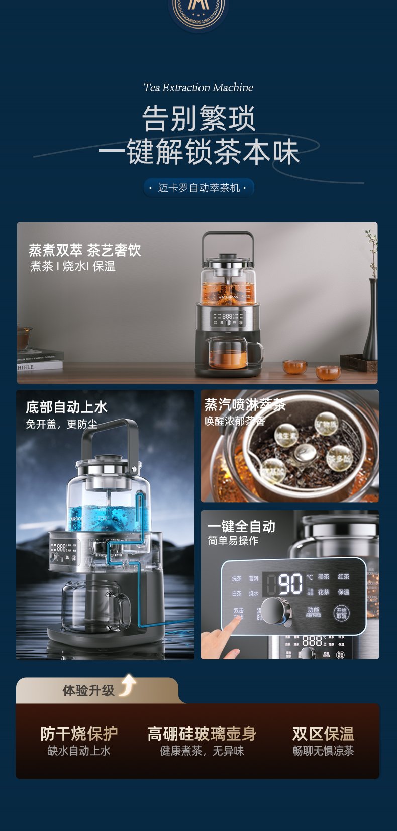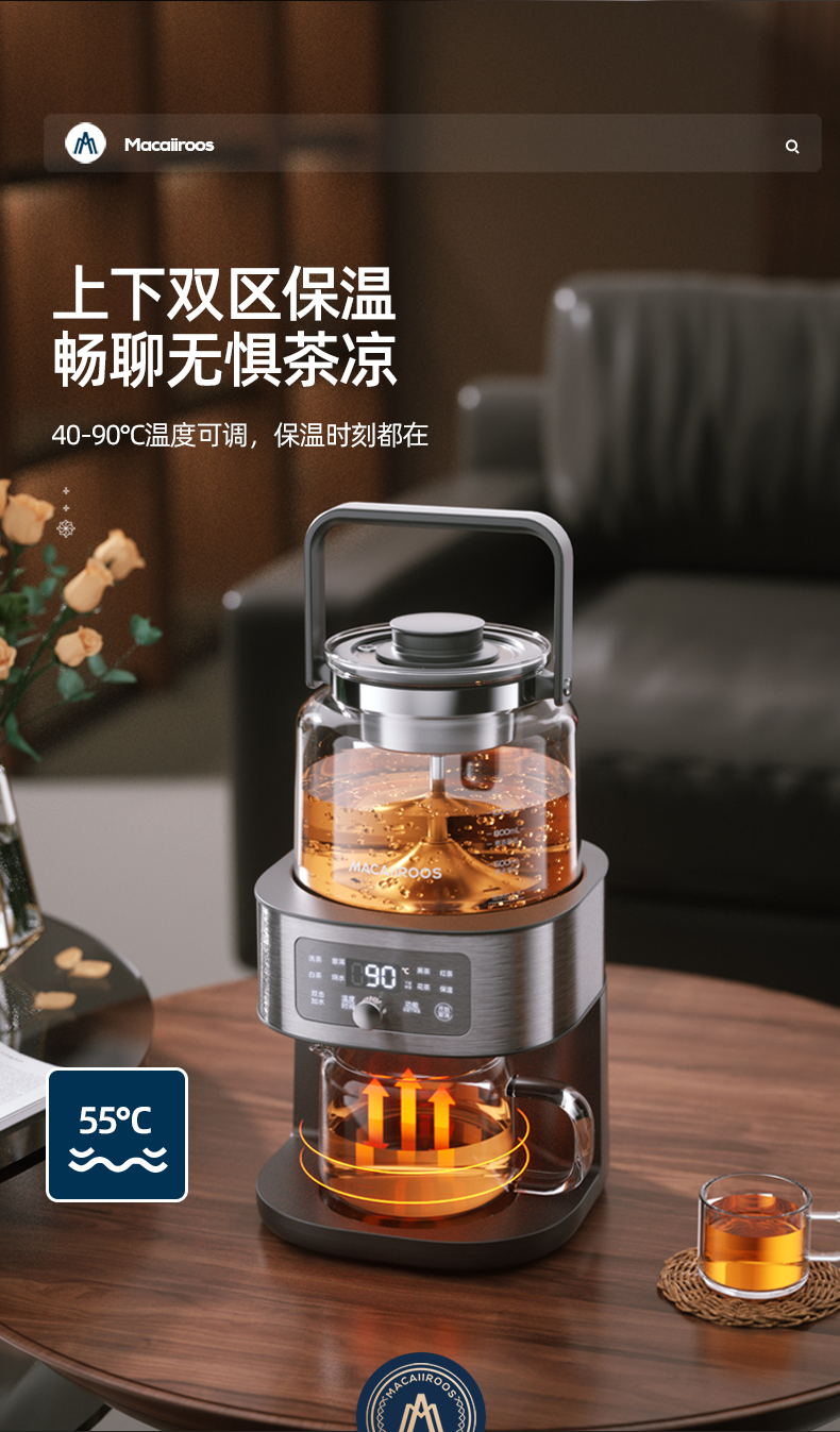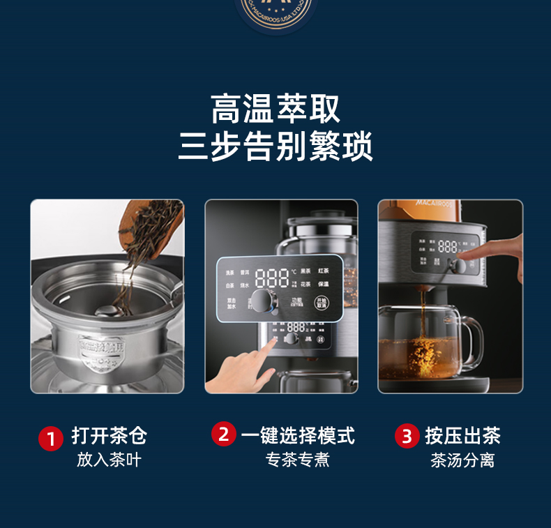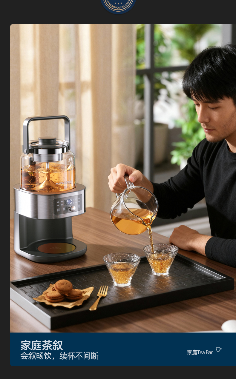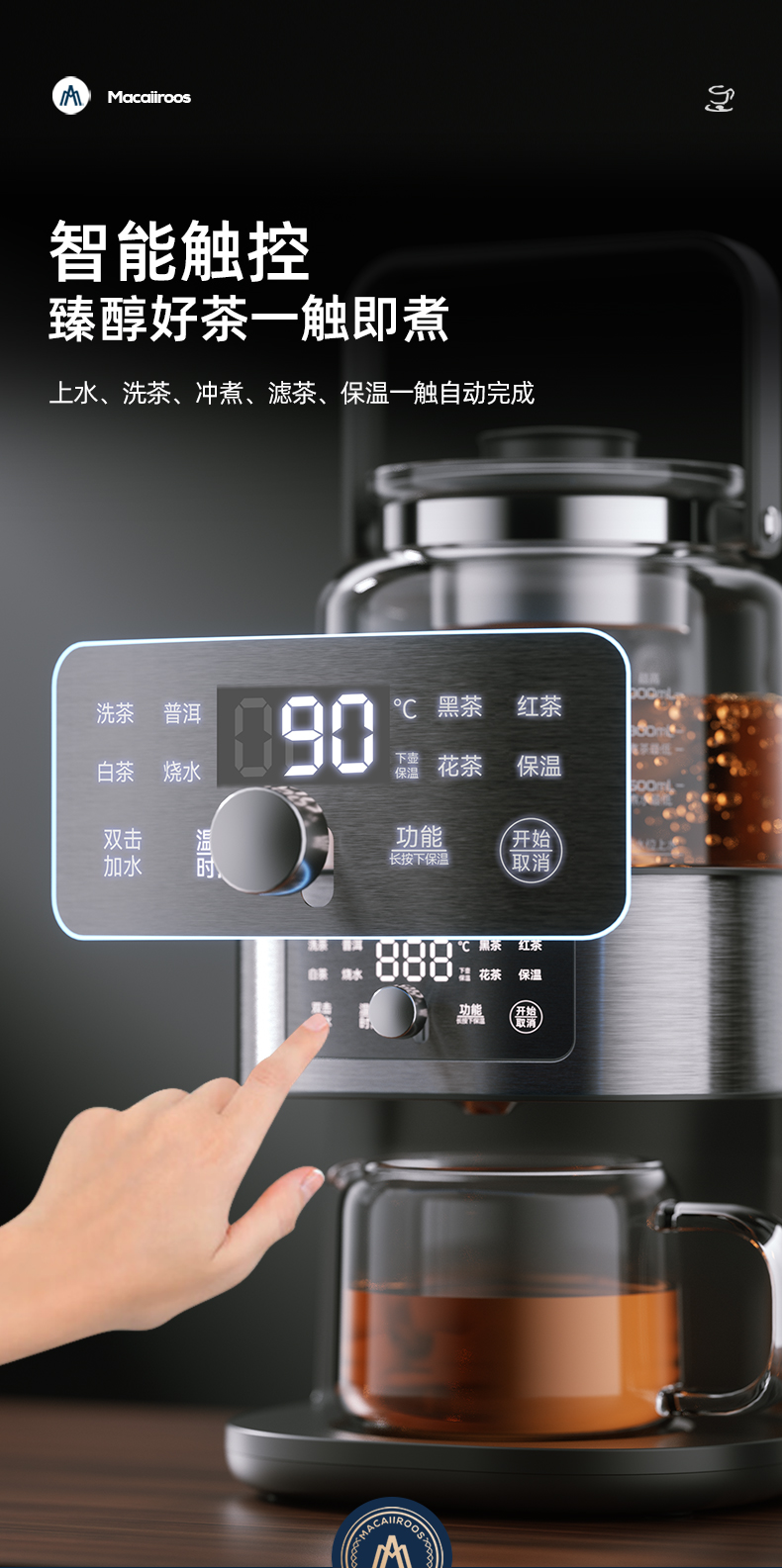 迈卡罗自动萃茶机煮茶器蒸茶煮茶一体壶养生壶全自动智能蒸汽煮茶器烧水壶自动上水 MC-ZC1109