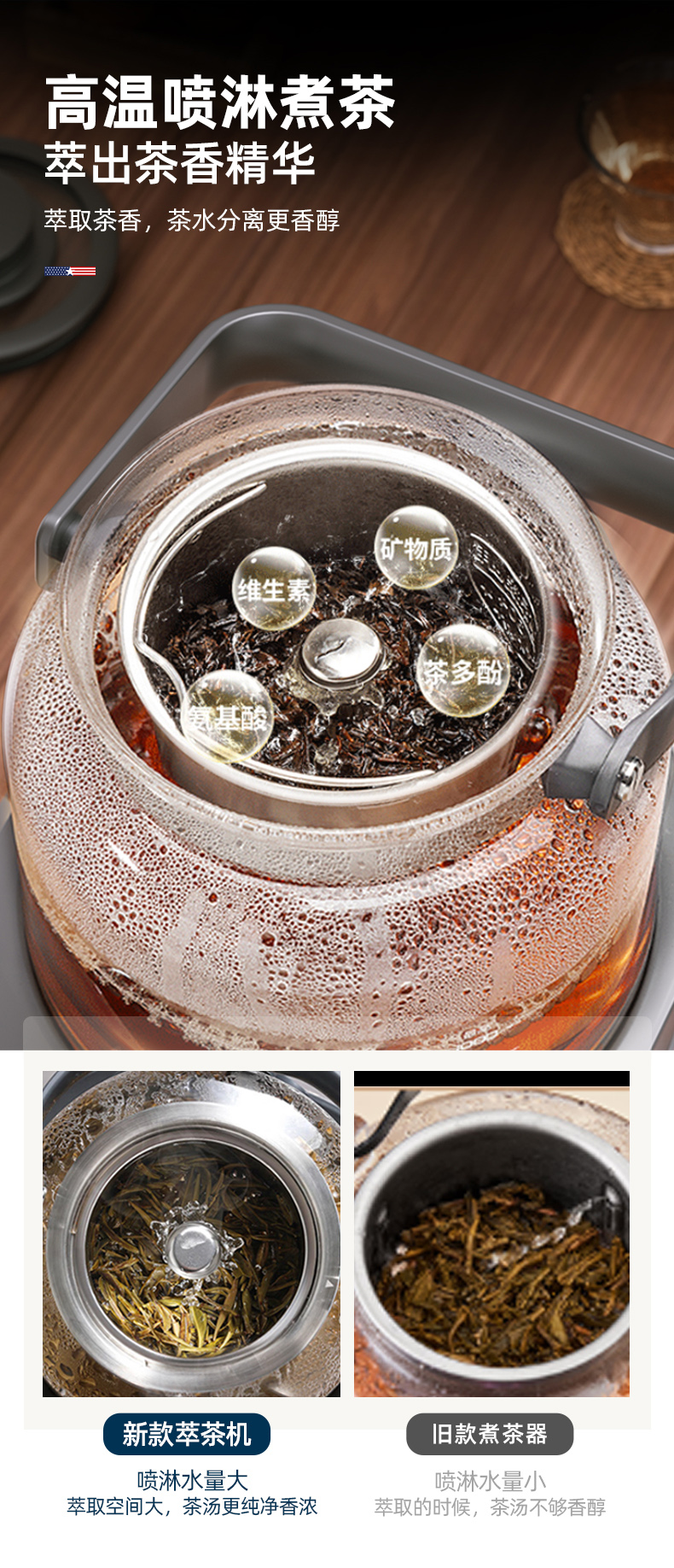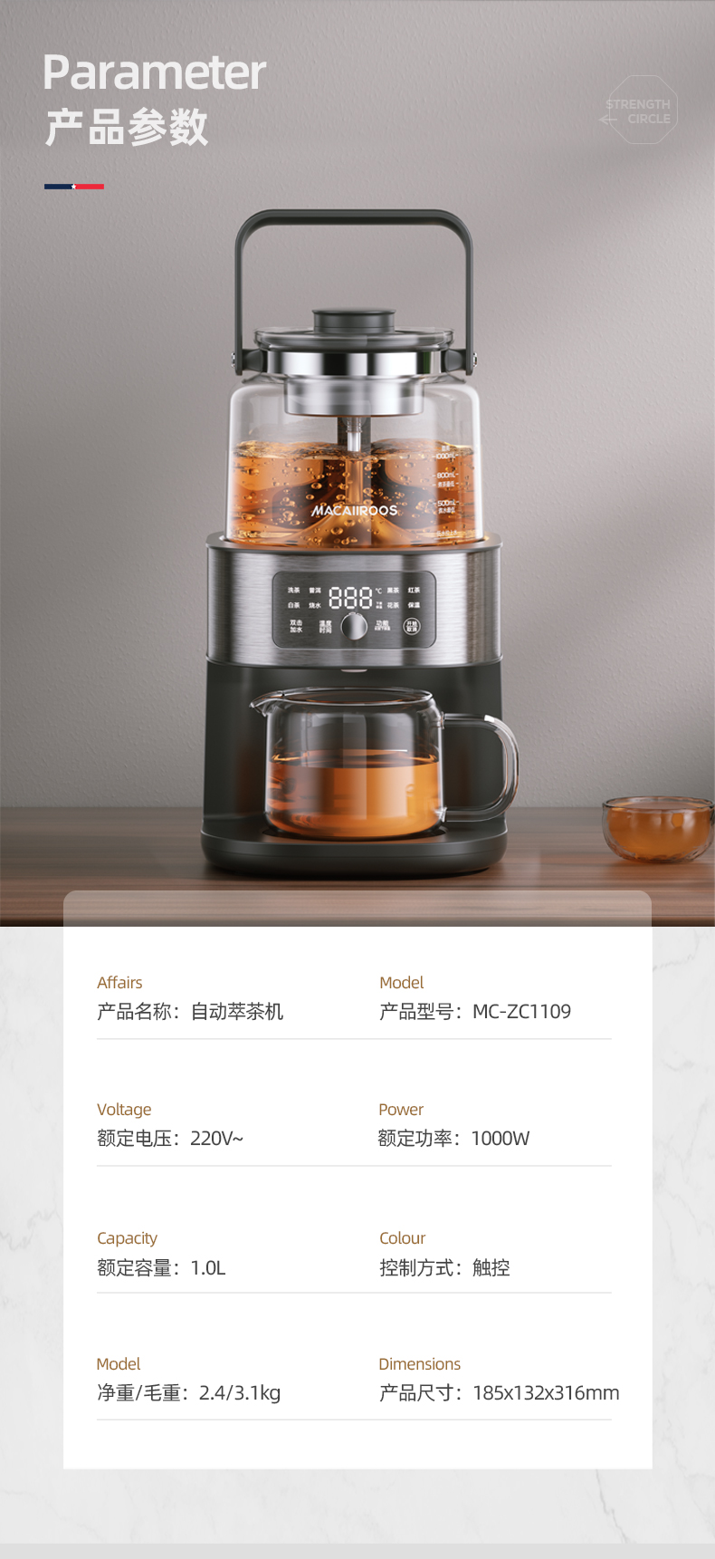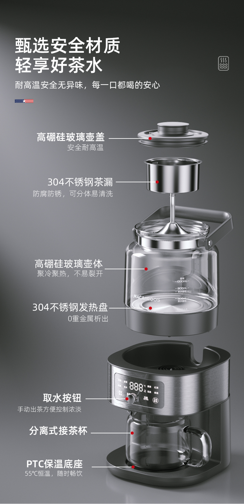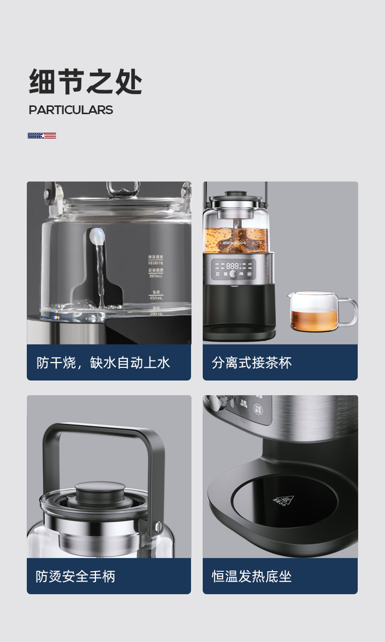 迈卡罗自动萃茶机煮茶器蒸茶煮茶一体壶养生壶全自动智能蒸汽煮茶器烧水壶自动上水 MC-ZC1109