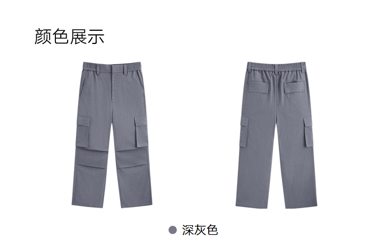 GXG男装 深灰褶皱工装裤宽松伞兵裤男 24年秋G24X023077