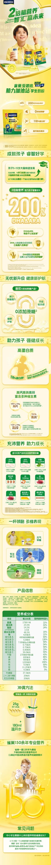 雀巢爱思培学生奶粉脑力加油站6-15岁全进口奶源多向成长