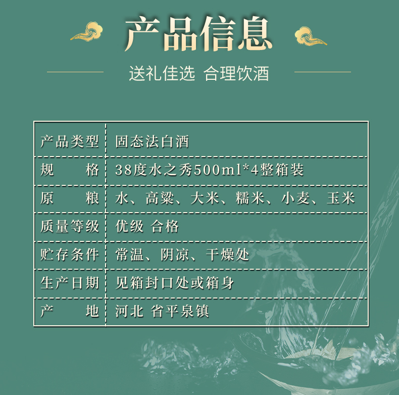 【新品整箱4瓶7折】山庄皇家珍藏水之秀38度浓香型纯粮酿造500ml单瓶装