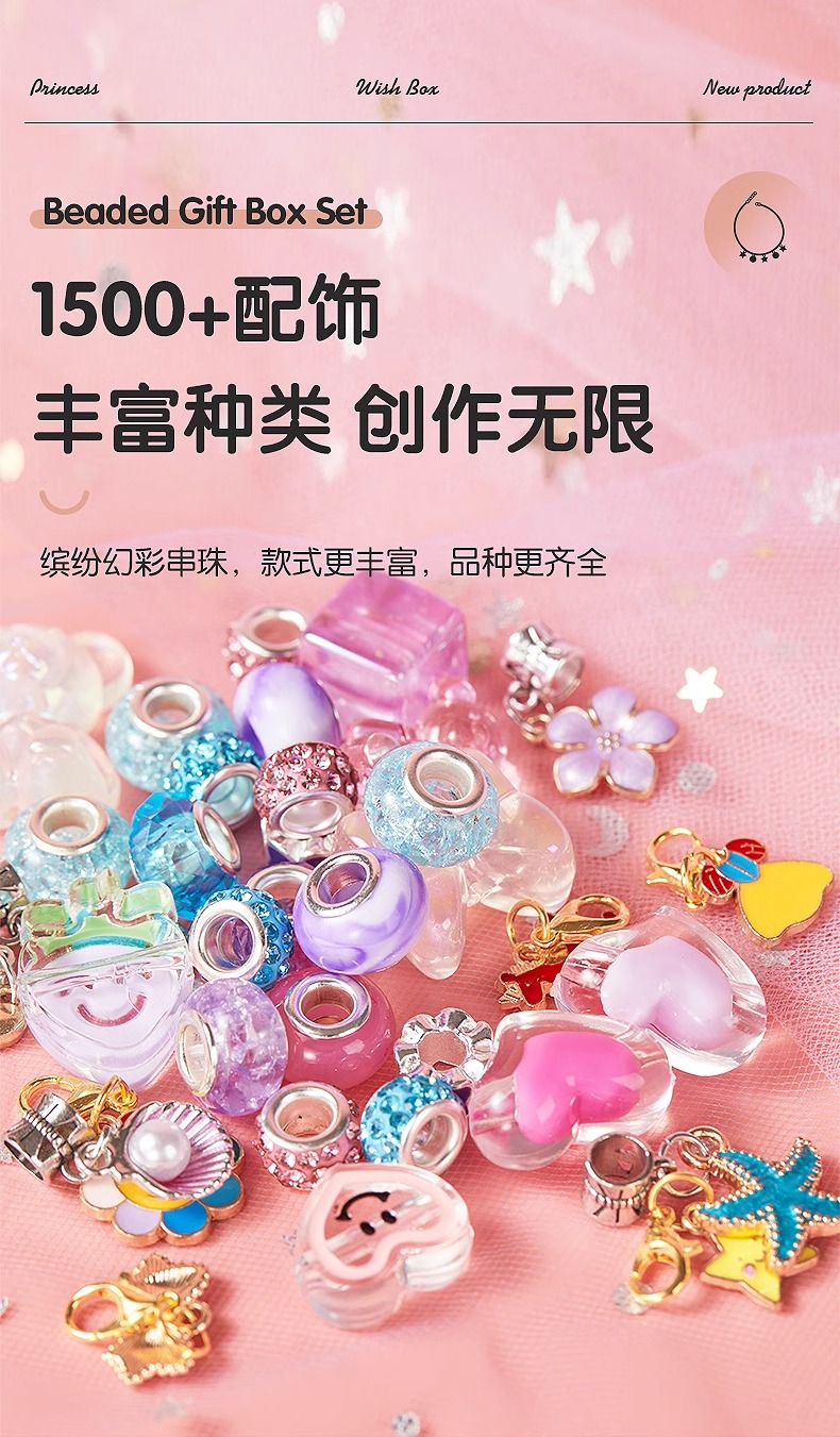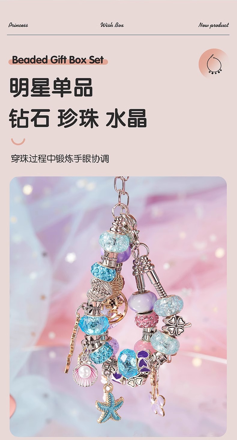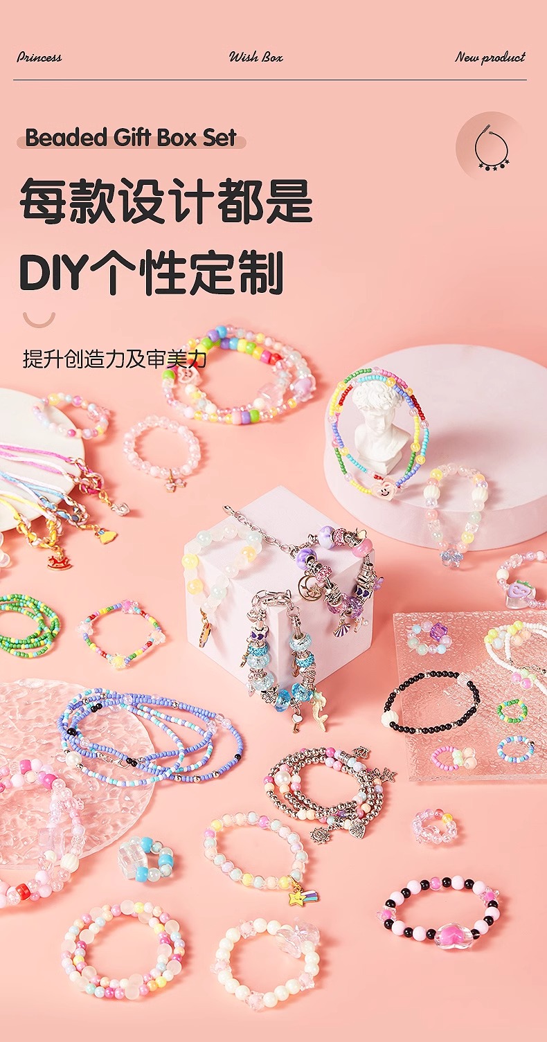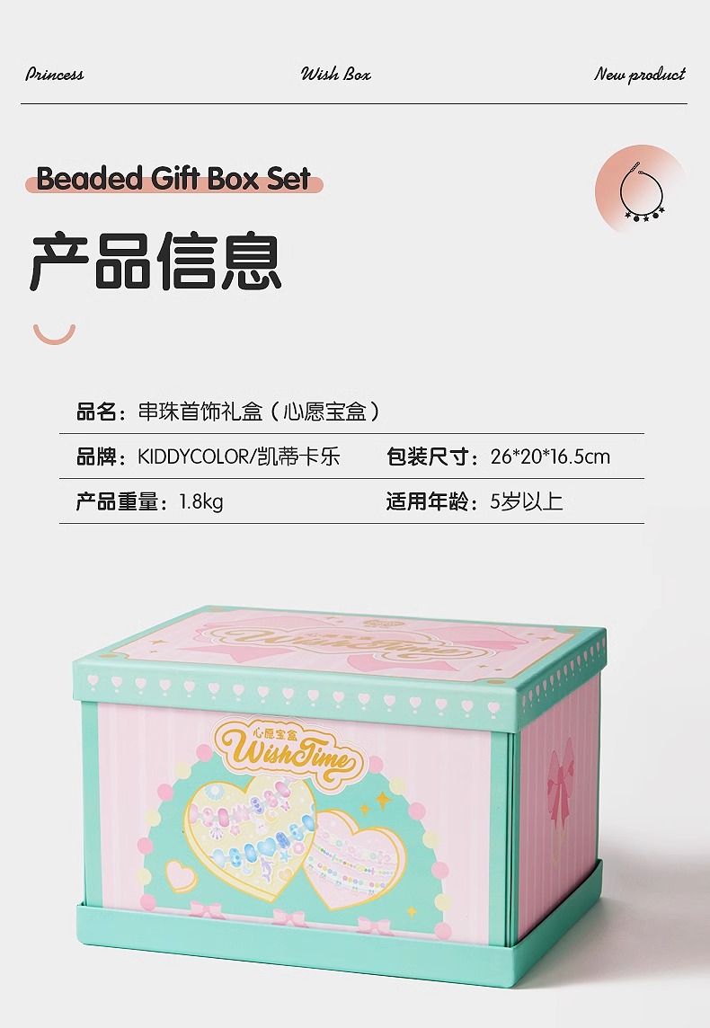 凯蒂卡乐儿童串珠礼盒玩具女孩手工diy材料穿珠子手链宝石首饰箱