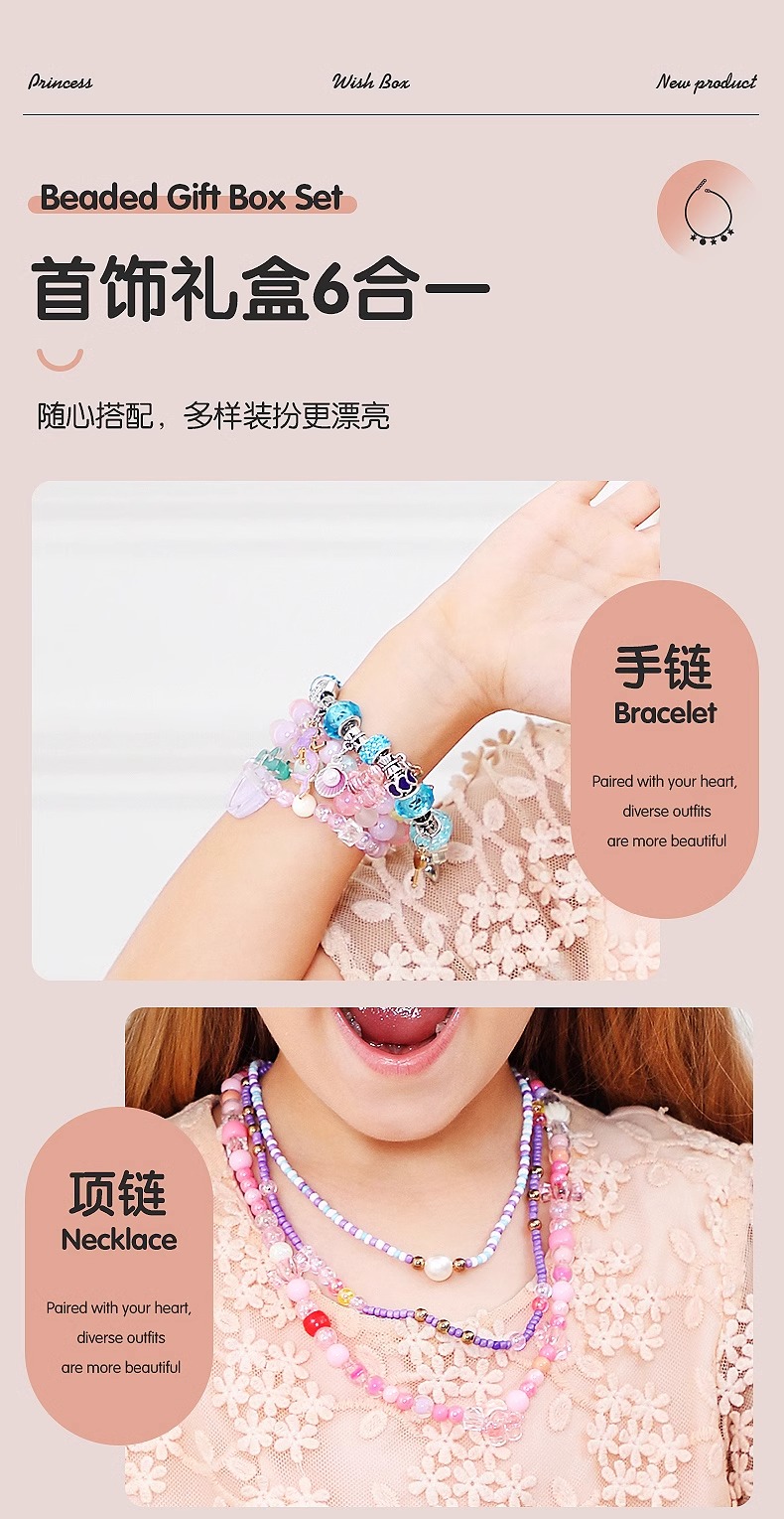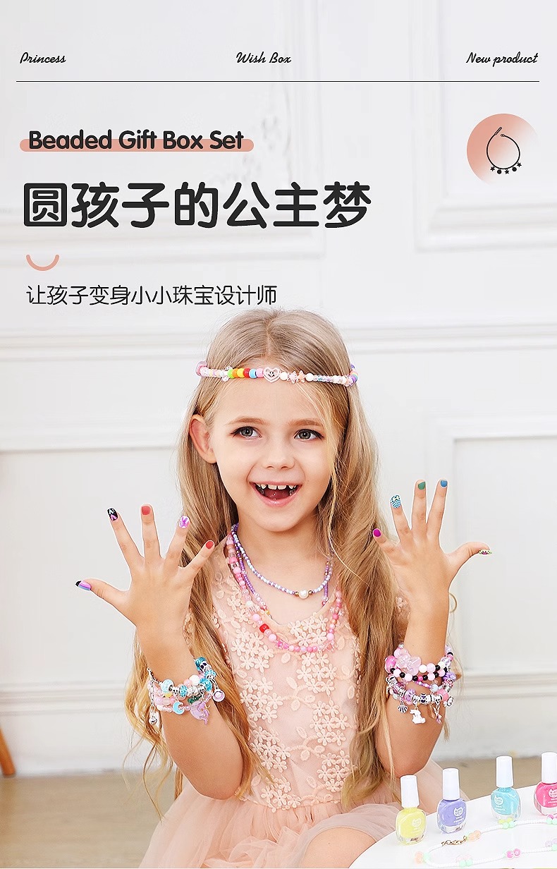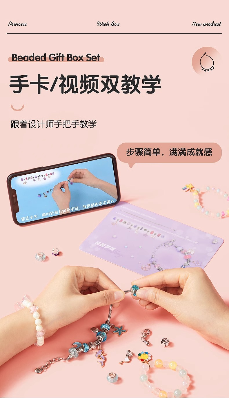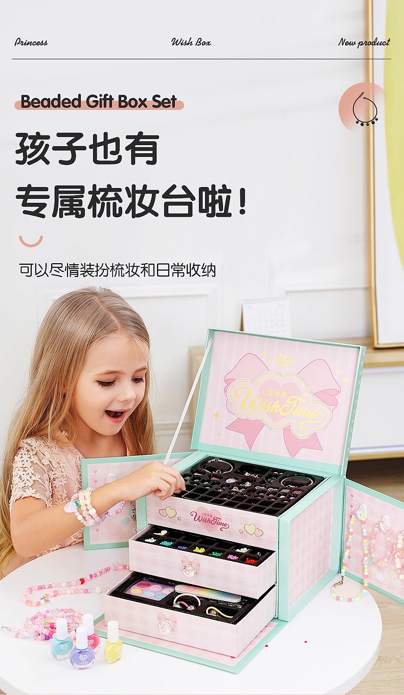 凯蒂卡乐儿童串珠礼盒玩具女孩手工diy材料穿珠子手链宝石首饰箱