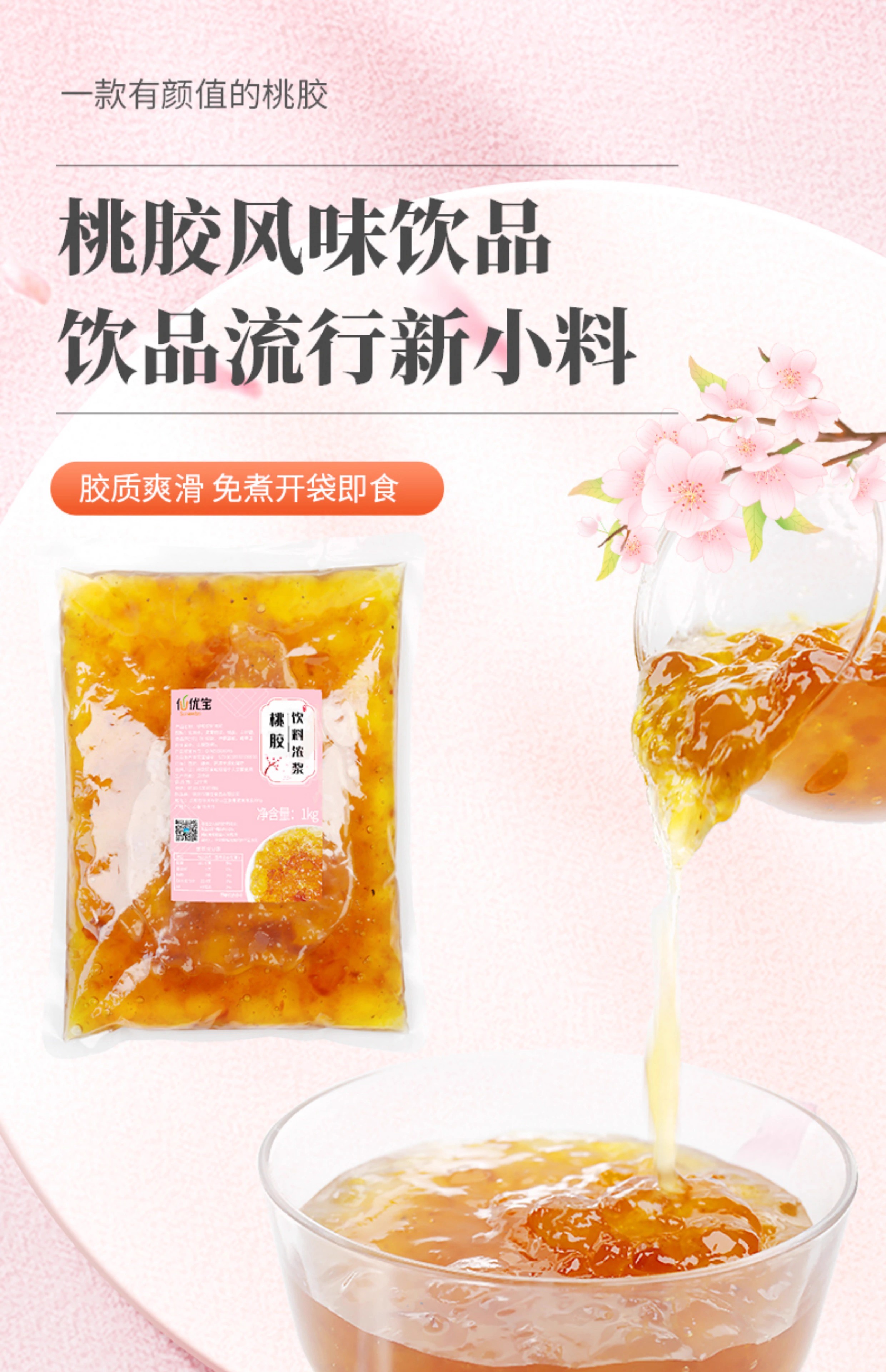 【保质期到26.2.26,特价】1kg 仙优宝 桃胶饮料浓浆 免煮 桃胶酱奶茶店新中式饮品商用咖啡店原料
