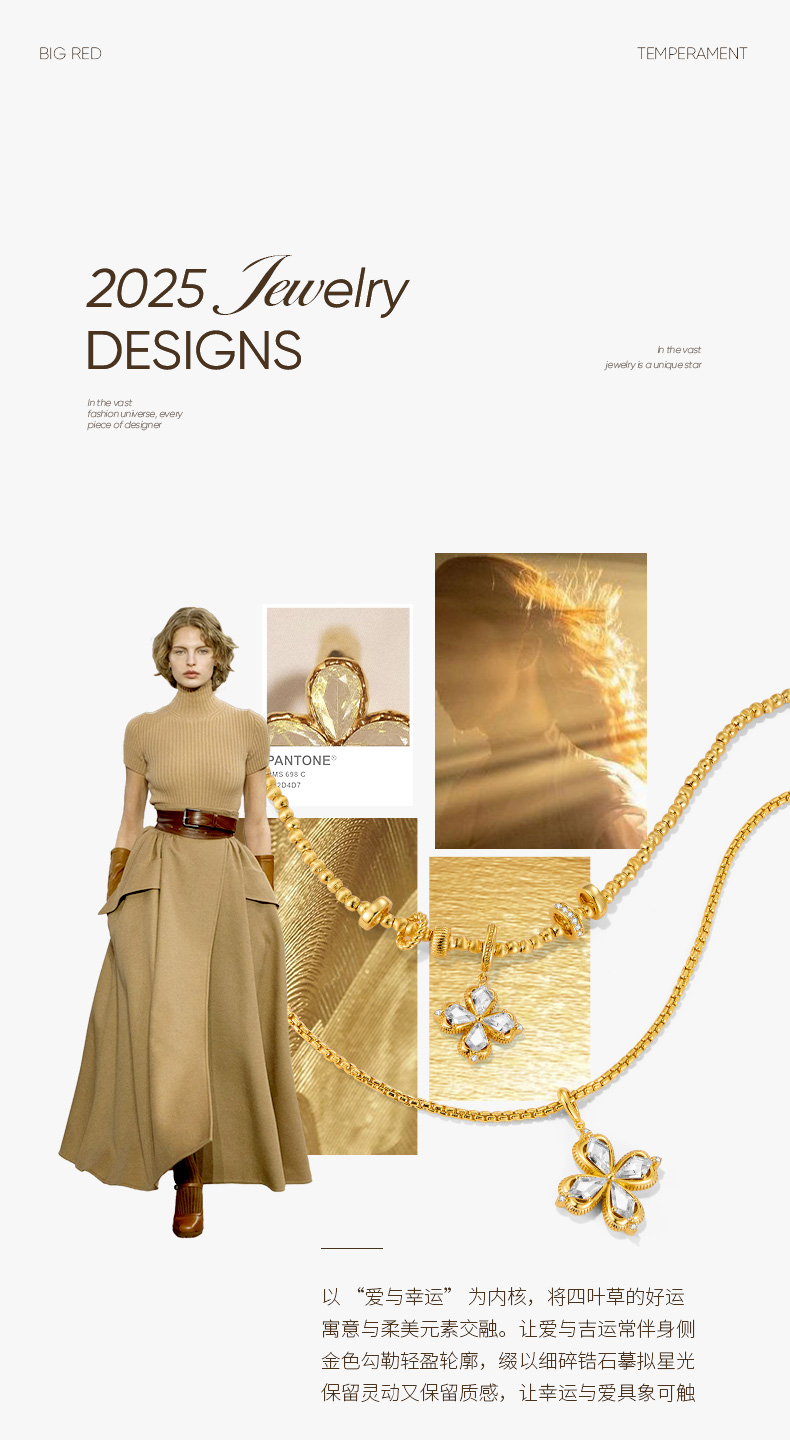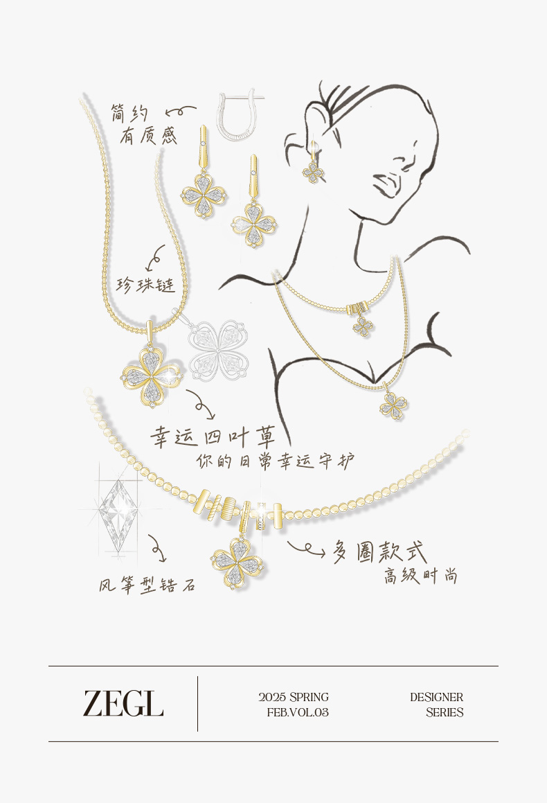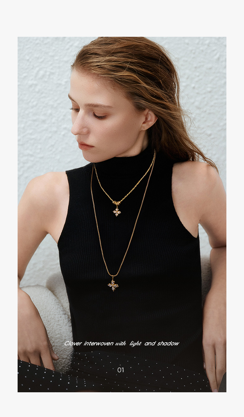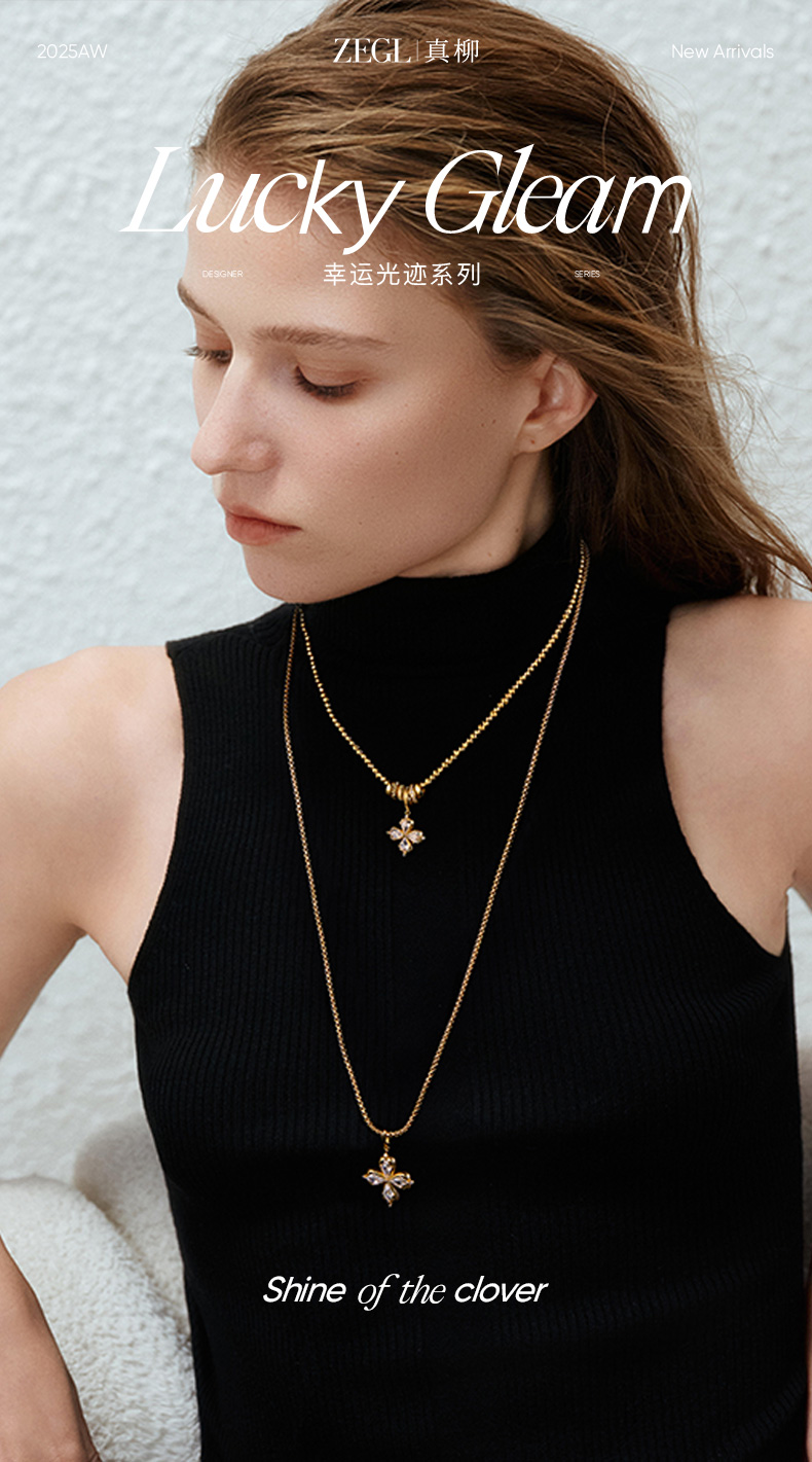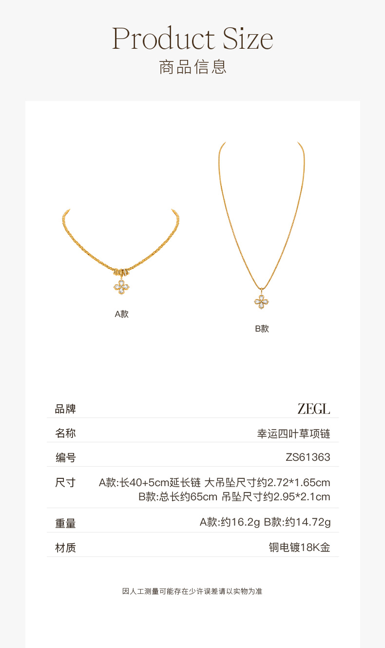 ZEGL幸运光迹系列金色幸运四叶草项链女轻奢高级感叠戴毛衣链秋冬