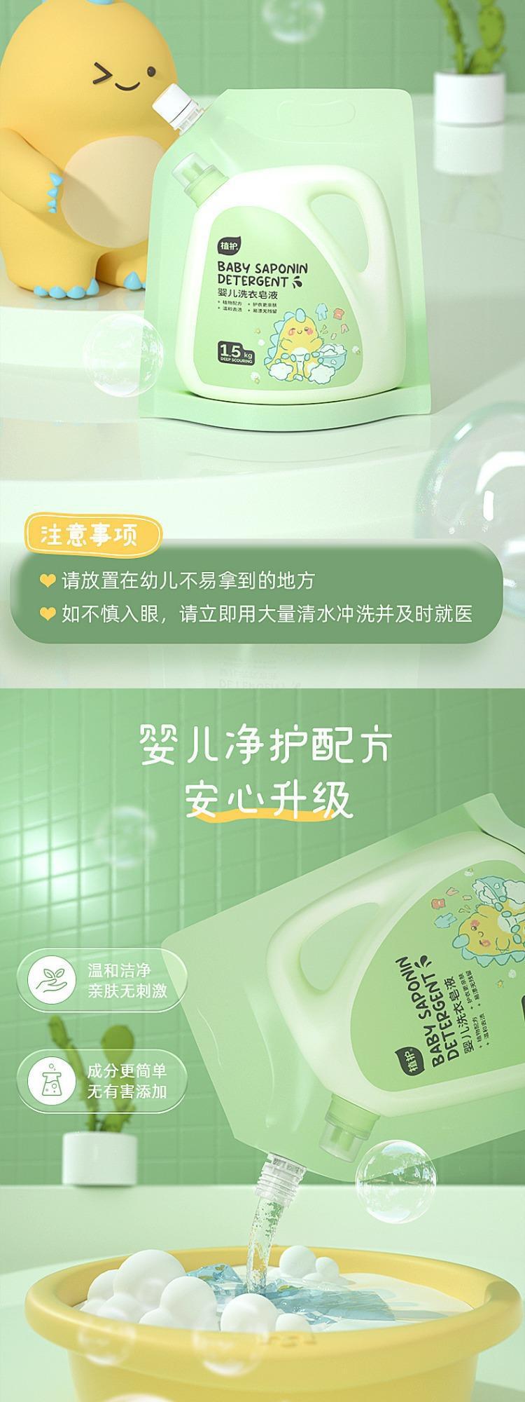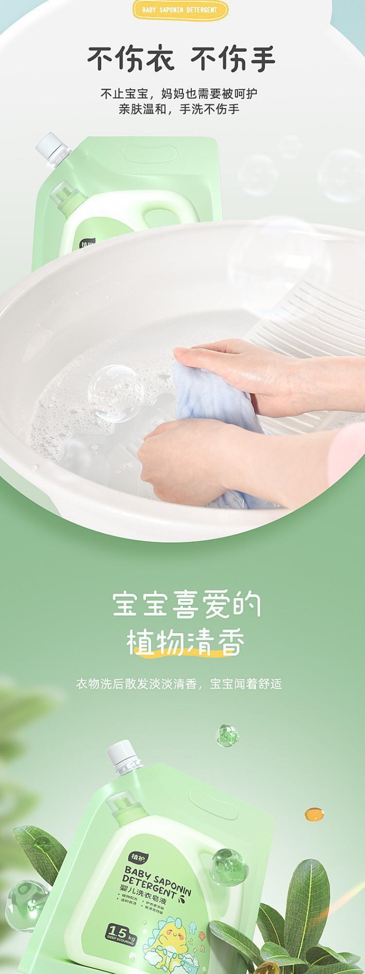 【4袋12斤¥35.9】植护婴儿洗衣液1.5kg*4袋儿童衣物清洗皂液宝宝洗衣皂液