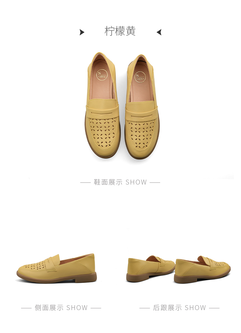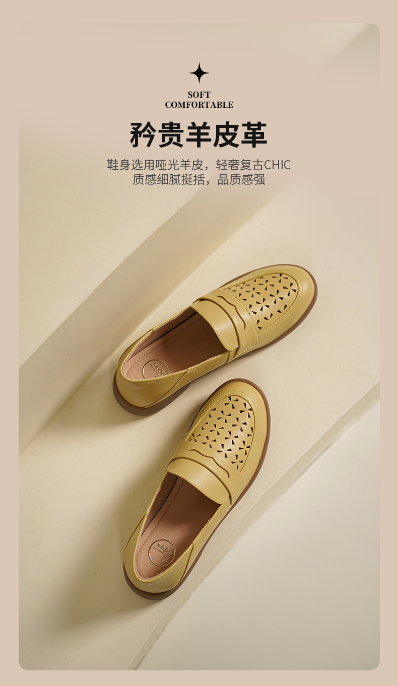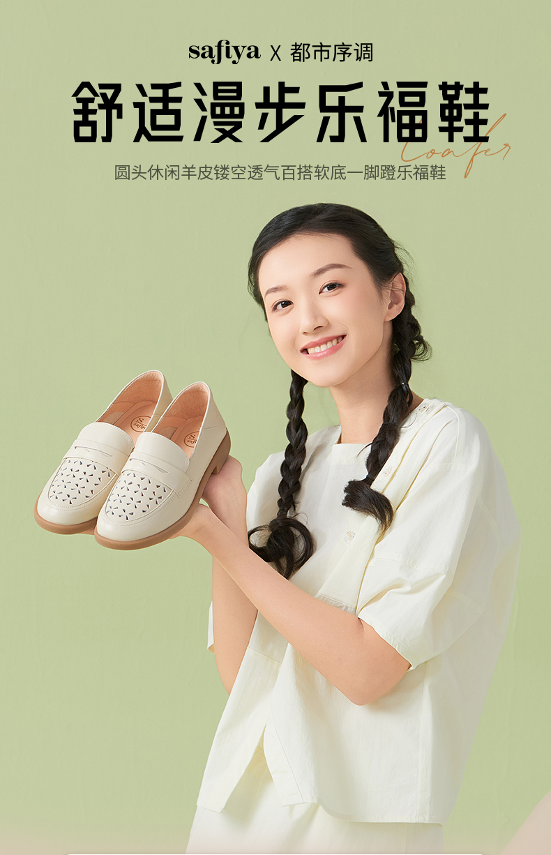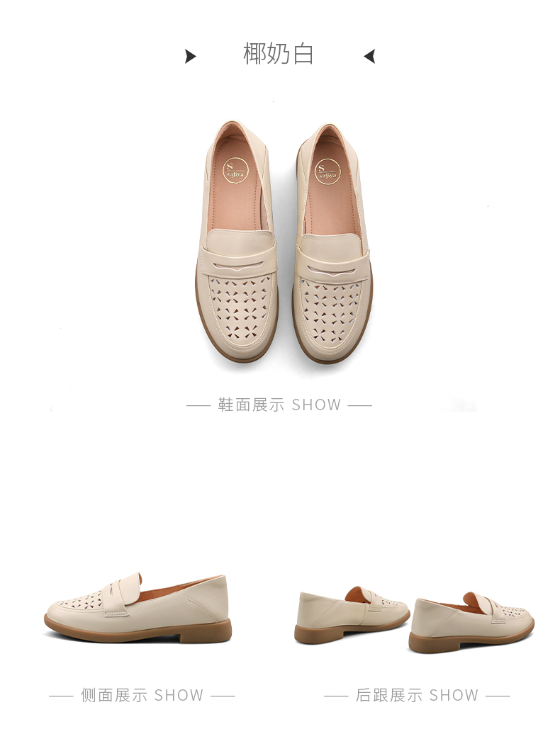 Safiya/索菲娅2025圆头休闲羊皮镂空透气百搭软底一脚蹬乐福鞋SFD1112141