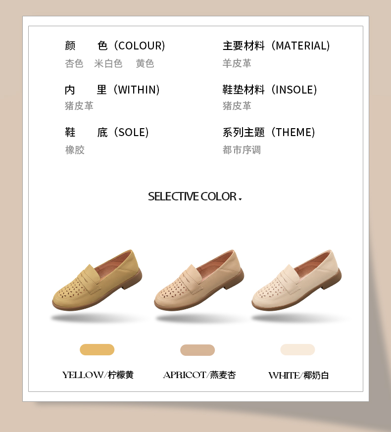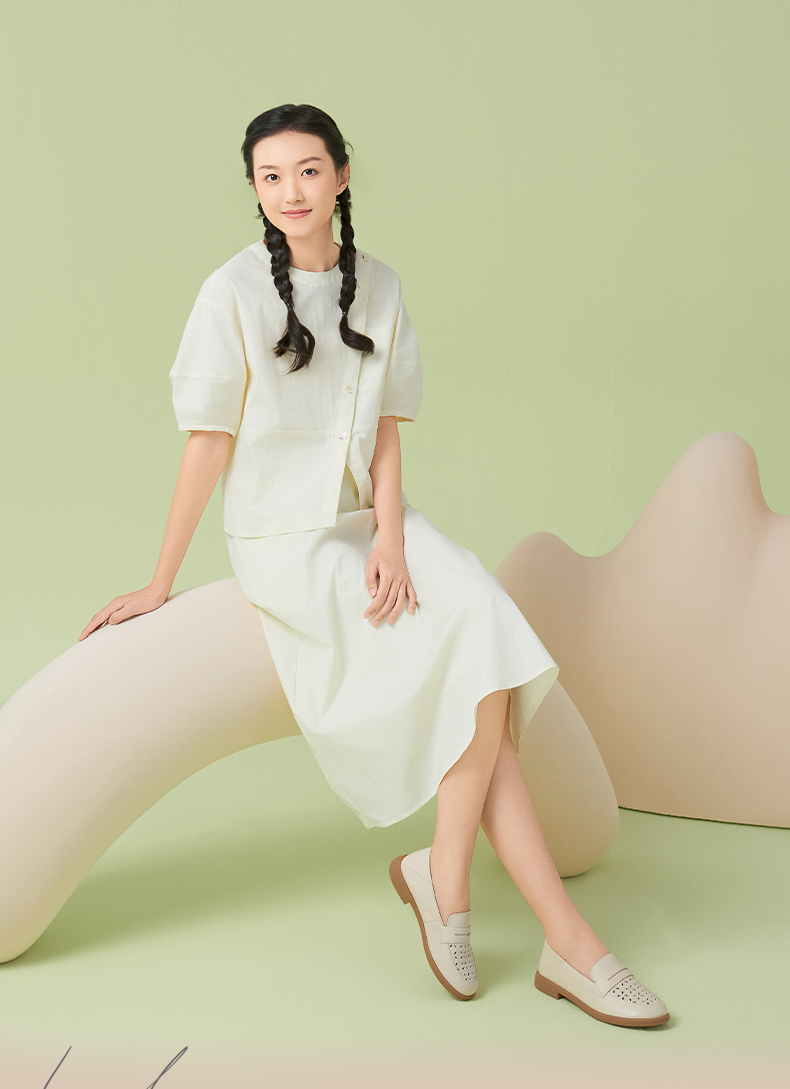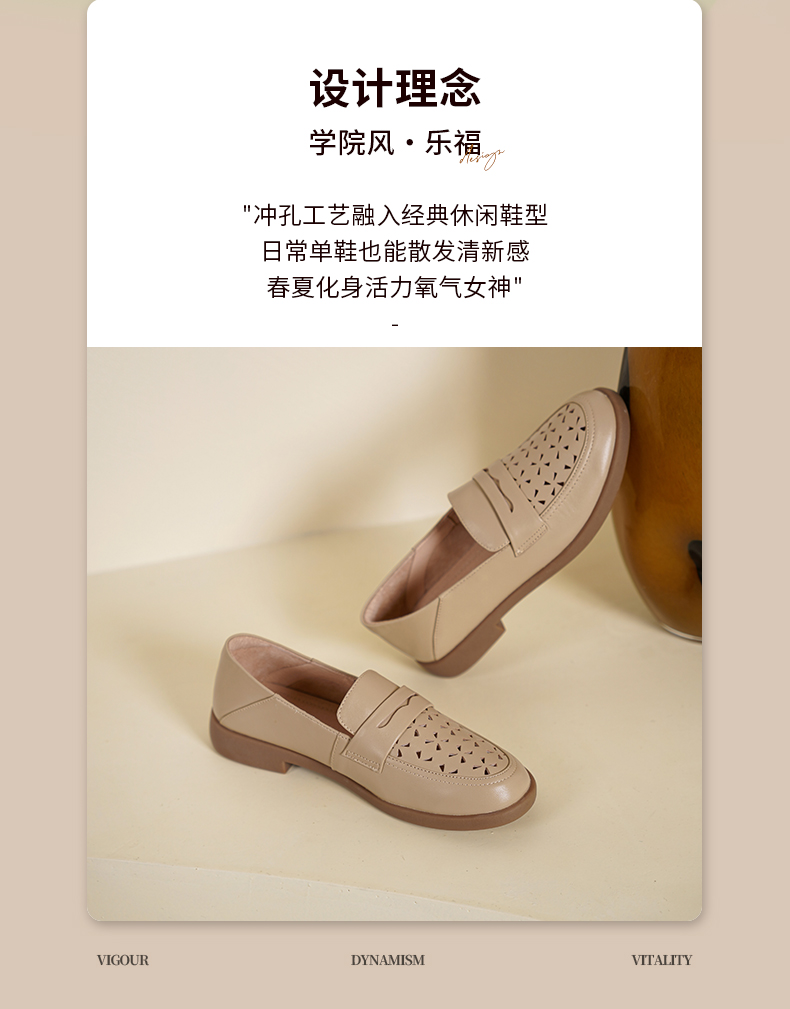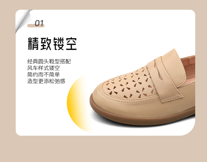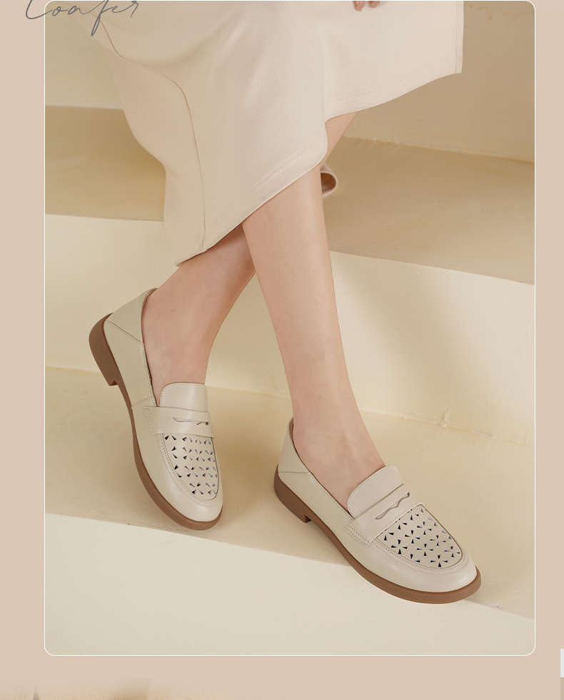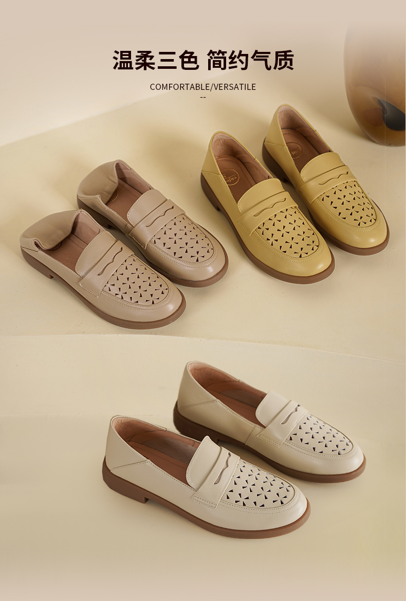 Safiya/索菲娅2025圆头休闲羊皮镂空透气百搭软底一脚蹬乐福鞋SFD1112141