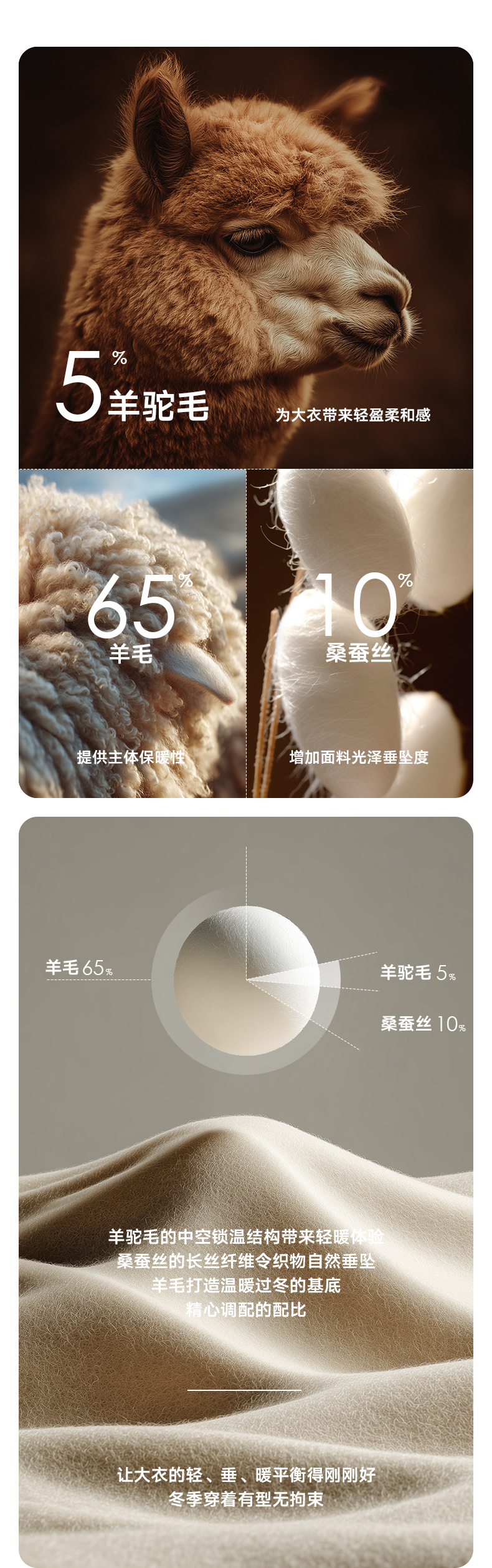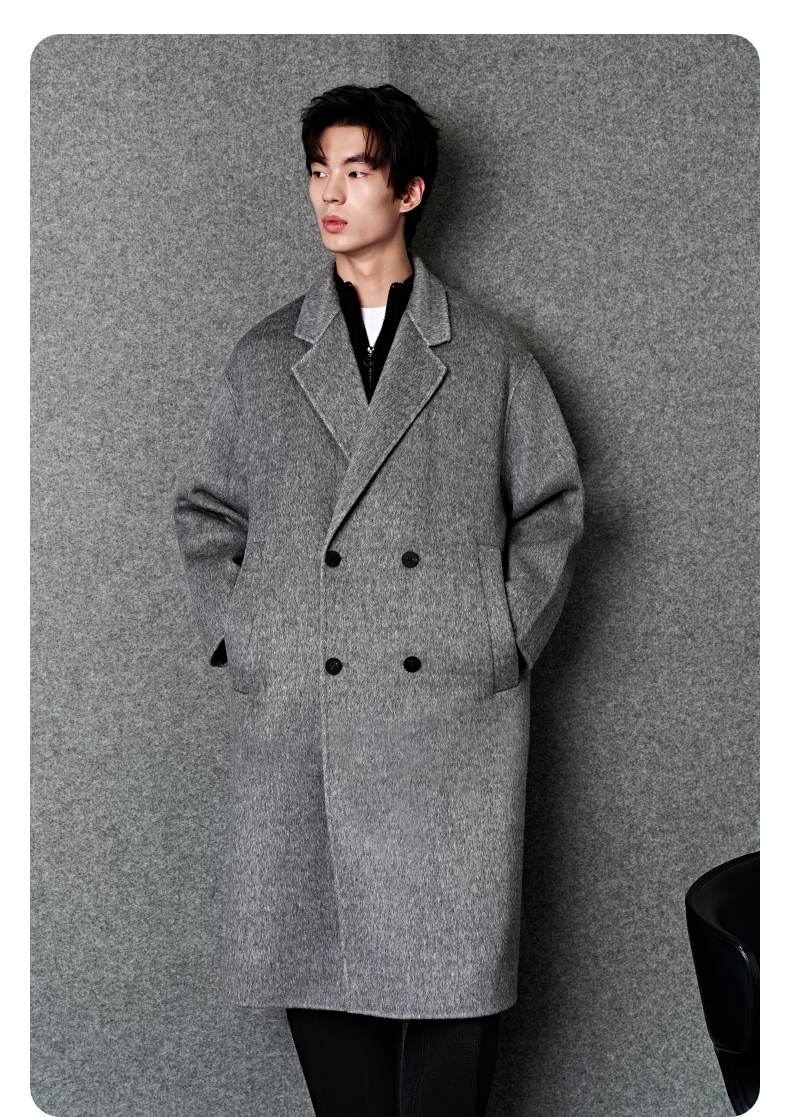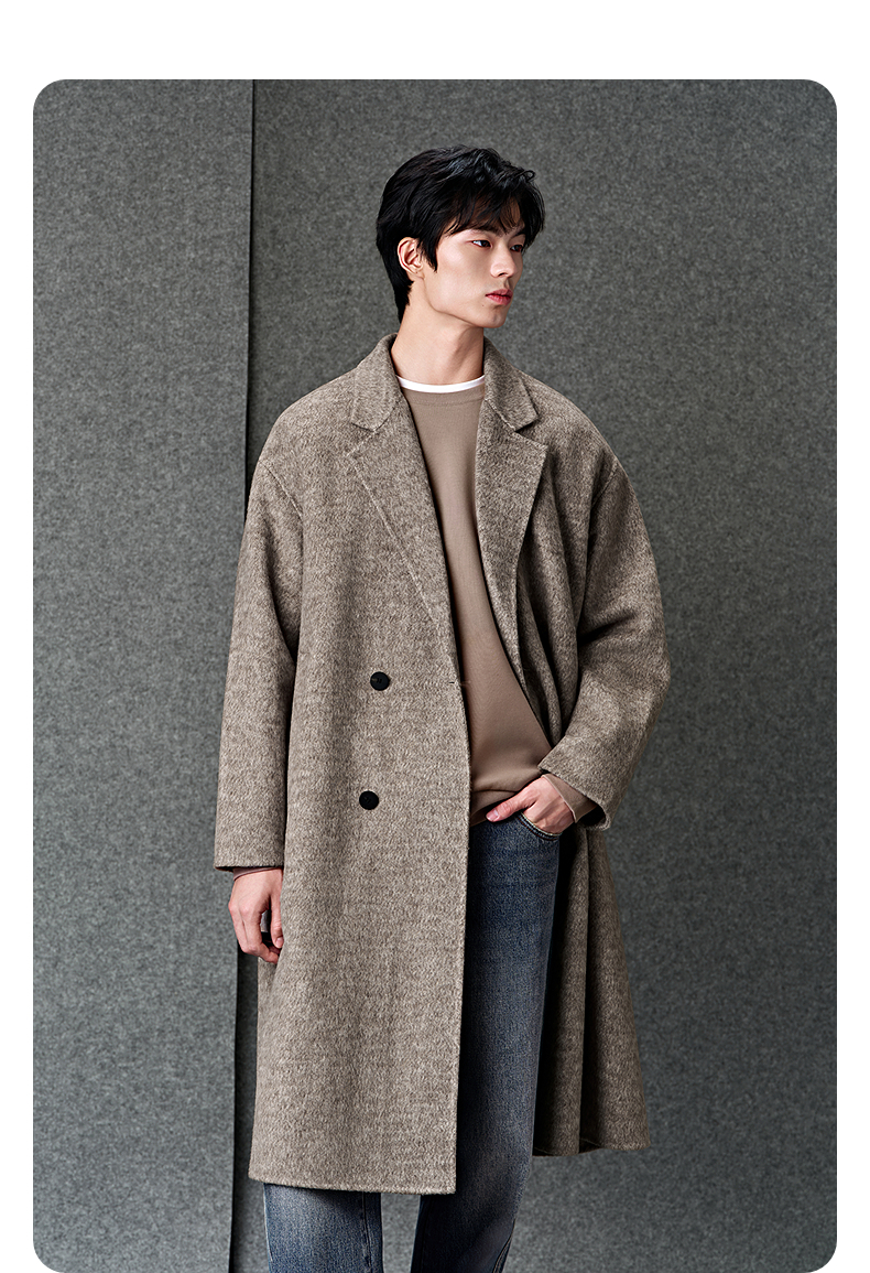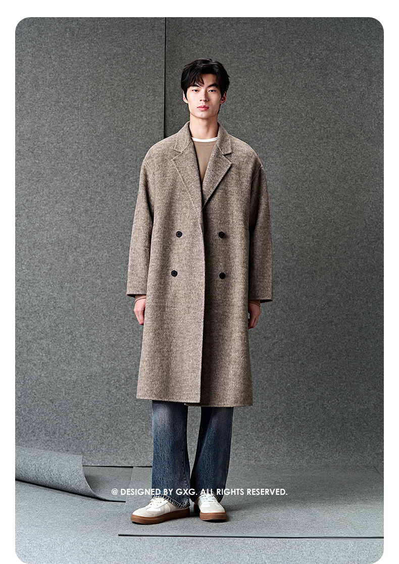 GXG男装 经典H型羊驼毛桑蚕丝毛感中长款大衣外套 25年冬季热卖