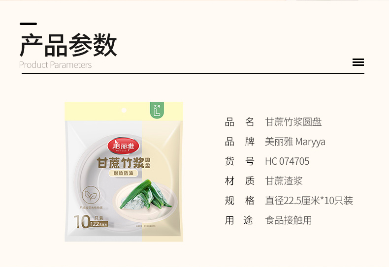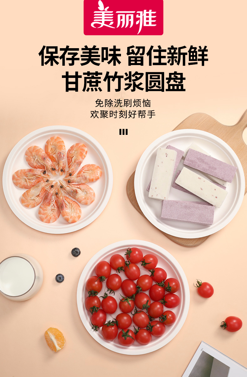 【批发】美丽雅甘蔗竹桨圆盘22.5厘米/10个入