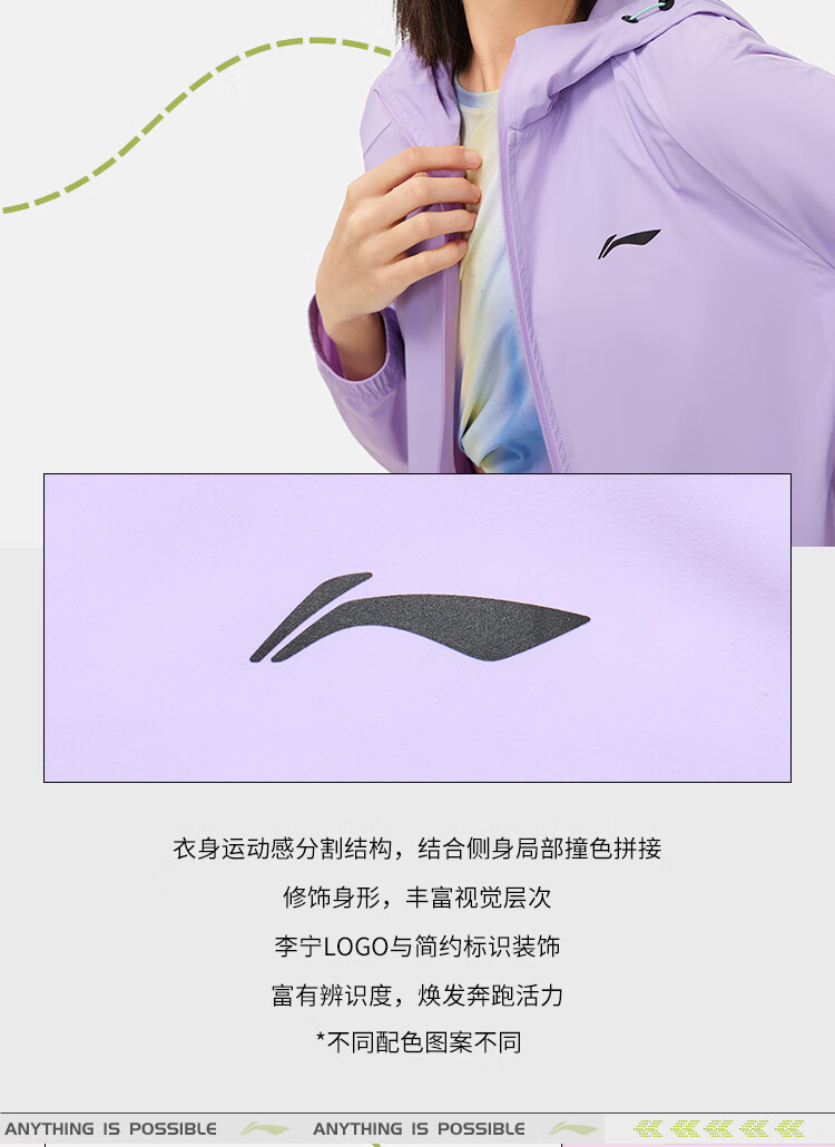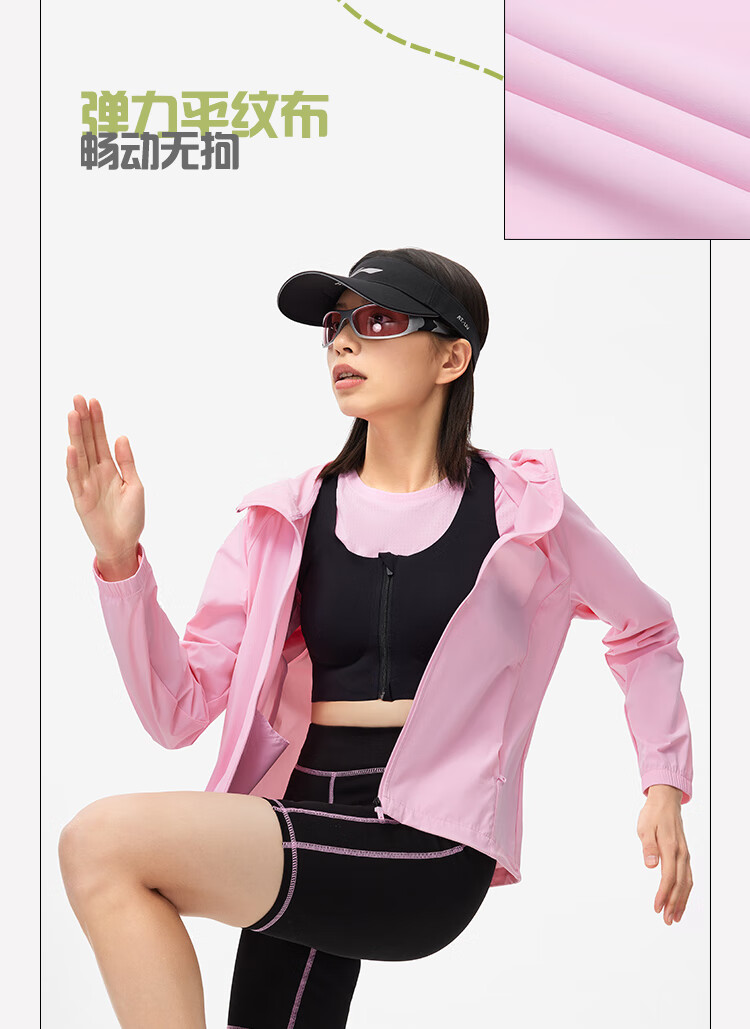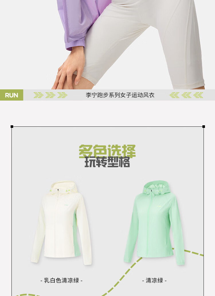 李宁防晒风衣外套女子2024春秋撞色开衫运动连帽上衣AFDU164