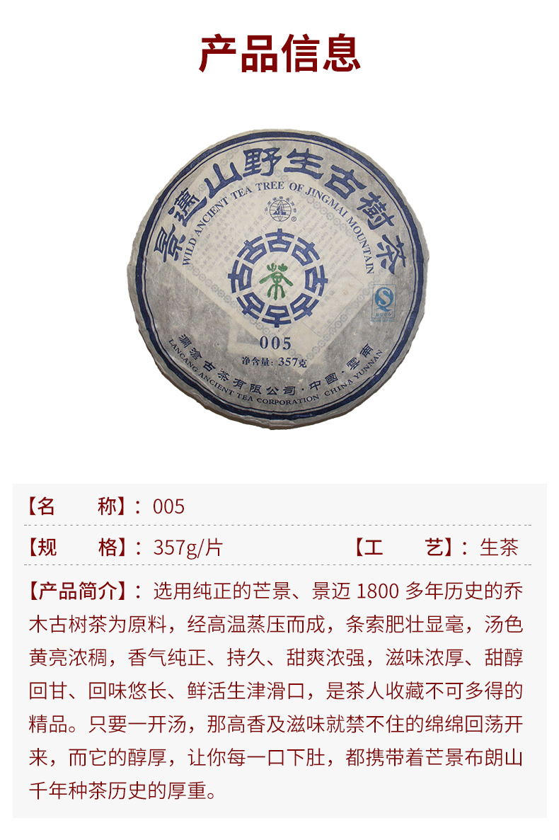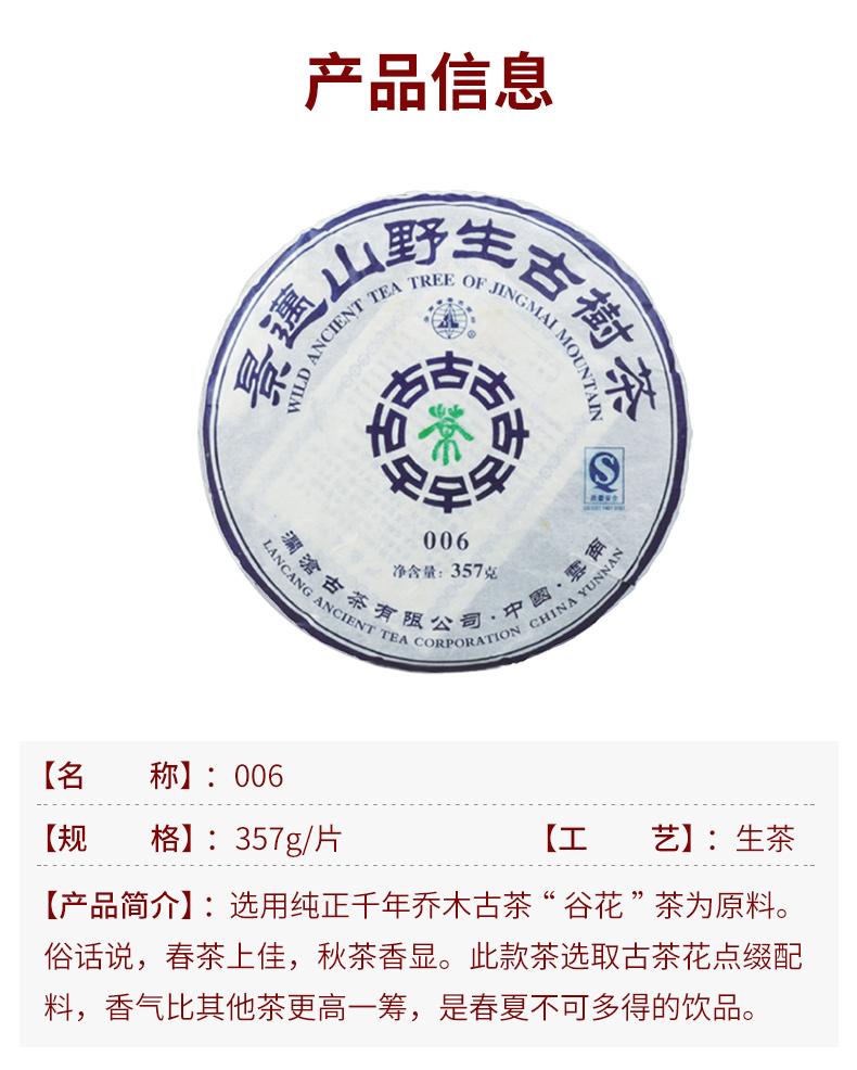 【开仓专享】澜沧古茶2006年006大饼357g+06年005大饼357g普洱茶生茶礼包