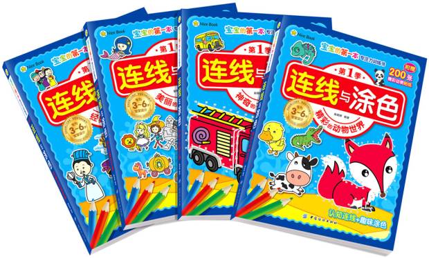 新品大开本连线与涂色.全4册儿童画画书宝宝涂色本2-3-6岁画册绘画书图画本涂鸦填色书简笔画小红花手工书益智小手工