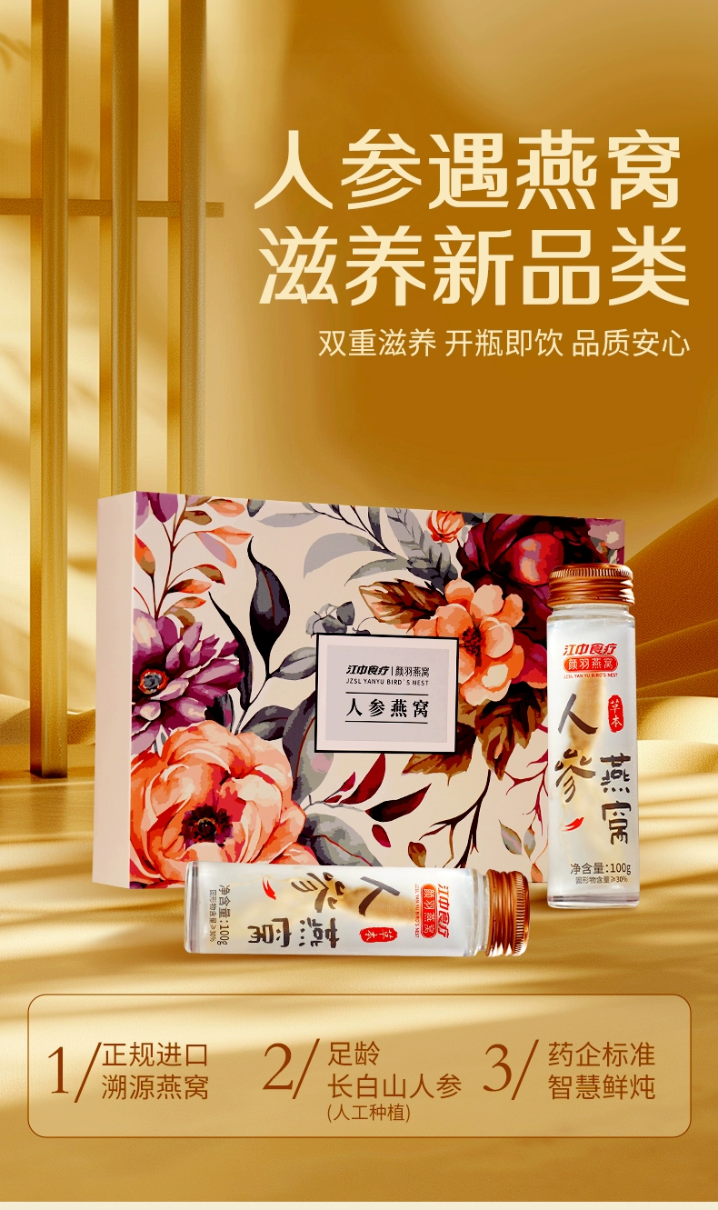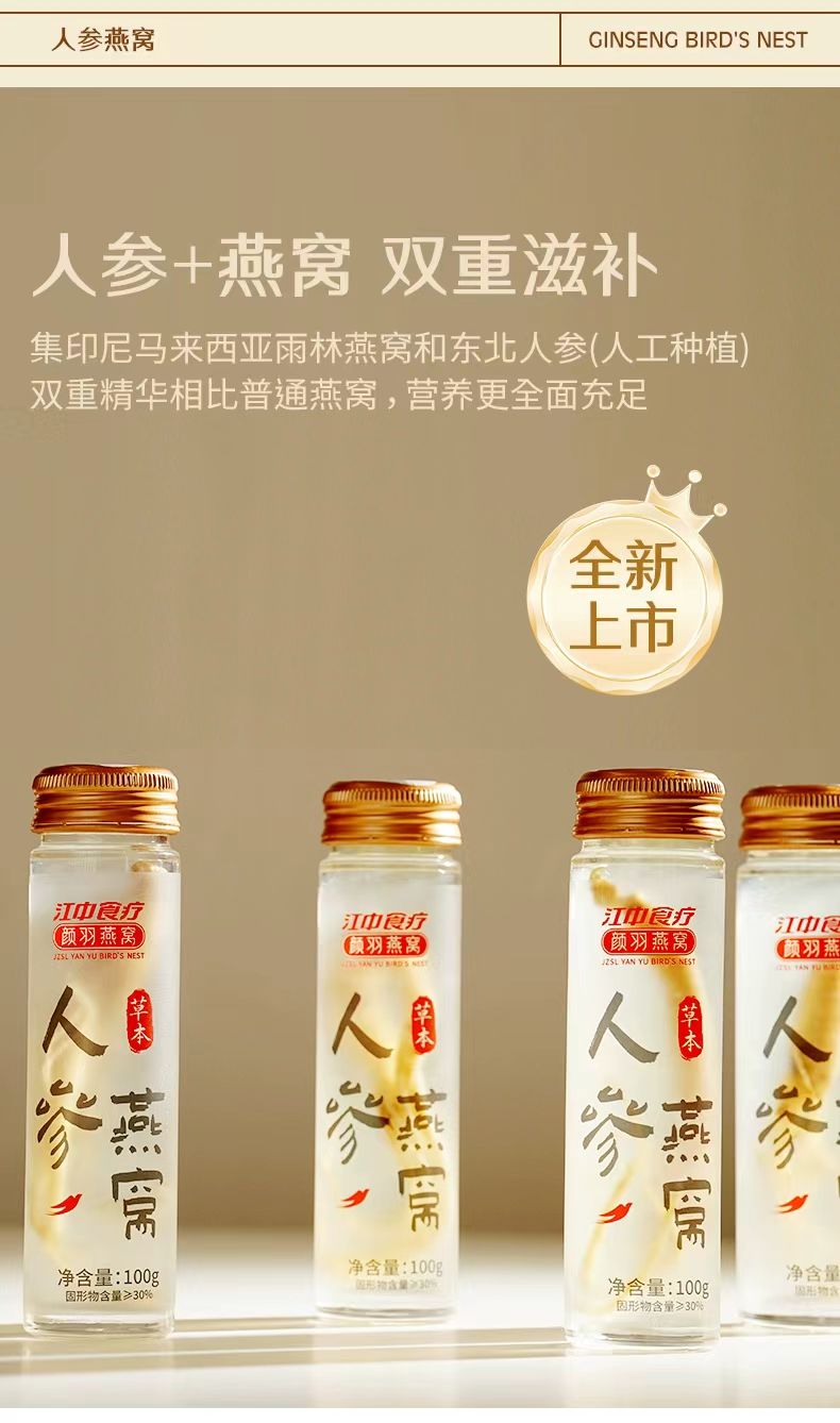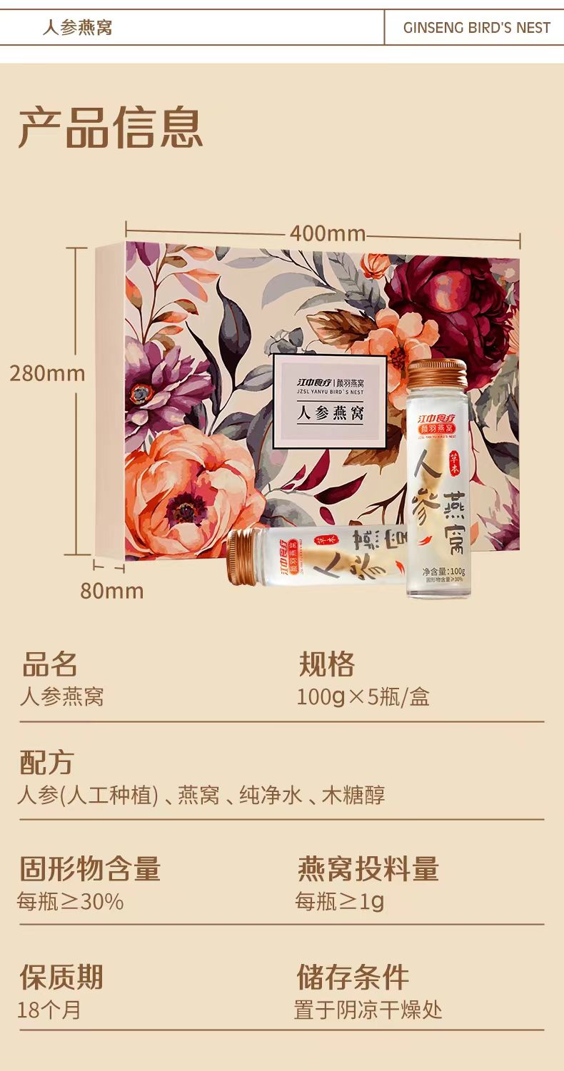 太原现货【江中食疗颜羽*即食人参鲜炖燕窝】100g*5瓶