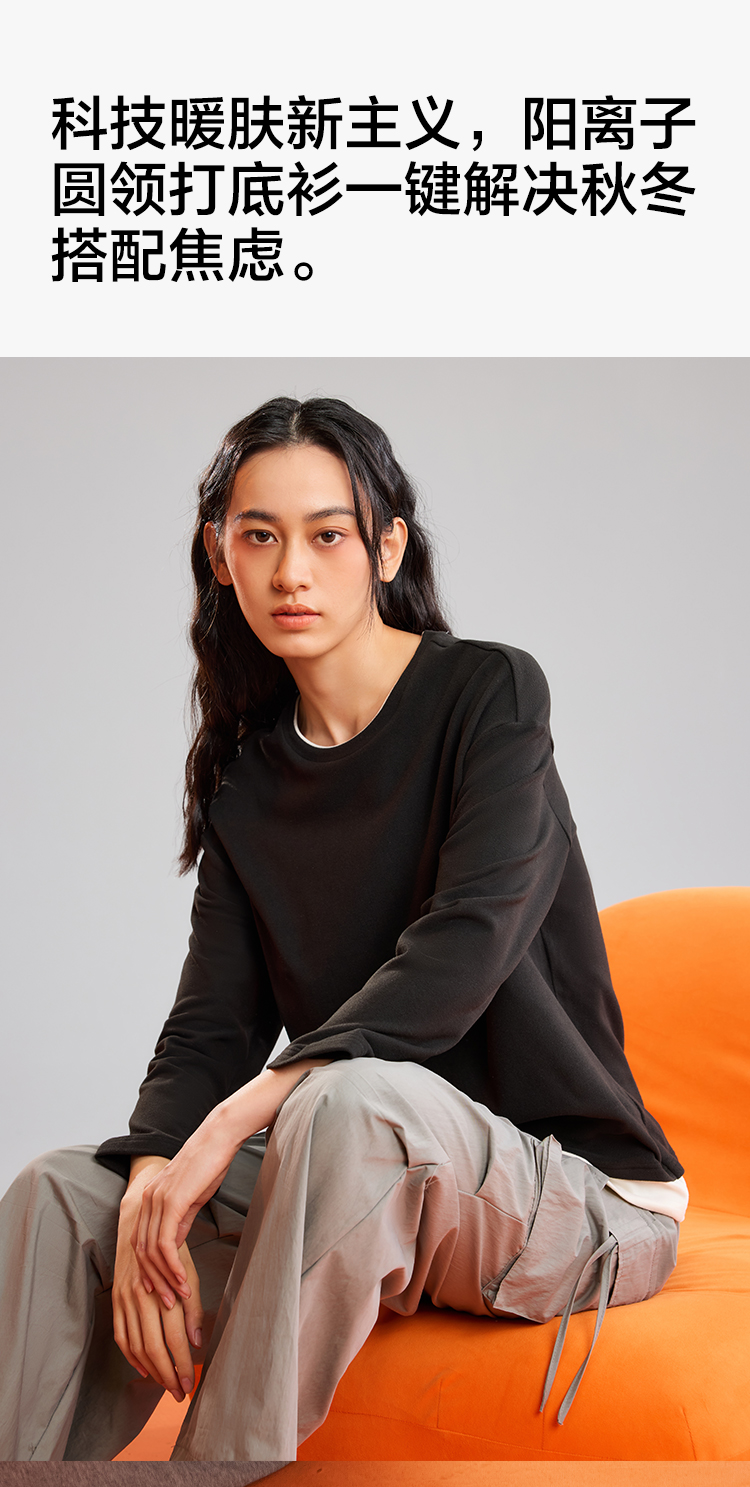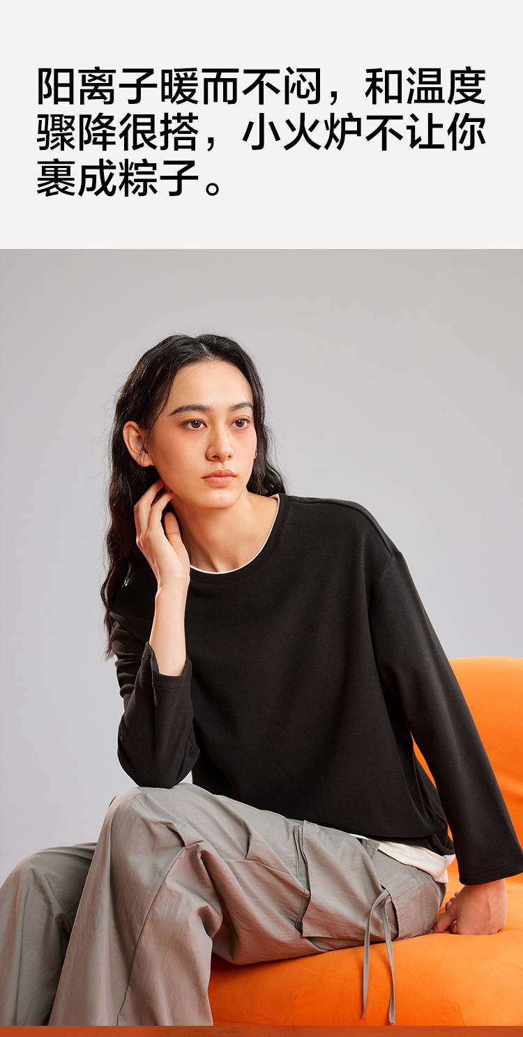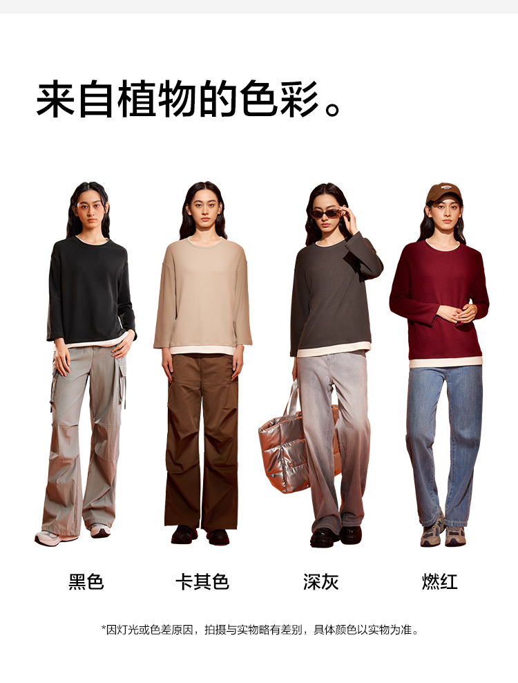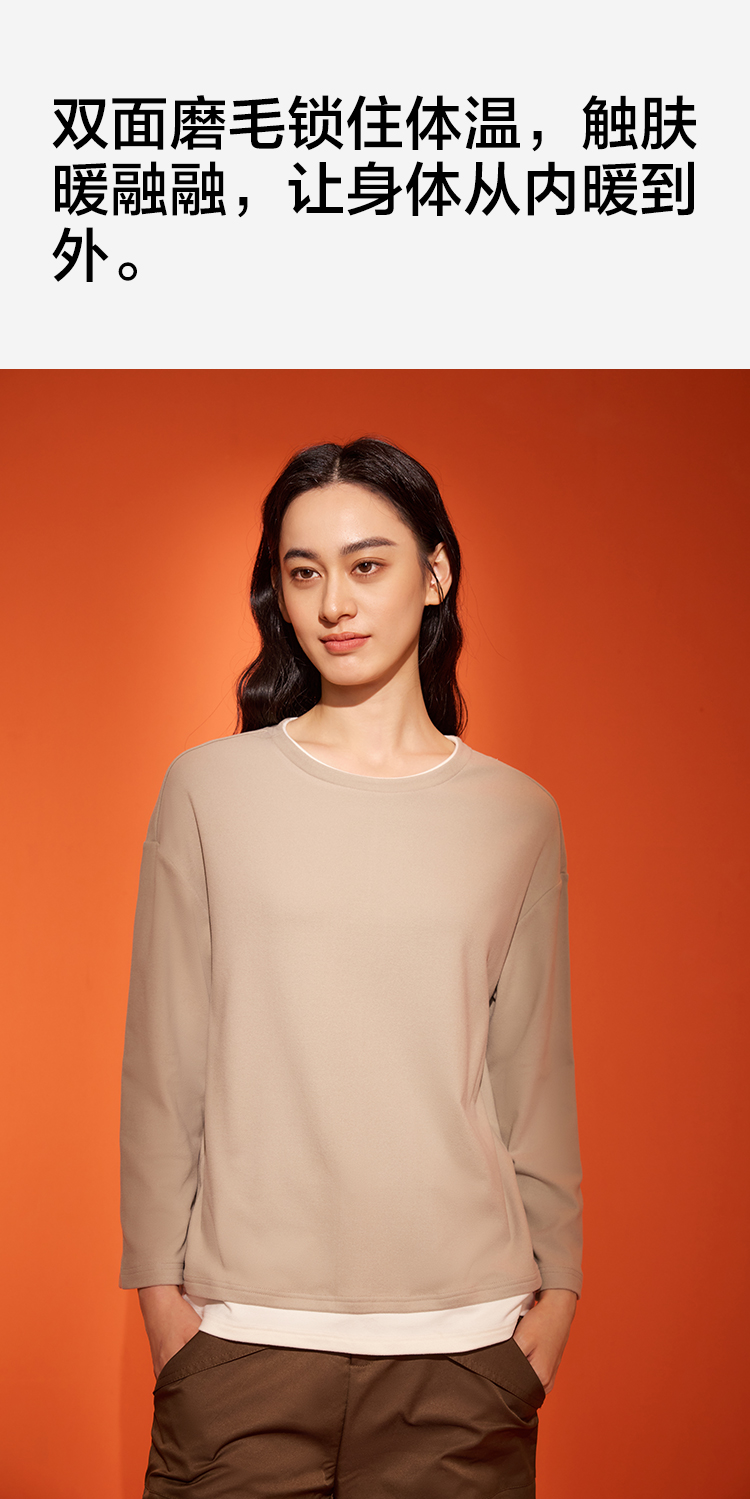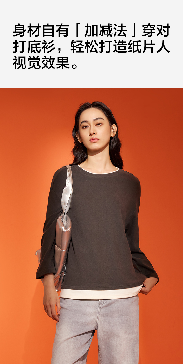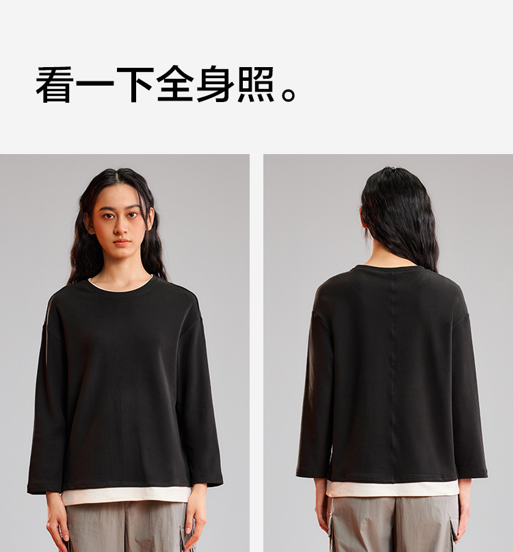 【阳离子磨毛】【M-2XL】【有棵树】女士保暖打底衫圆领假两件T恤