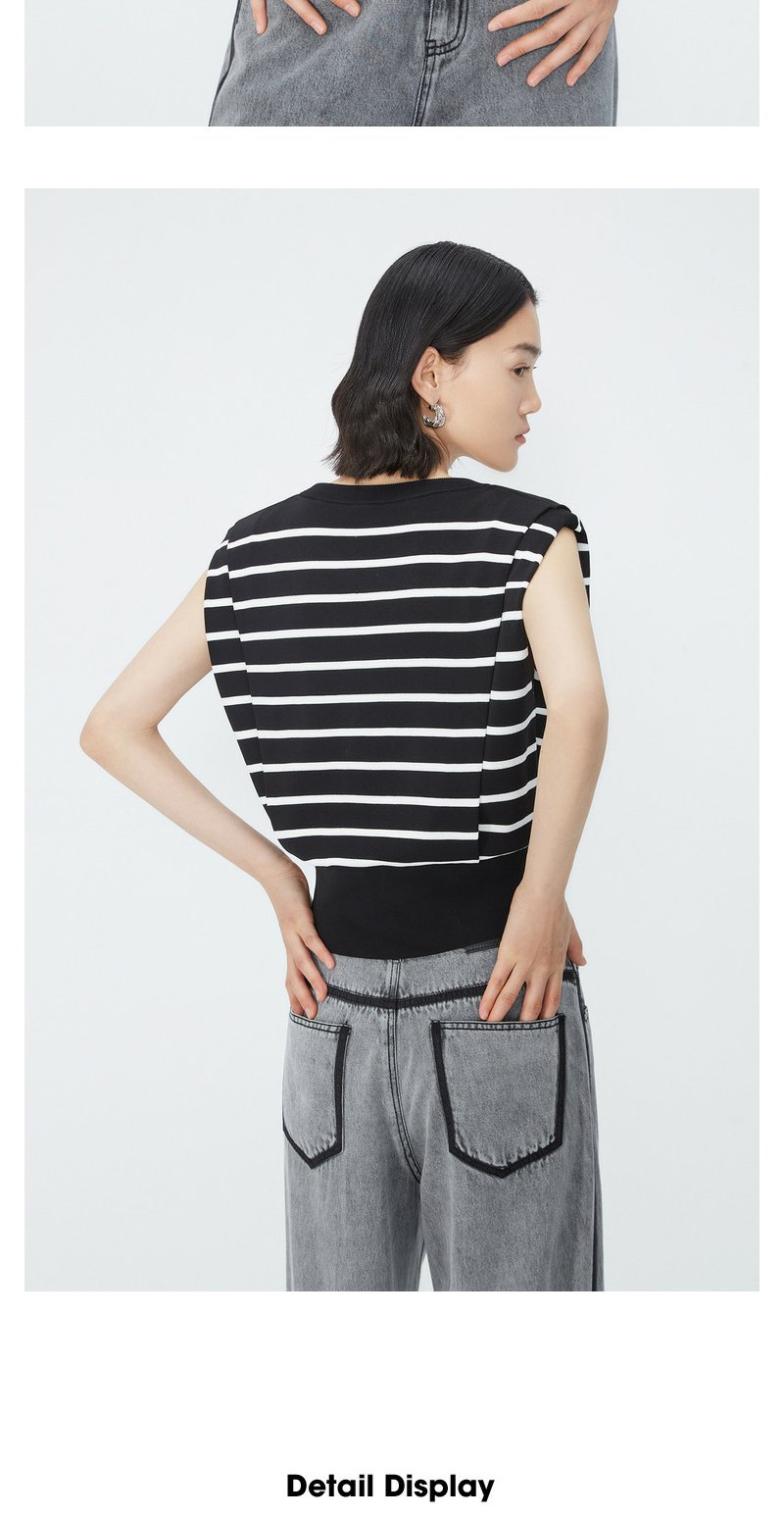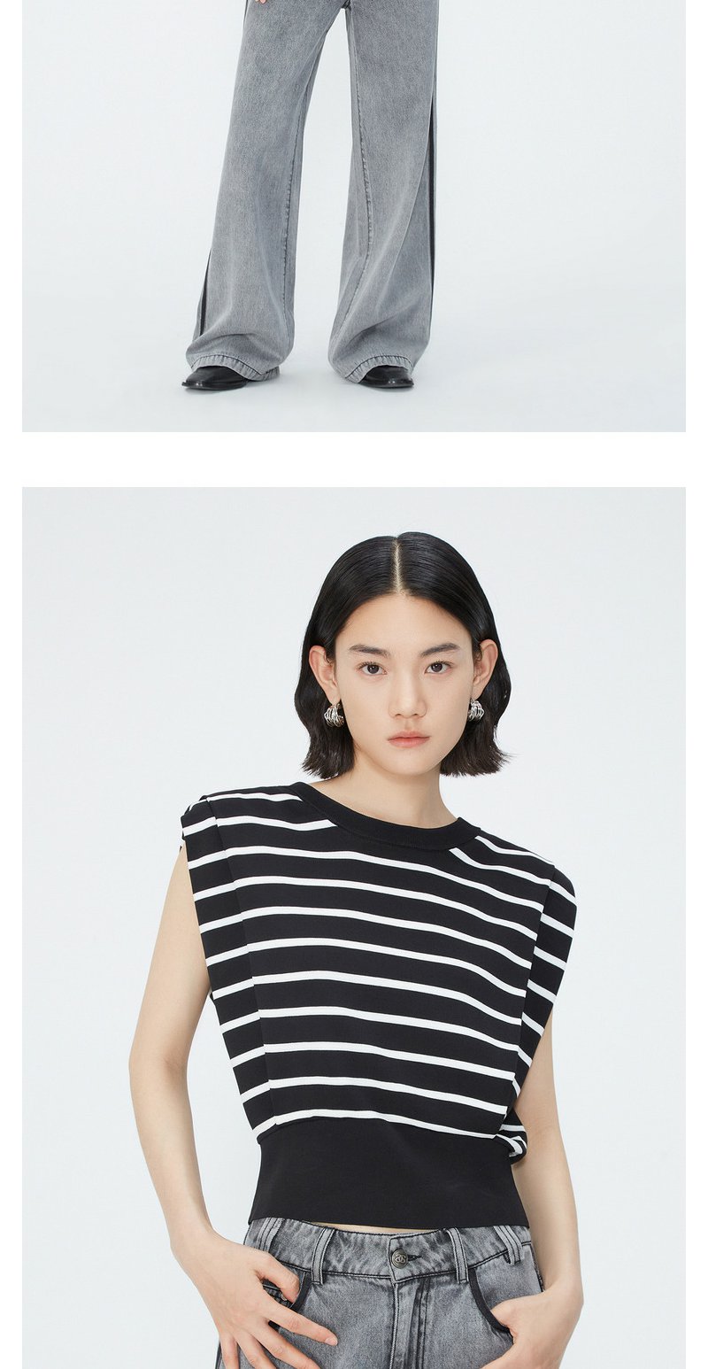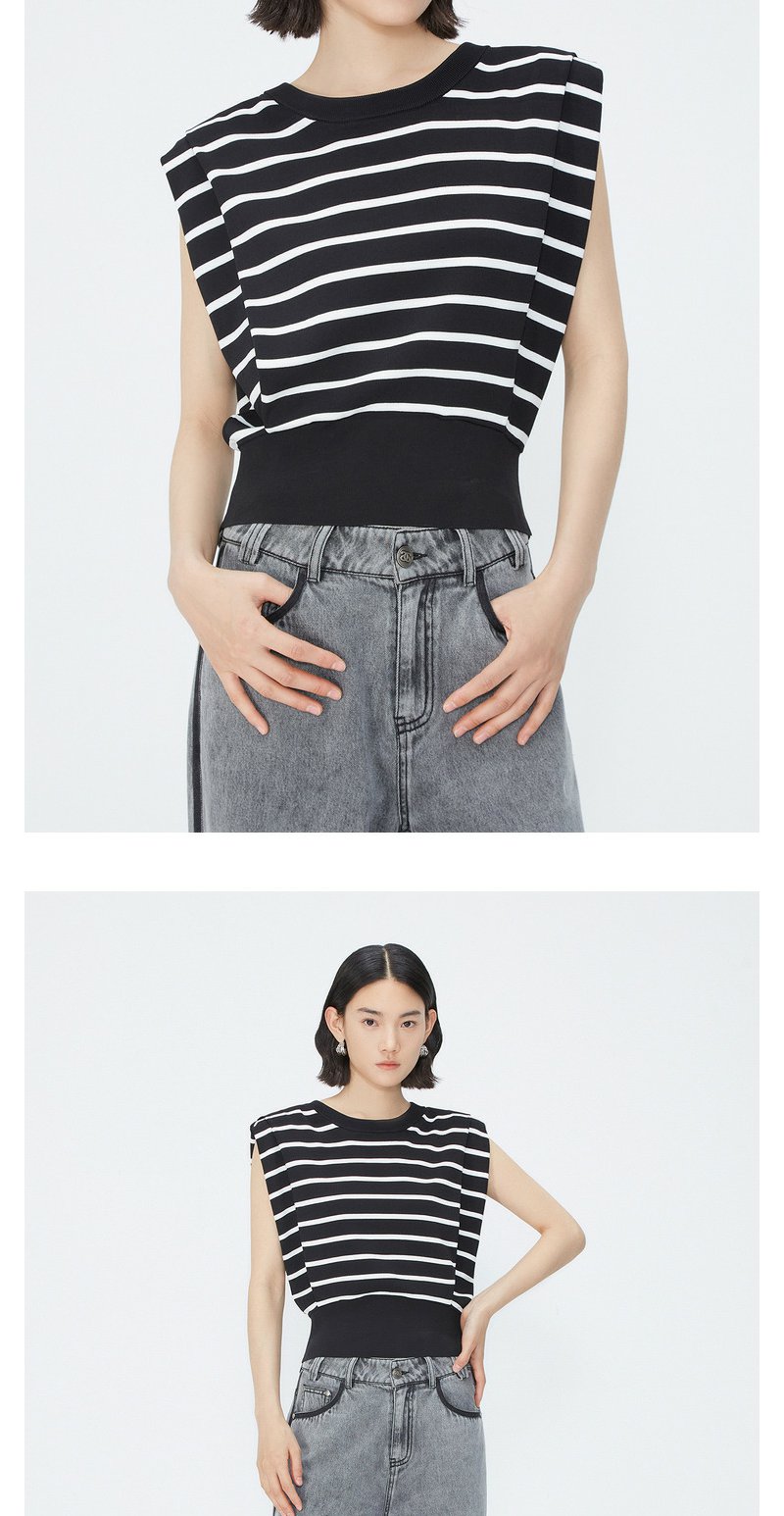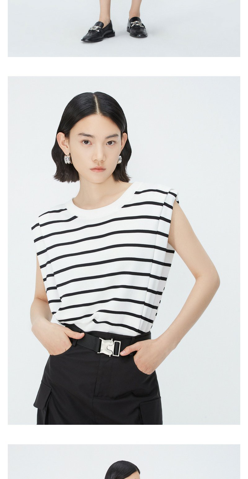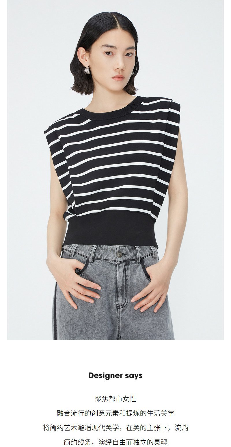 NEELLY纳俪商场同款夏季新款套头直筒条纹坎肩上衣女圆领宽肩上衣N25044A14405