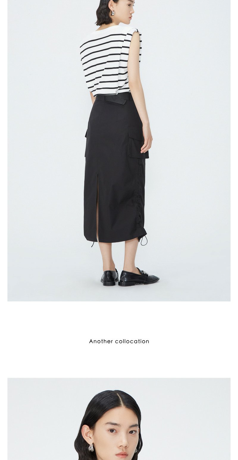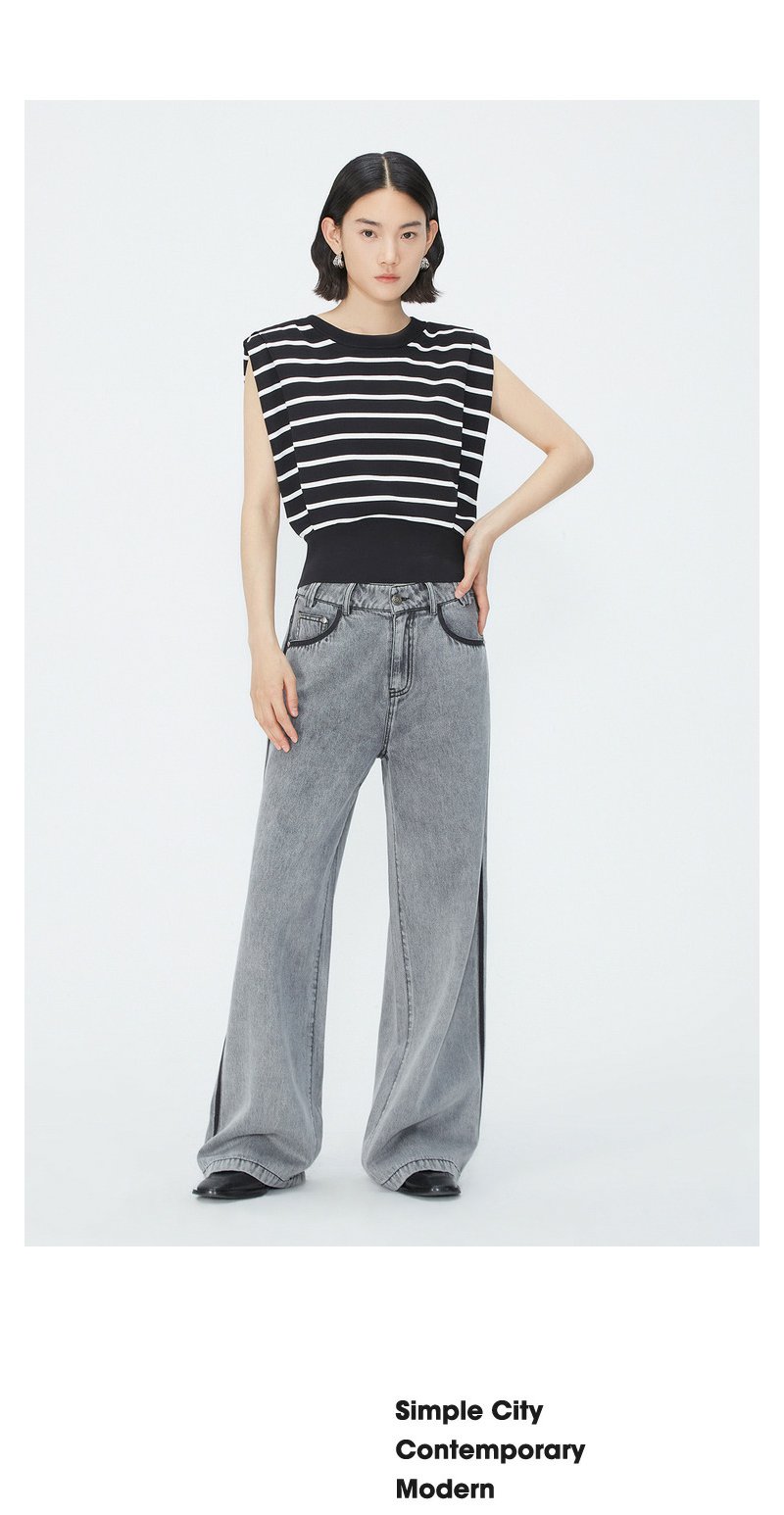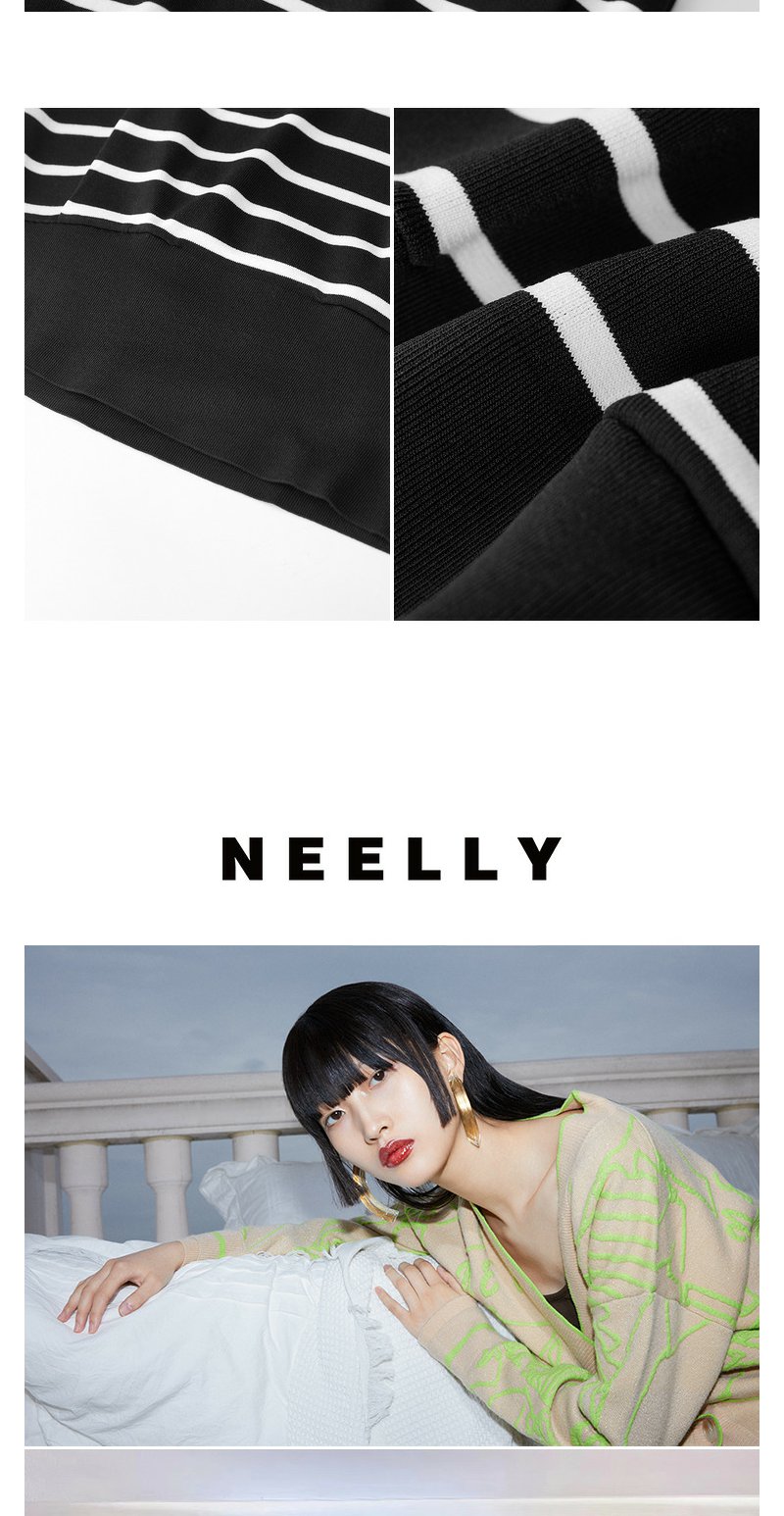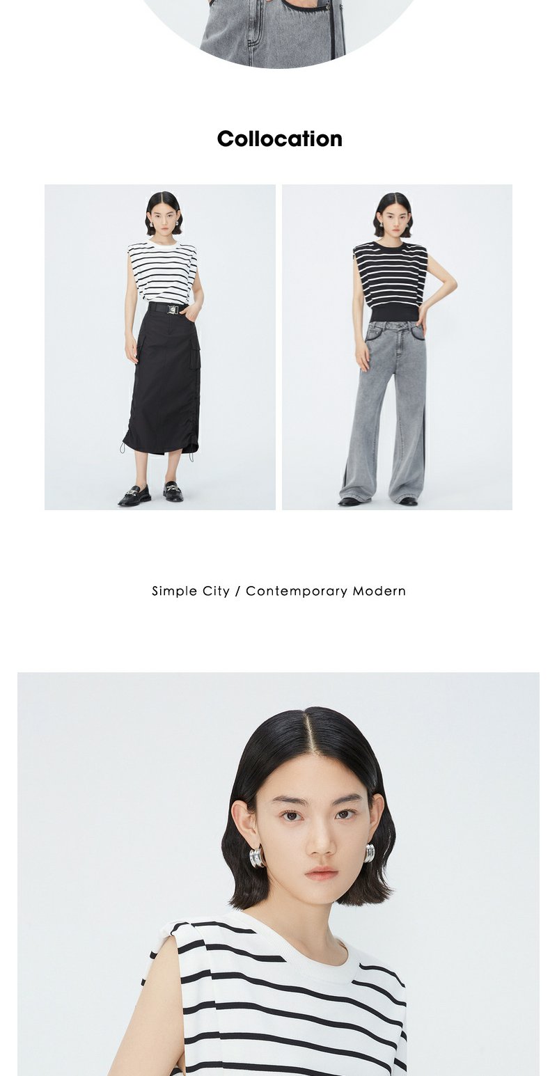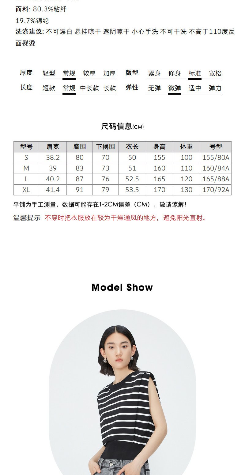 NEELLY纳俪商场同款夏季新款套头直筒条纹坎肩上衣女圆领宽肩上衣N25044A14405