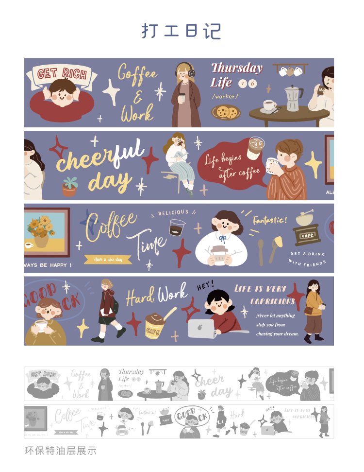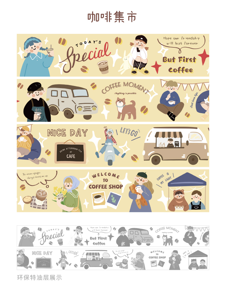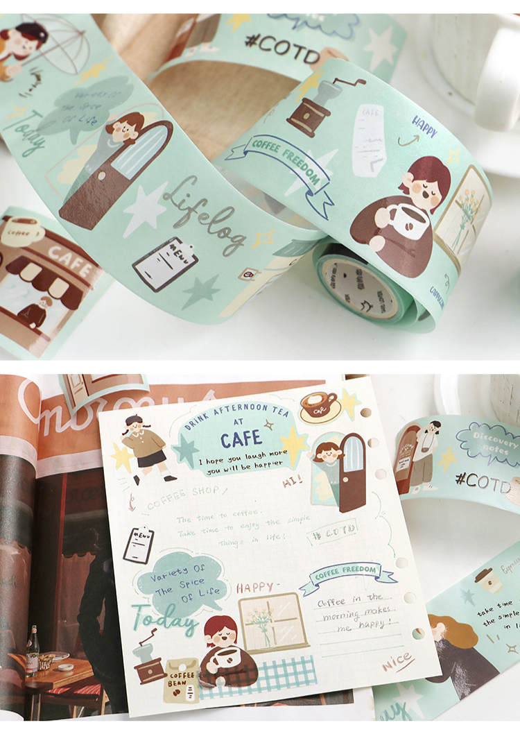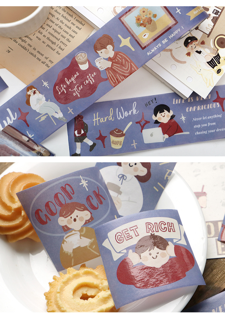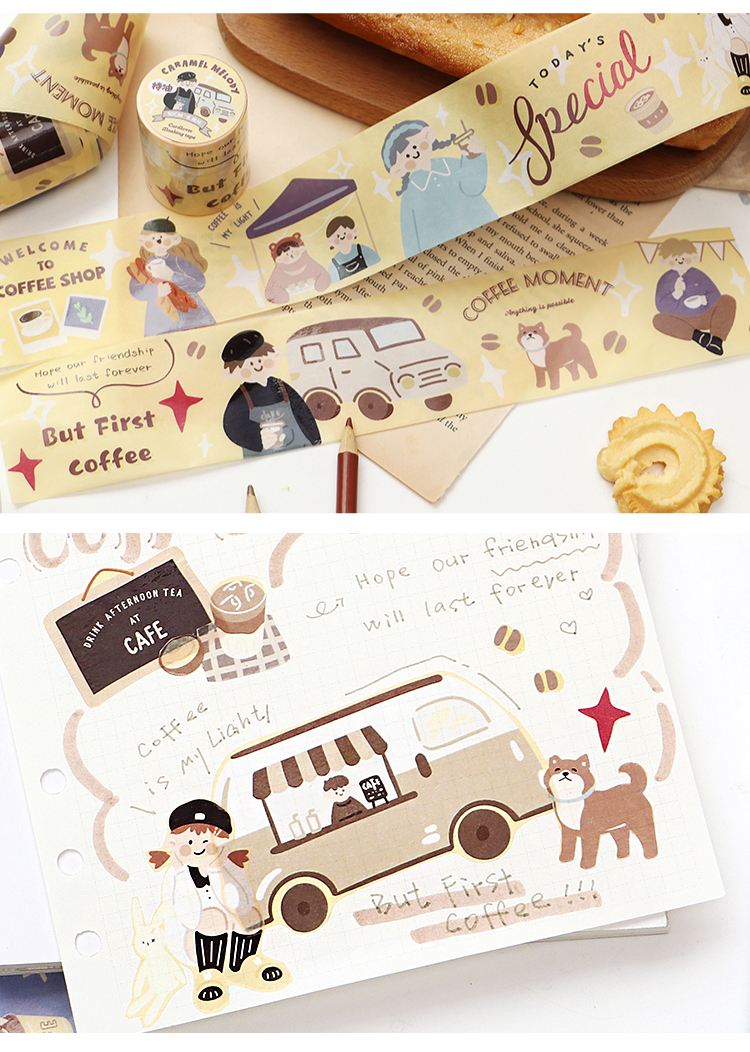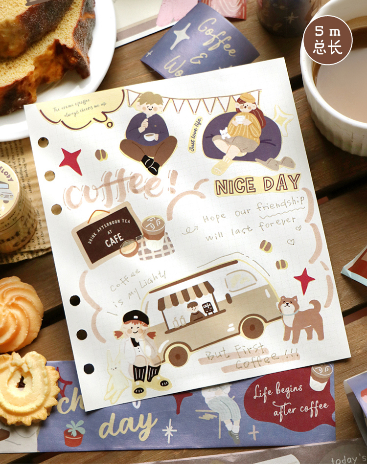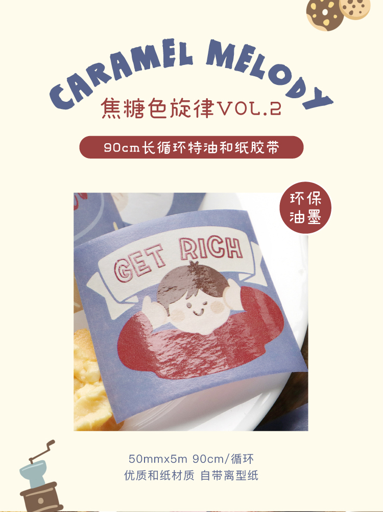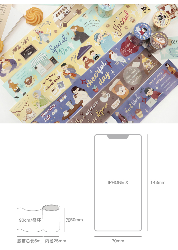 信的恋人 0.9m循环特油和纸胶带《焦糖色旋律》50mm x 5mins风手账复古可爱人物主题DIY手帐拼贴装饰素材