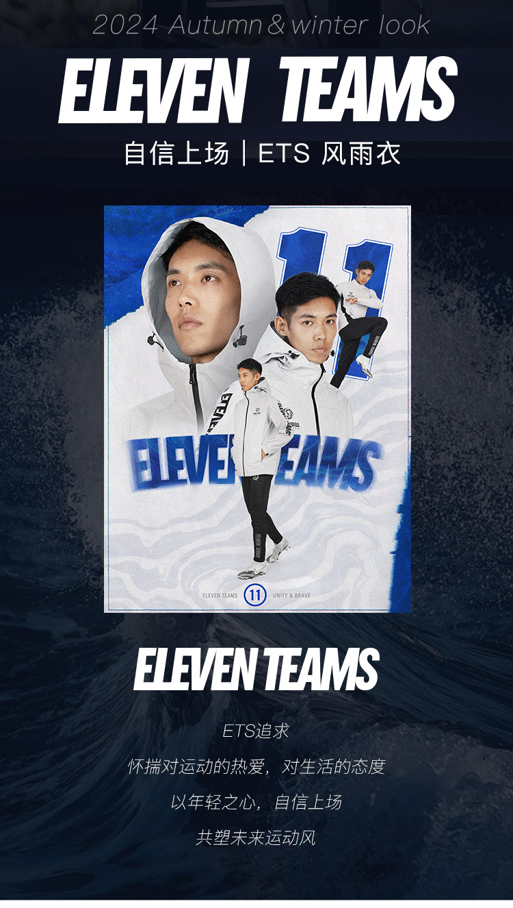小李子Eleventeams三防面料足球训练长袖连帽运动服风雨衣