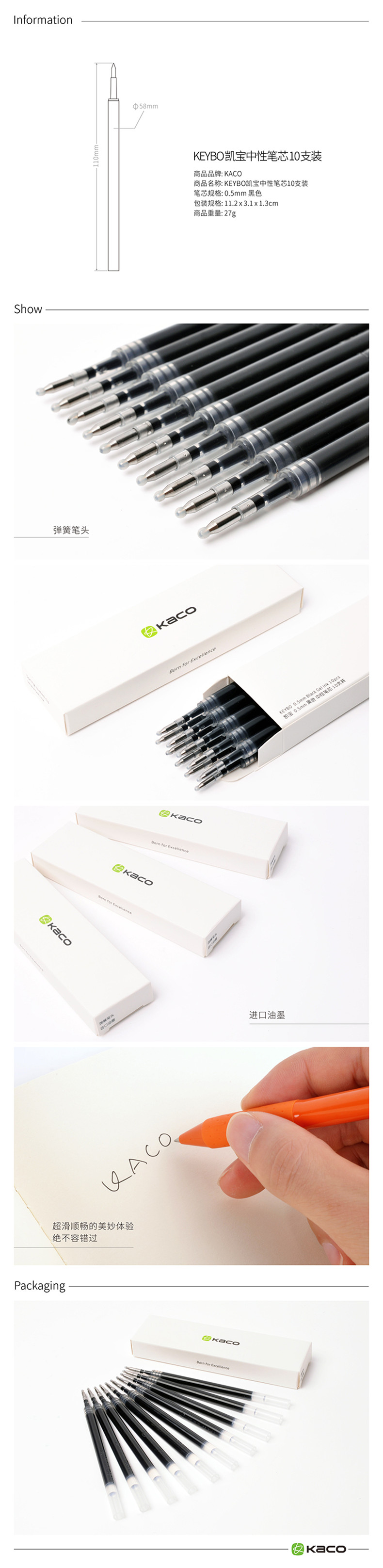 文采亚规0.5中性笔透明笔芯管10支彩盒装办公学生考试学习用品替芯