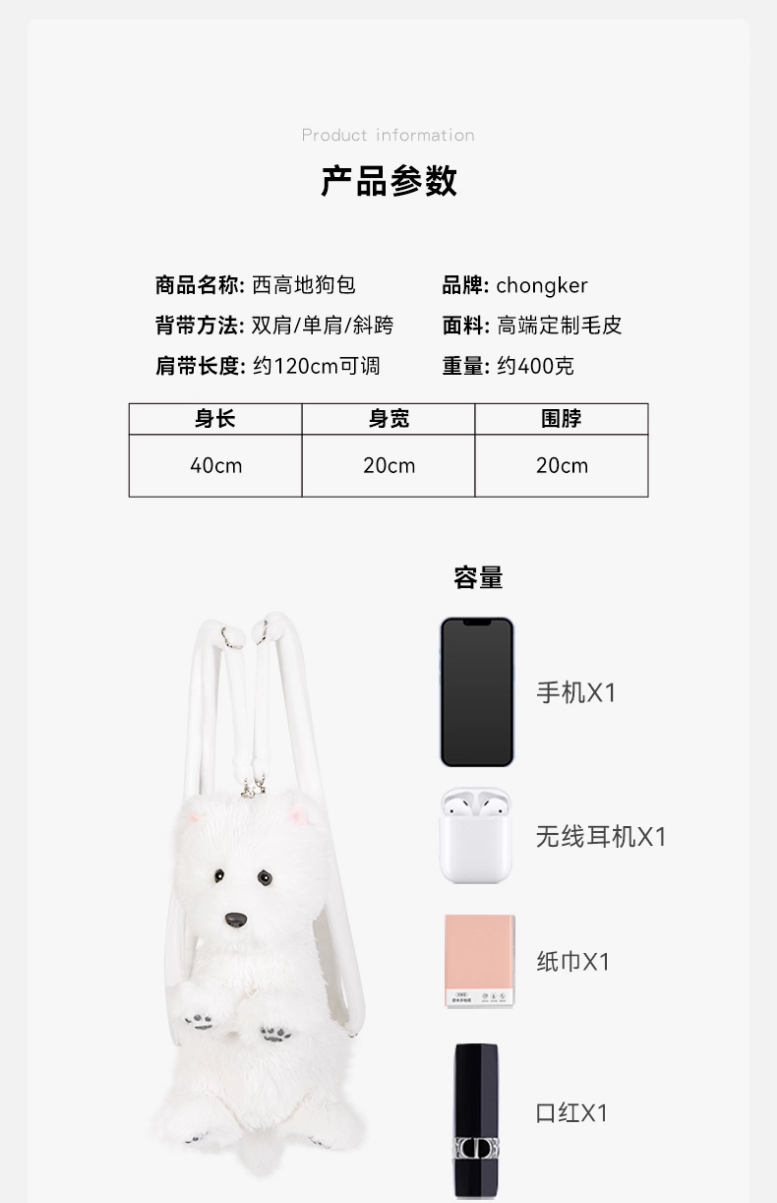Chongker/宠客 西高地背包 标准款
