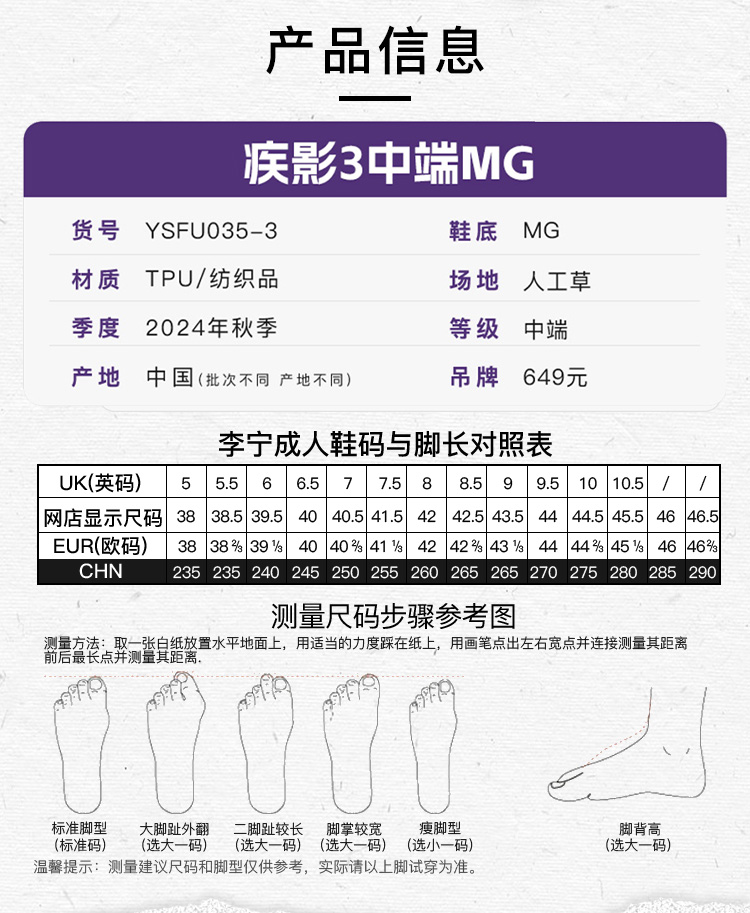 小李子Lining李宁疾影入门级TF碎钉足球鞋成人男YSTU061-4