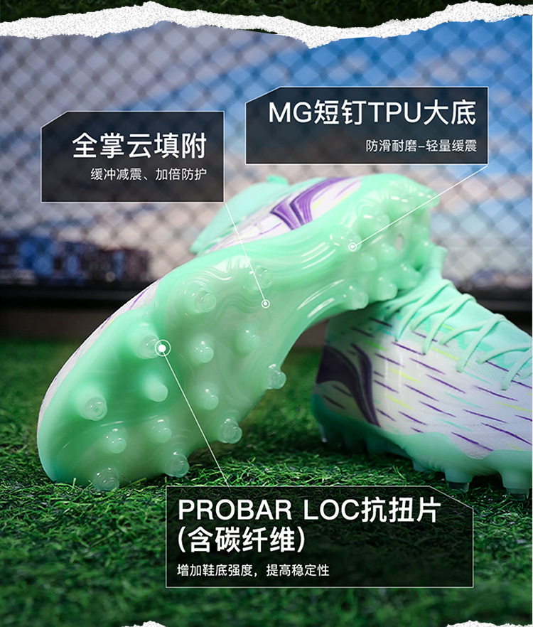 小李子正品Lining李宁疾影中端MG短钉人草足球鞋成人男YSFU035-3
