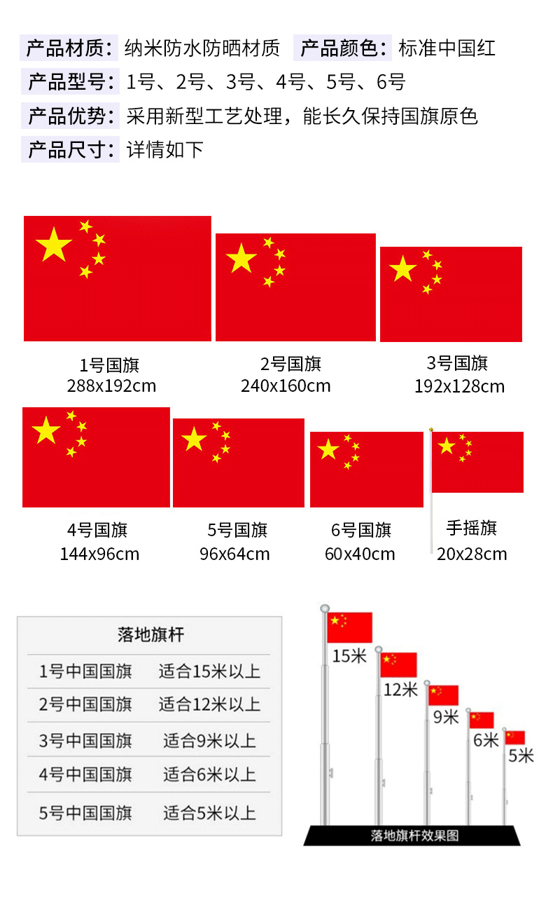 河北防水国旗1号2号3号4号5号6号纳米防水中国国旗纳米防水党旗团旗五星红旗大红旗旗帜广告旗班旗公司旗