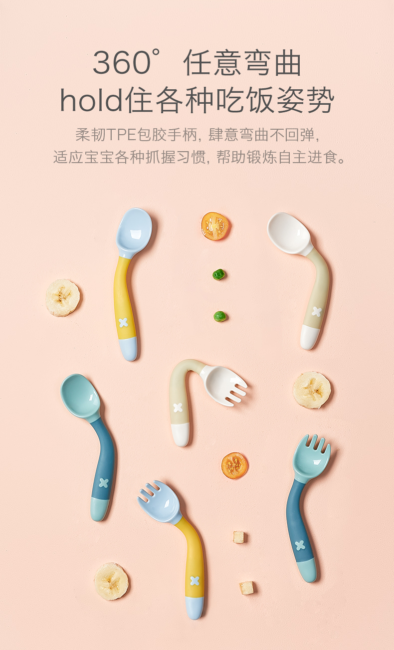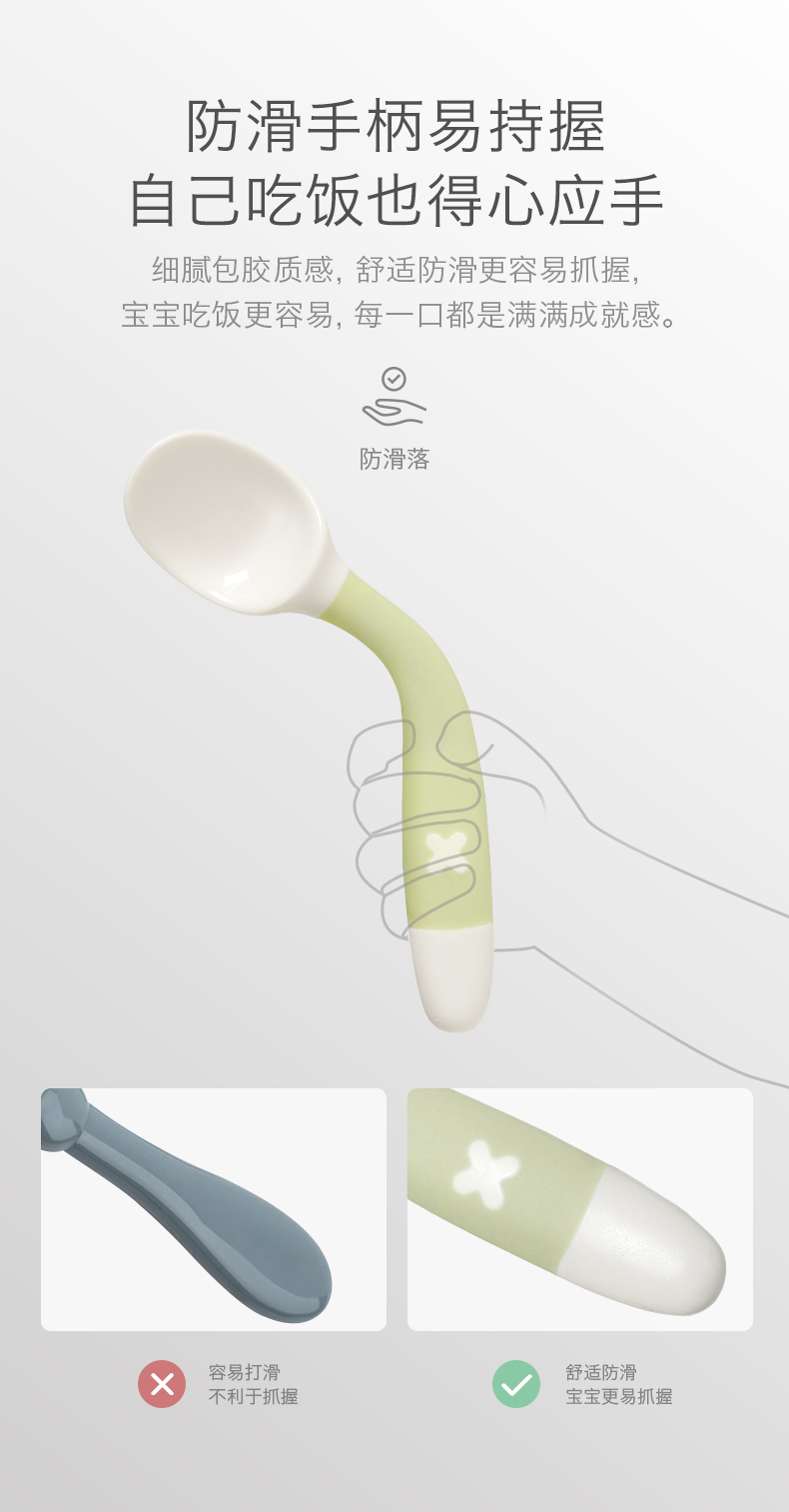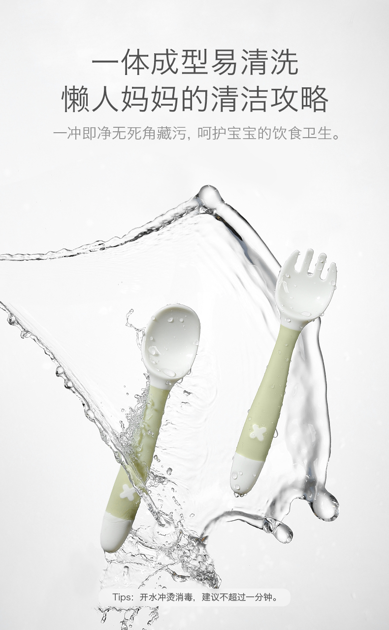 babycareRWB001-A弯弯叉勺-云雾绿
