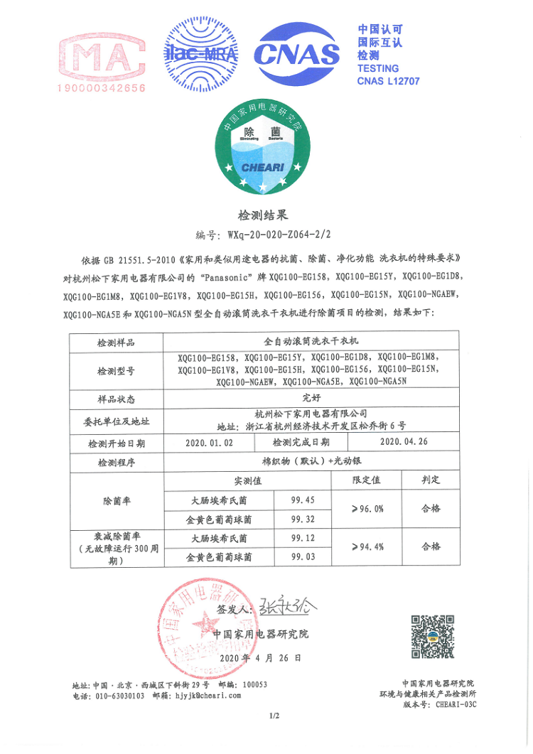 松下(Panasonic)10公斤滚筒洗衣机 洗烘一体机 光动银除菌 BLDC变频电机 XQG100-EG156