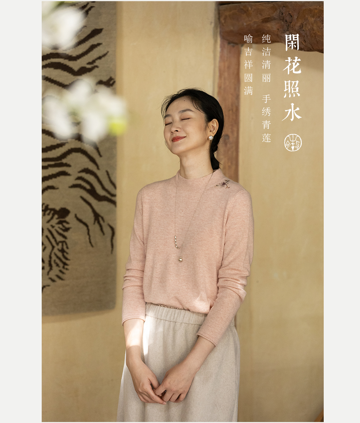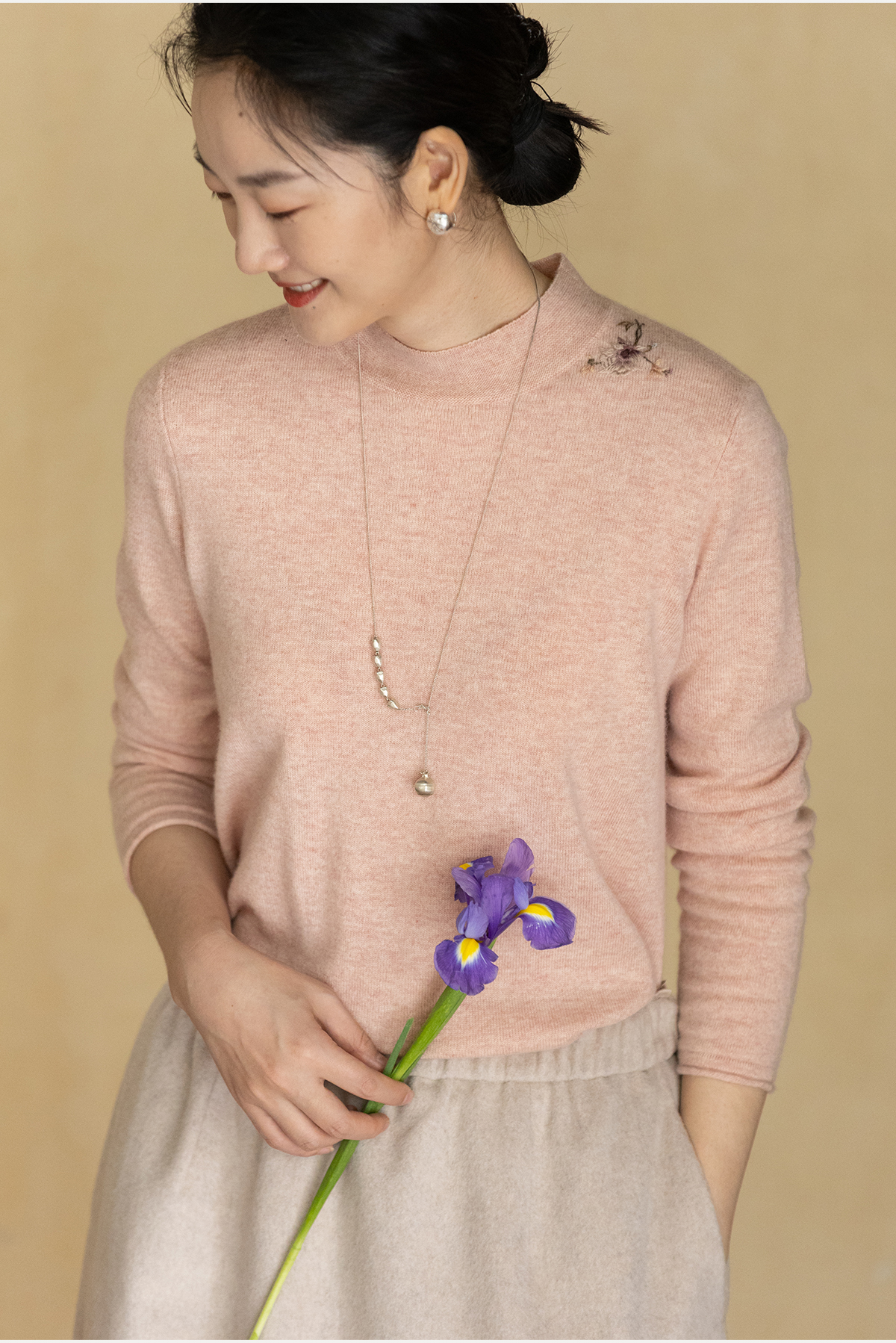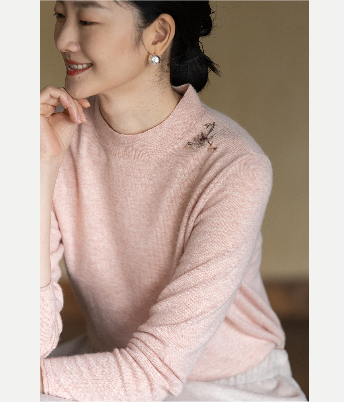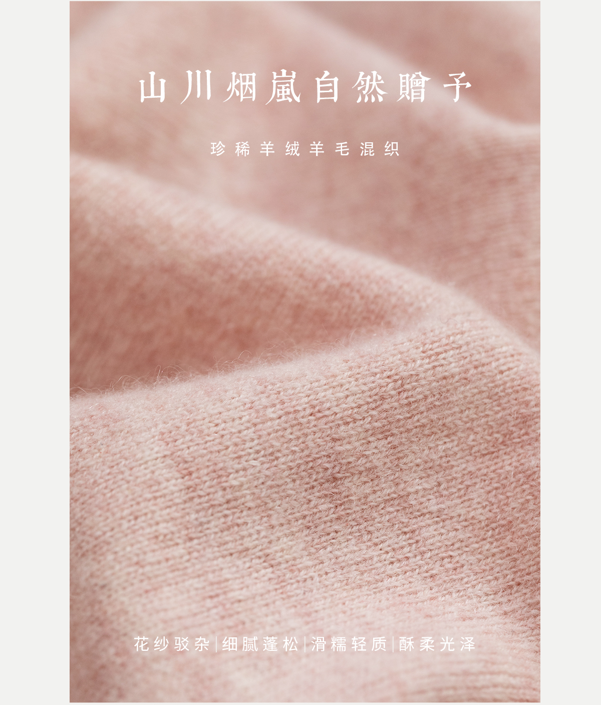 牧衣游原创 羊绒羊毛混织打底毛衣刺绣软糯蓬松保暖百搭上衣 幻月