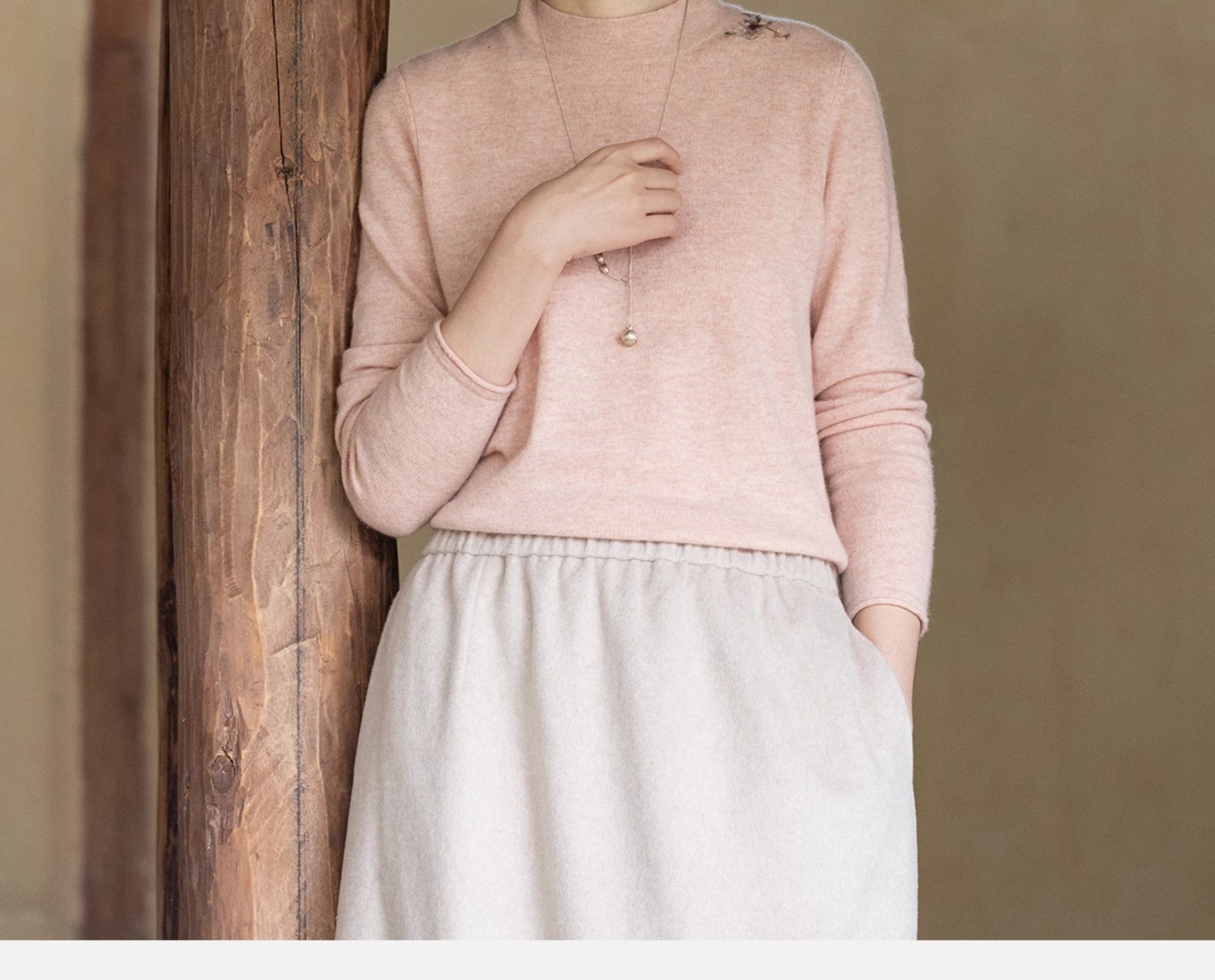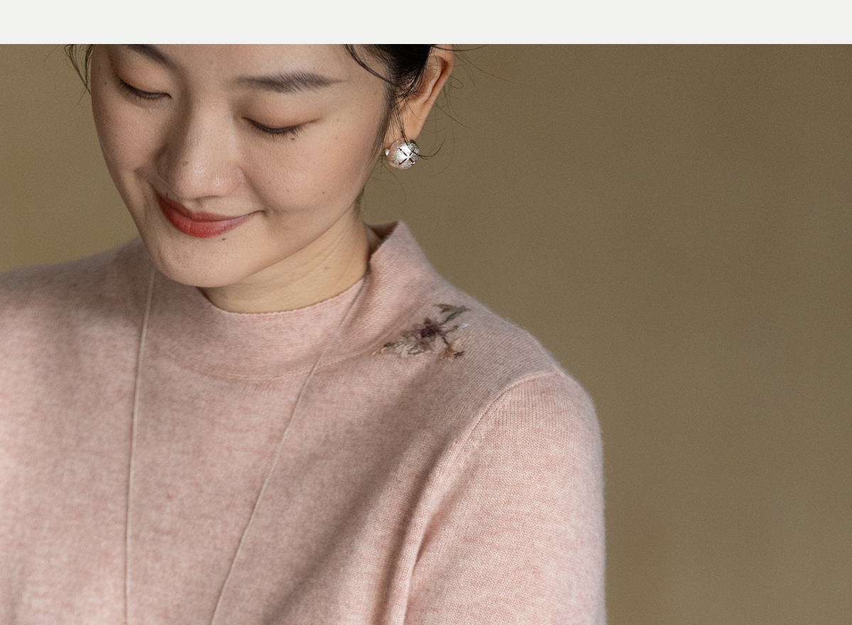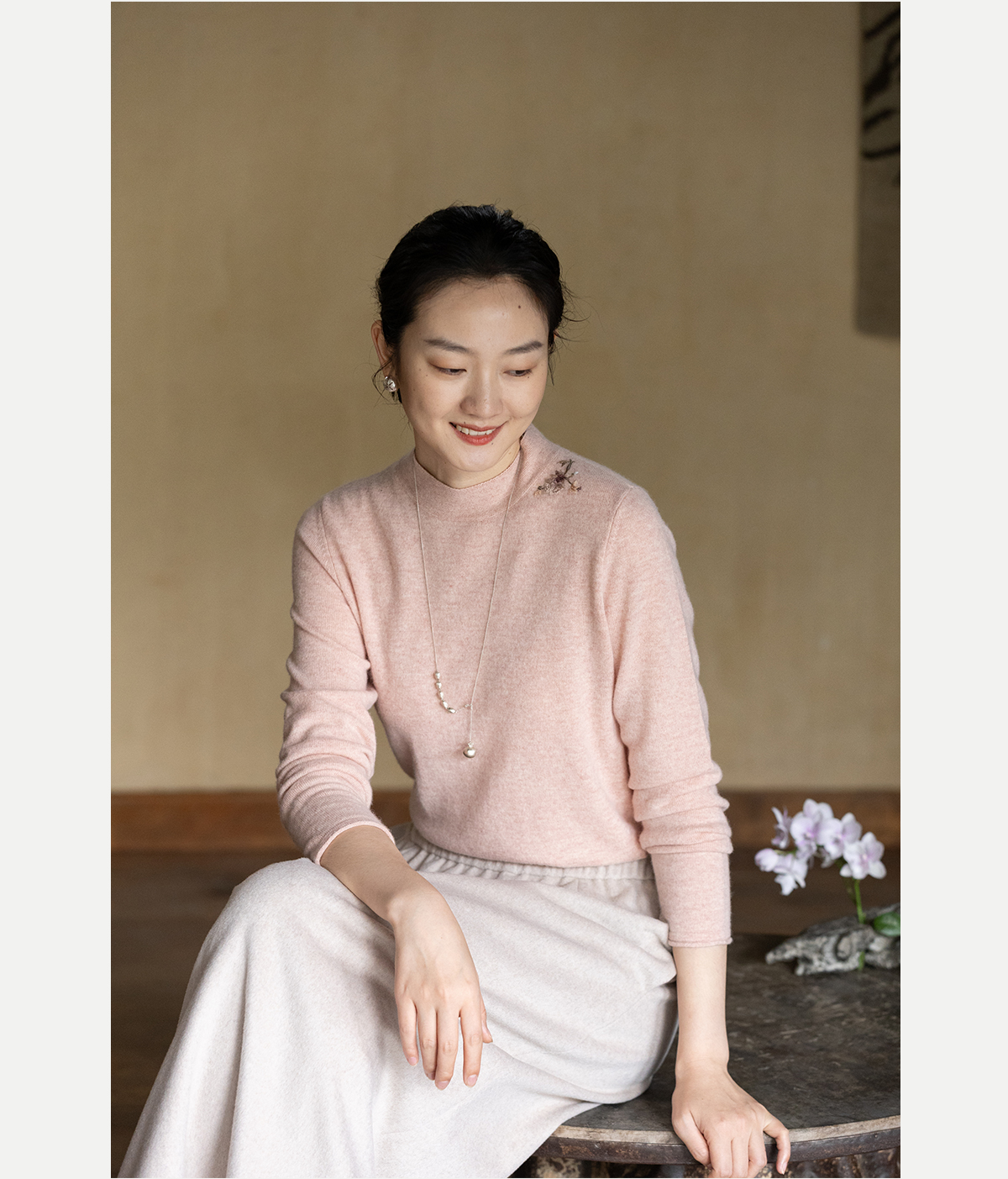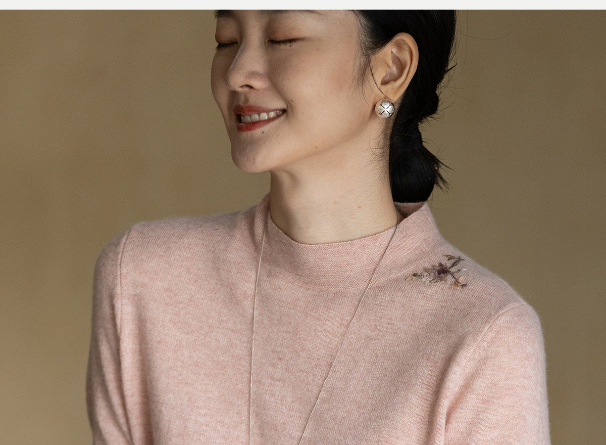 牧衣游原创 羊绒羊毛混织打底毛衣刺绣软糯蓬松保暖百搭上衣 幻月