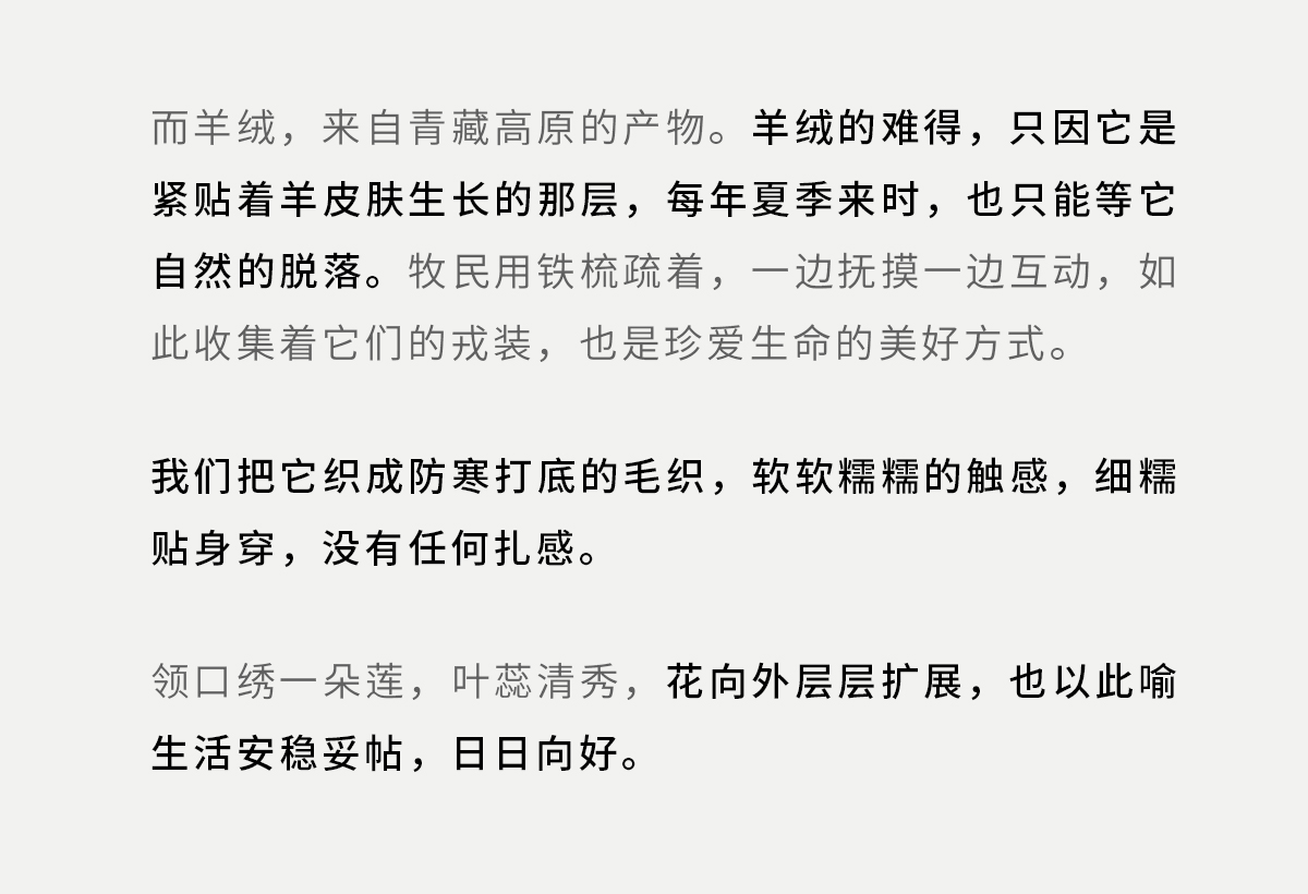 - 让内心温暖,让情感自由。坚持传统的手工作物,坚持匠心的制作精神。