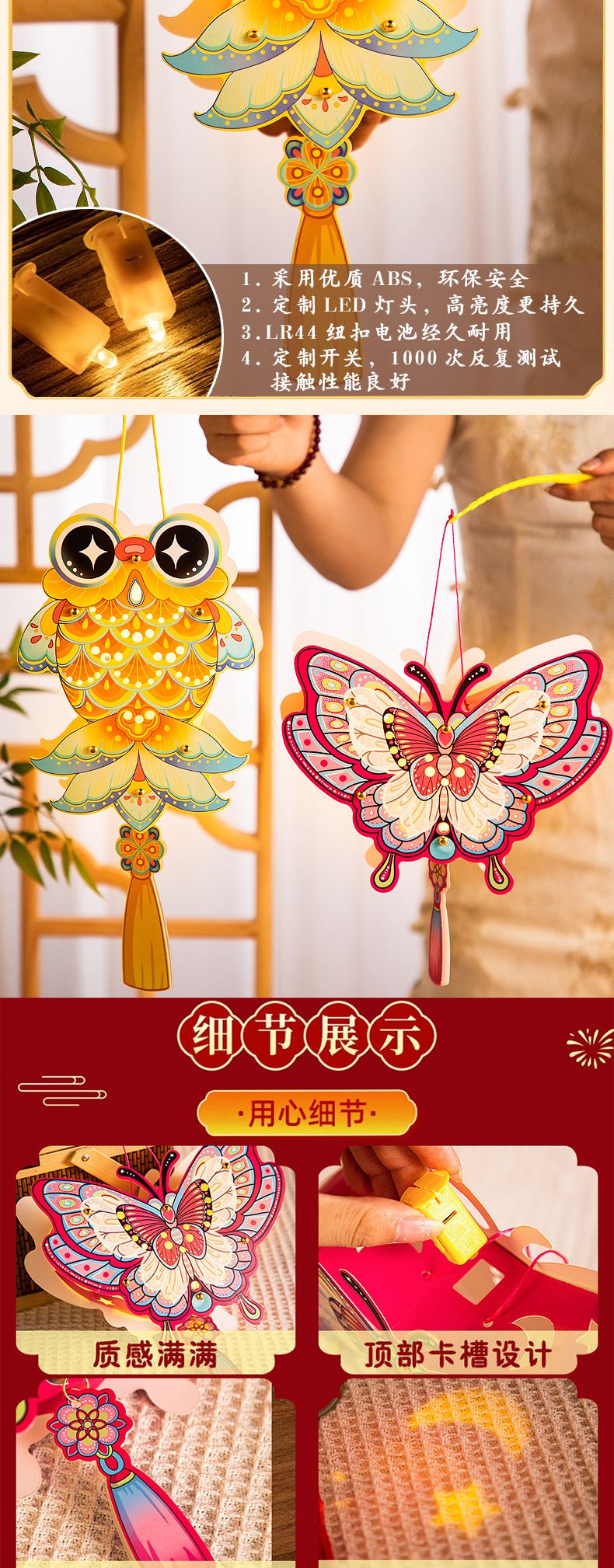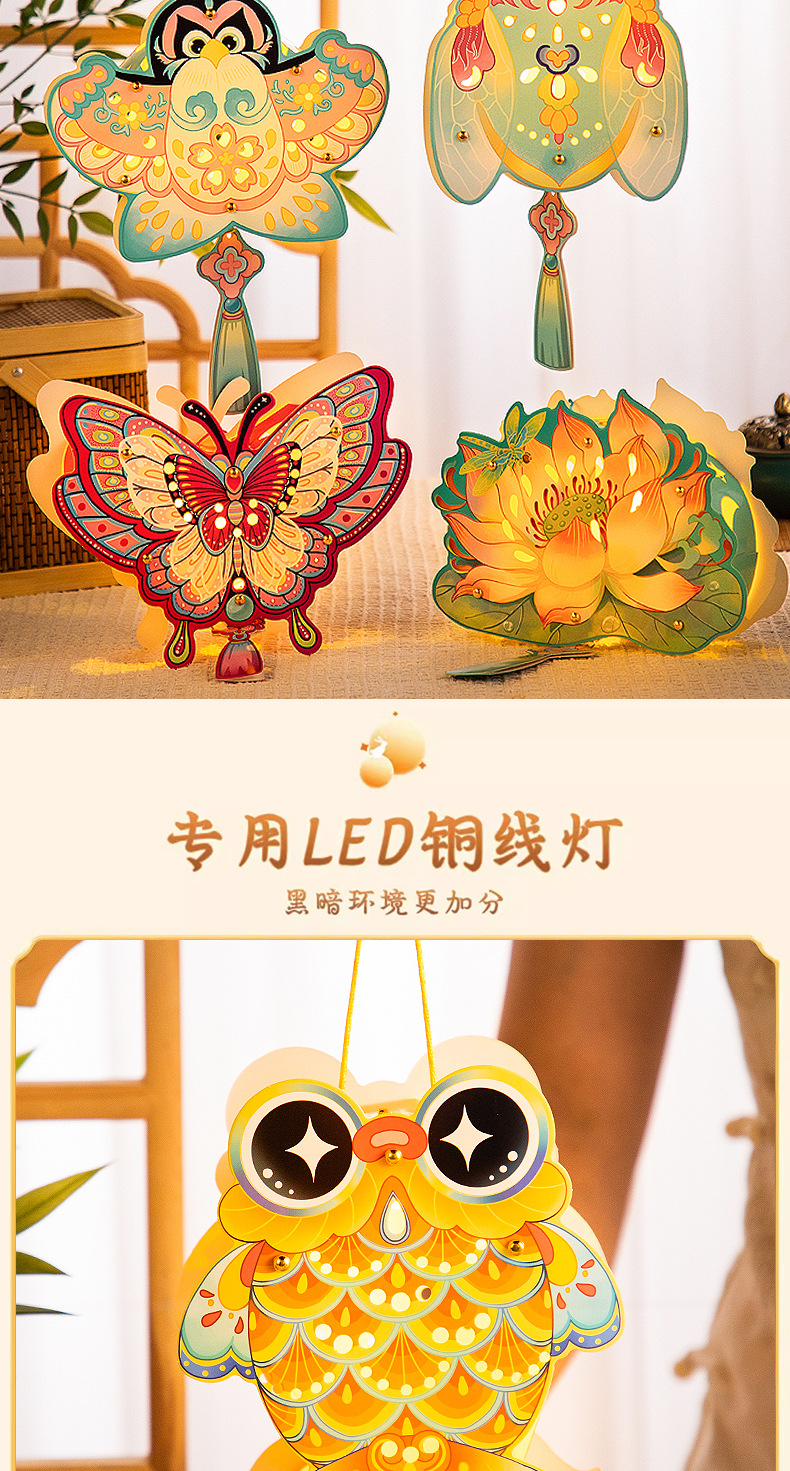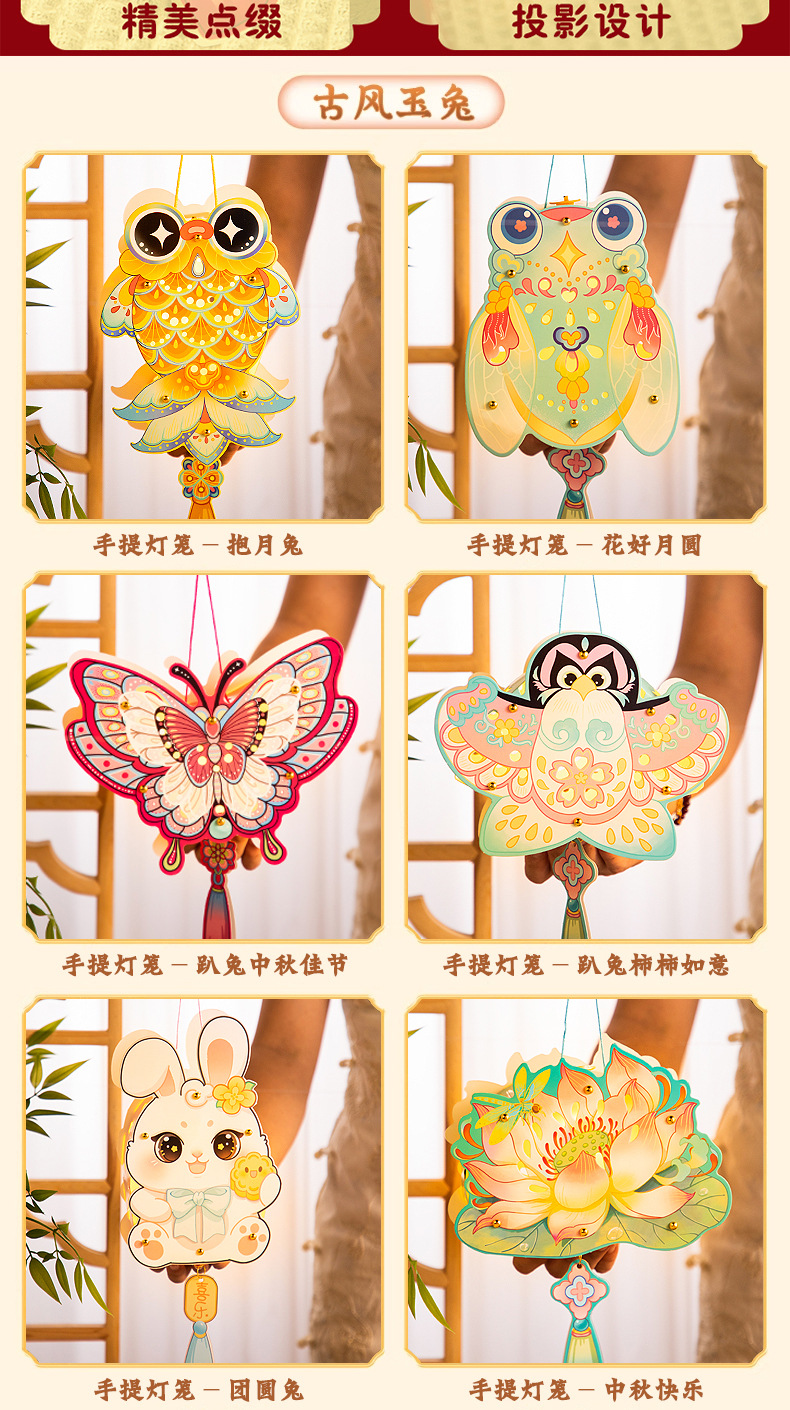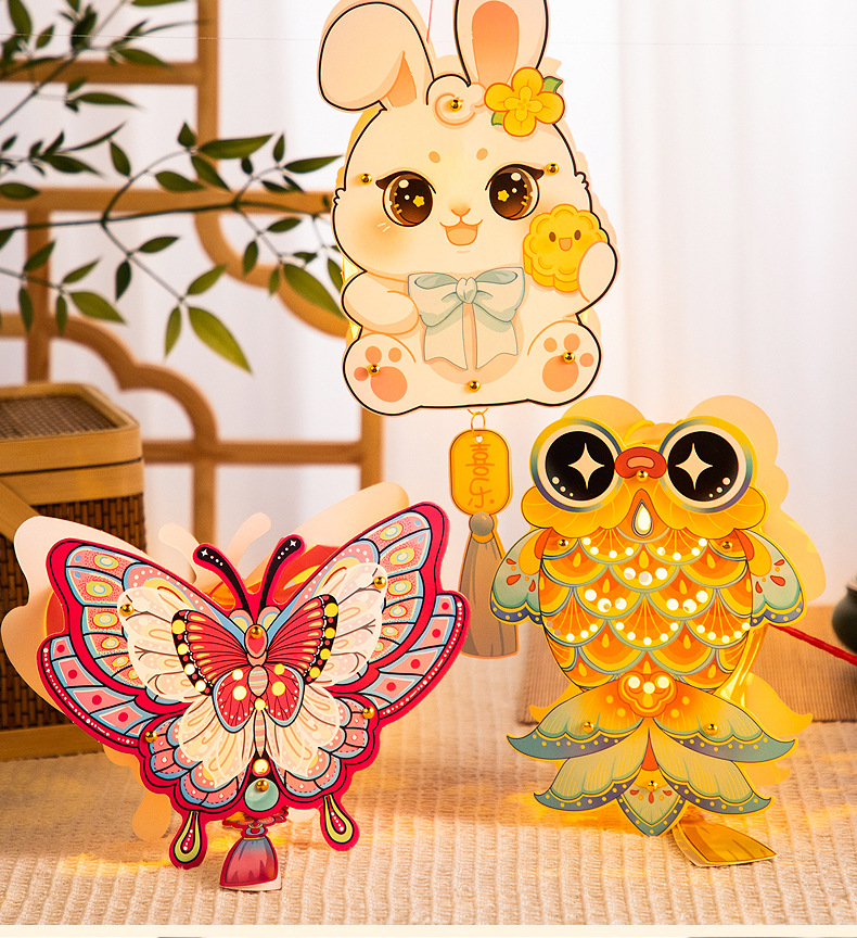 中秋节纸灯笼卡通手提发光兔子花灯手工diy材料包儿童玩具小礼物