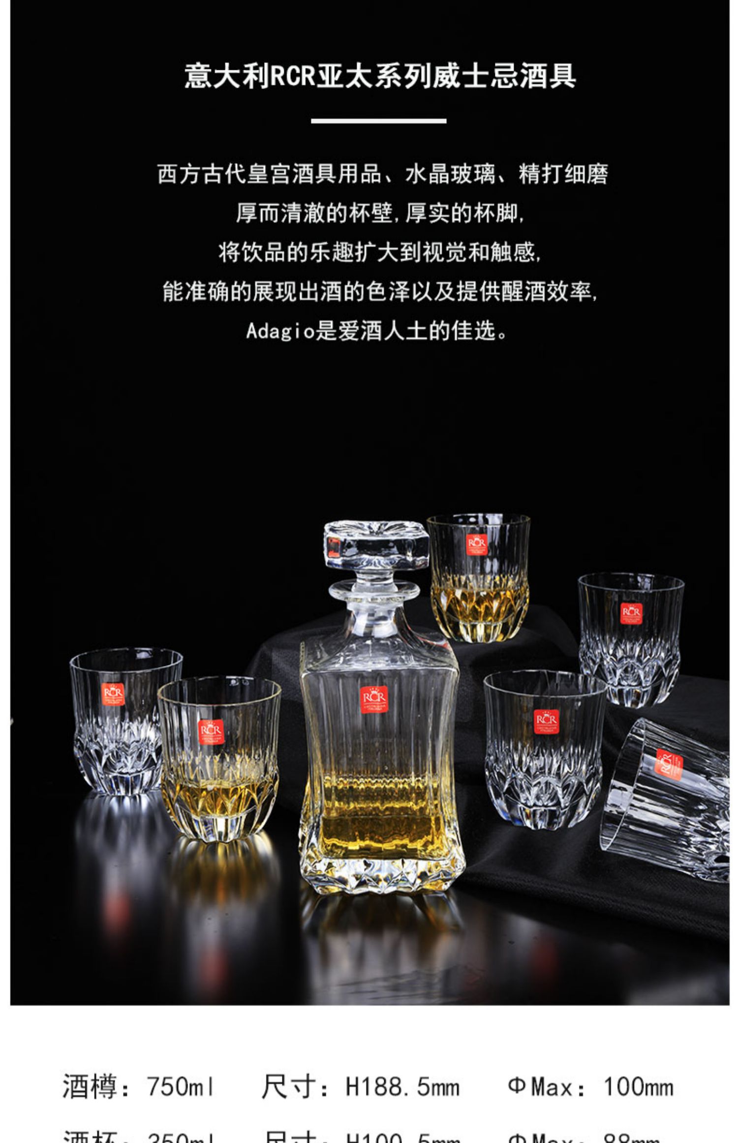 RCR 进口水晶玻璃杯威士忌酒杯古典家用水杯高档洋酒杯子酒具套装