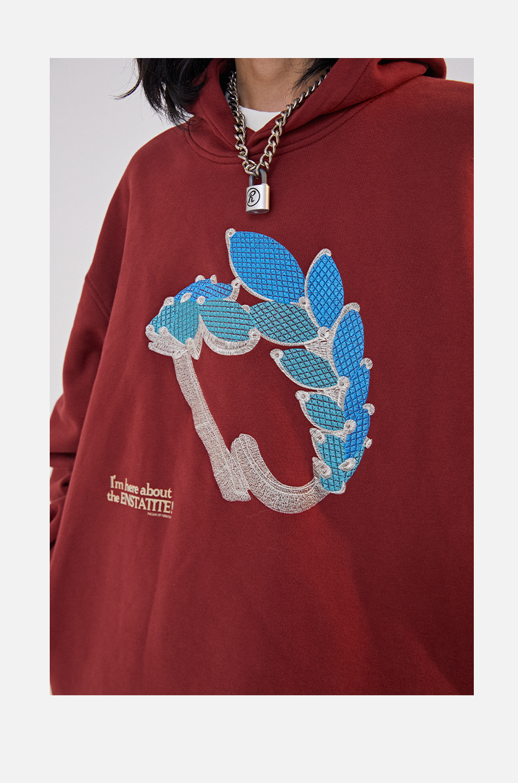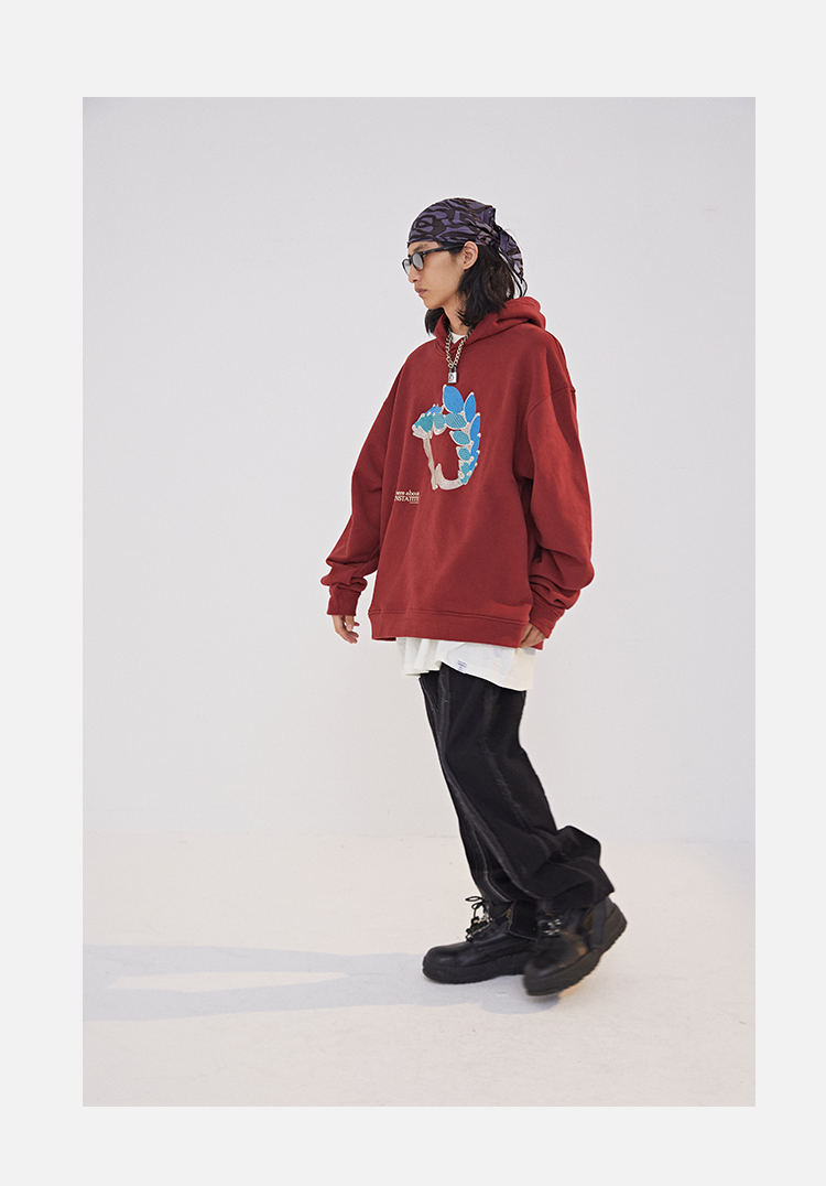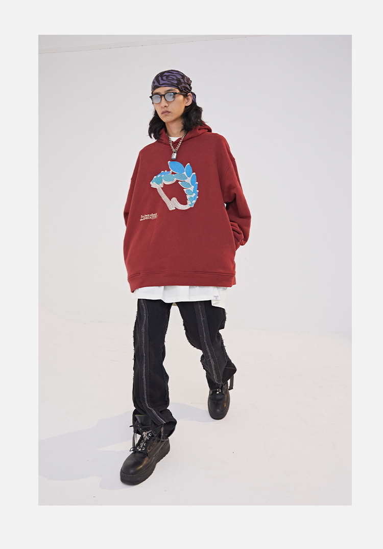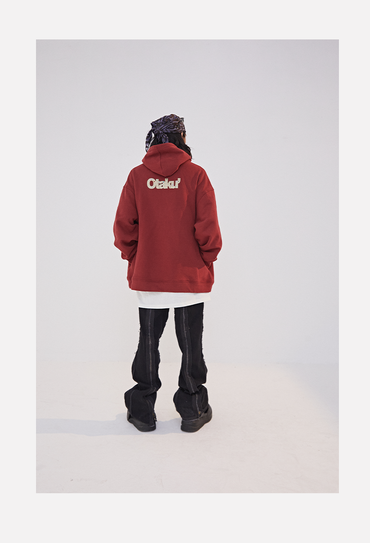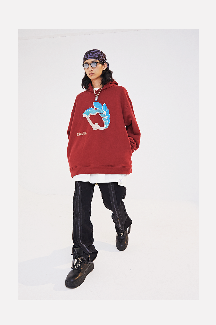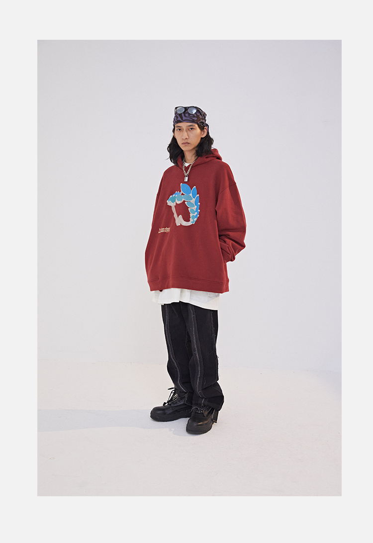 POH 水晶钻戒宝石重工刺绣上衣字母印花烫钻酒红色长袖连帽卫衣男