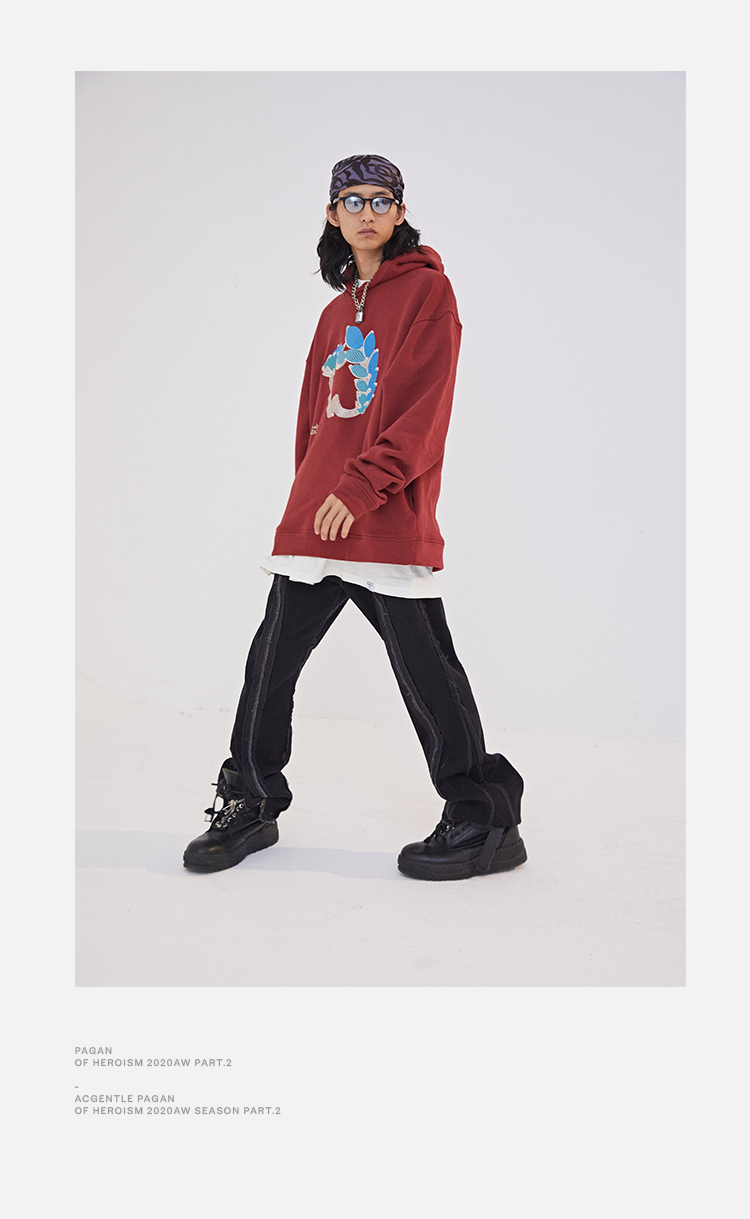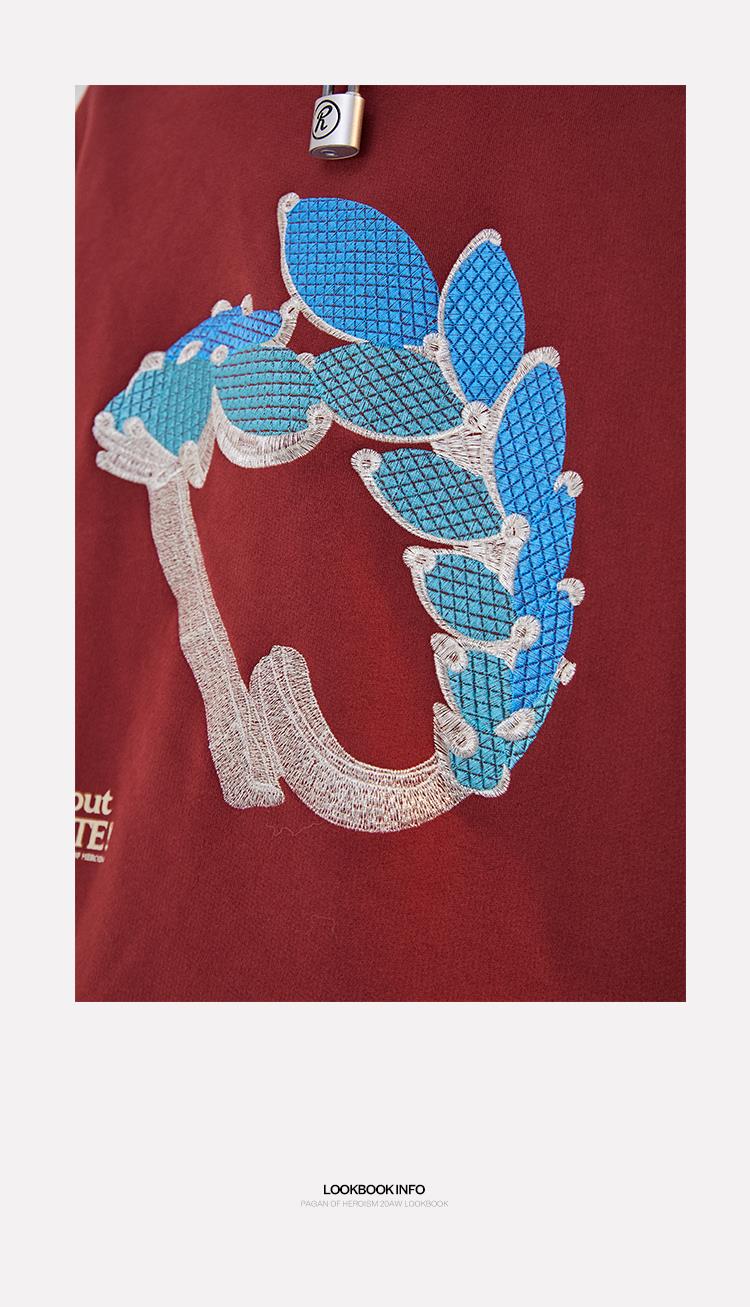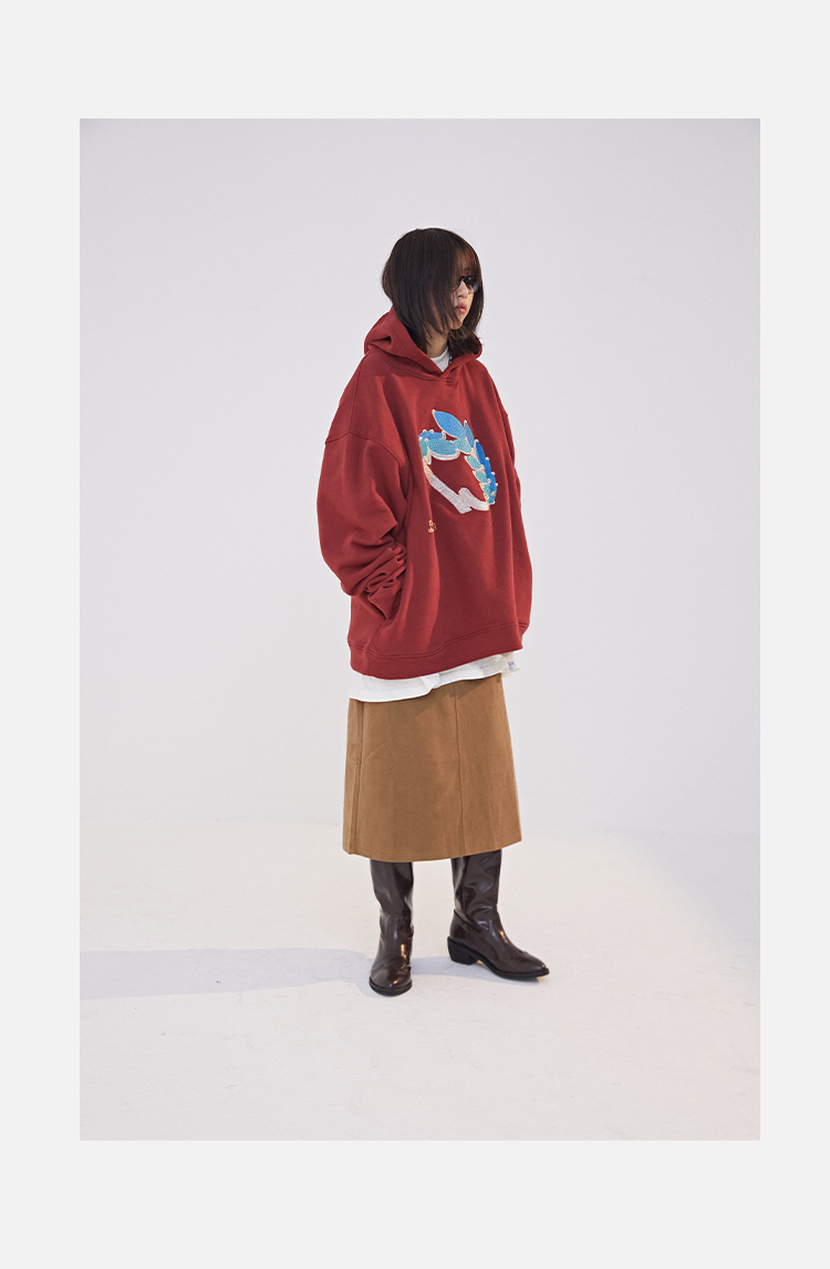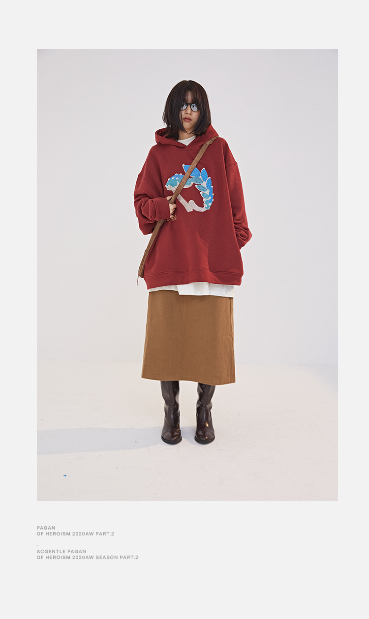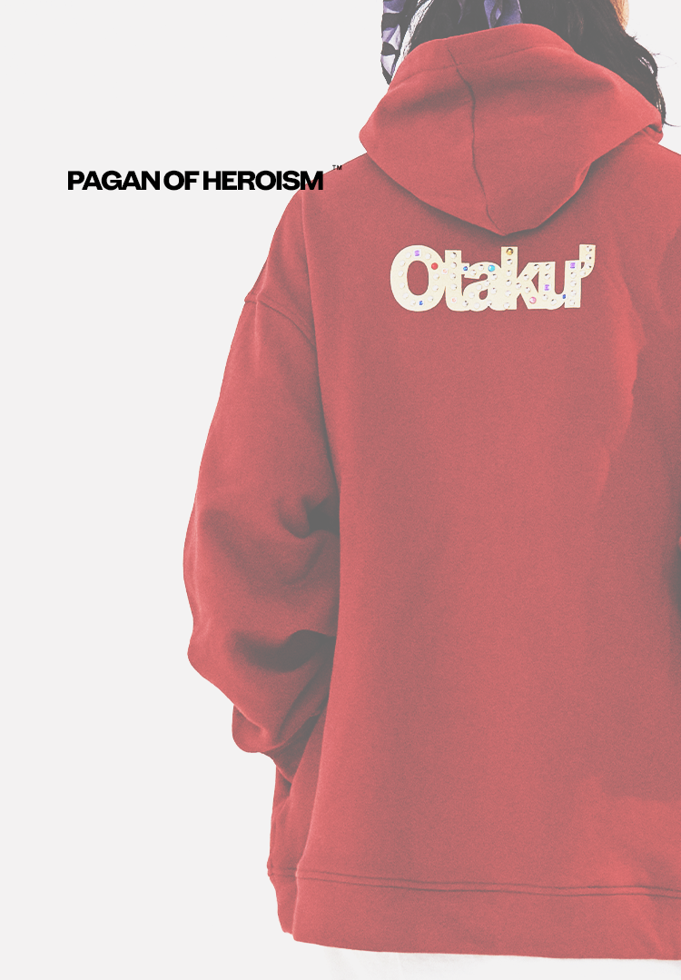 POH 水晶钻戒宝石重工刺绣上衣字母印花烫钻酒红色长袖连帽卫衣男