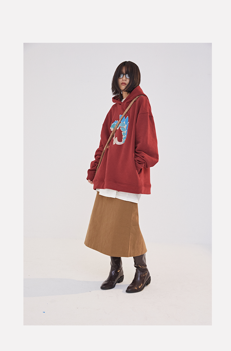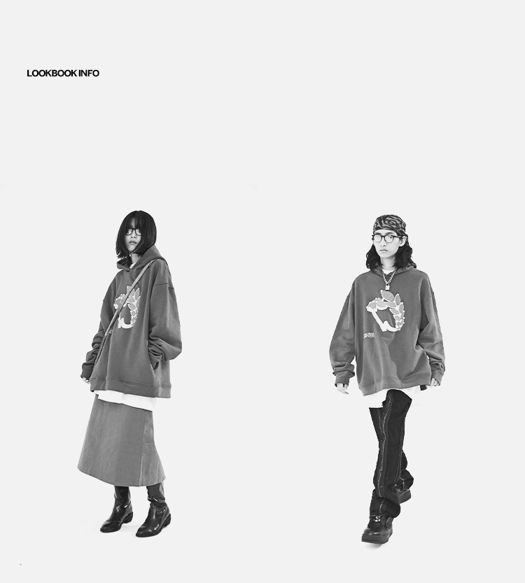 RELABEL 21AW异材质梭织拼接黑灰撞色oversize宽松卫衣外套