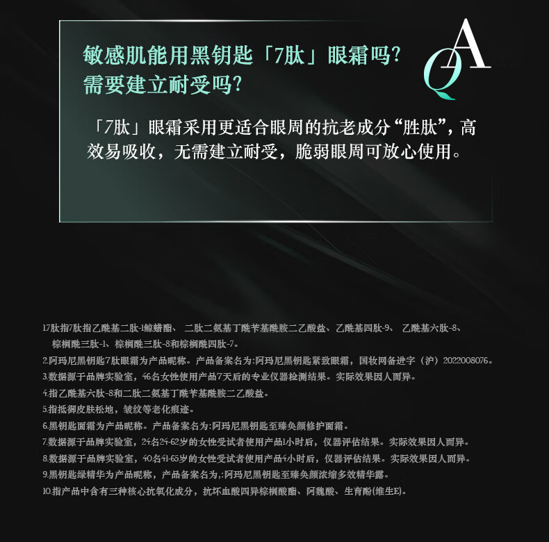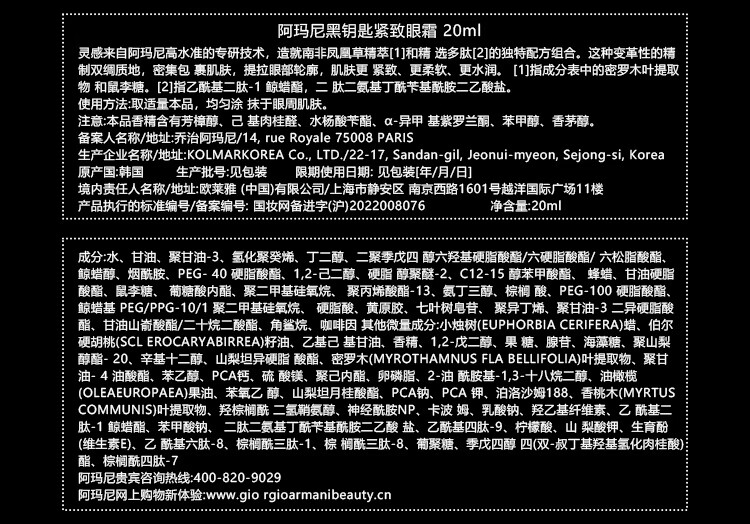 阿玛尼 黑钥匙7肽小针管眼霜20ml 胜肽淡纹紧致眼周
